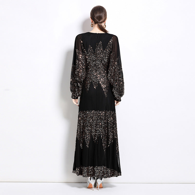 Bu balo elbisesi sizi hayallere sürükleyecek! Zarif çan kolları ve payetleriyle bütün gece boyunca ışıldayacaksınız....