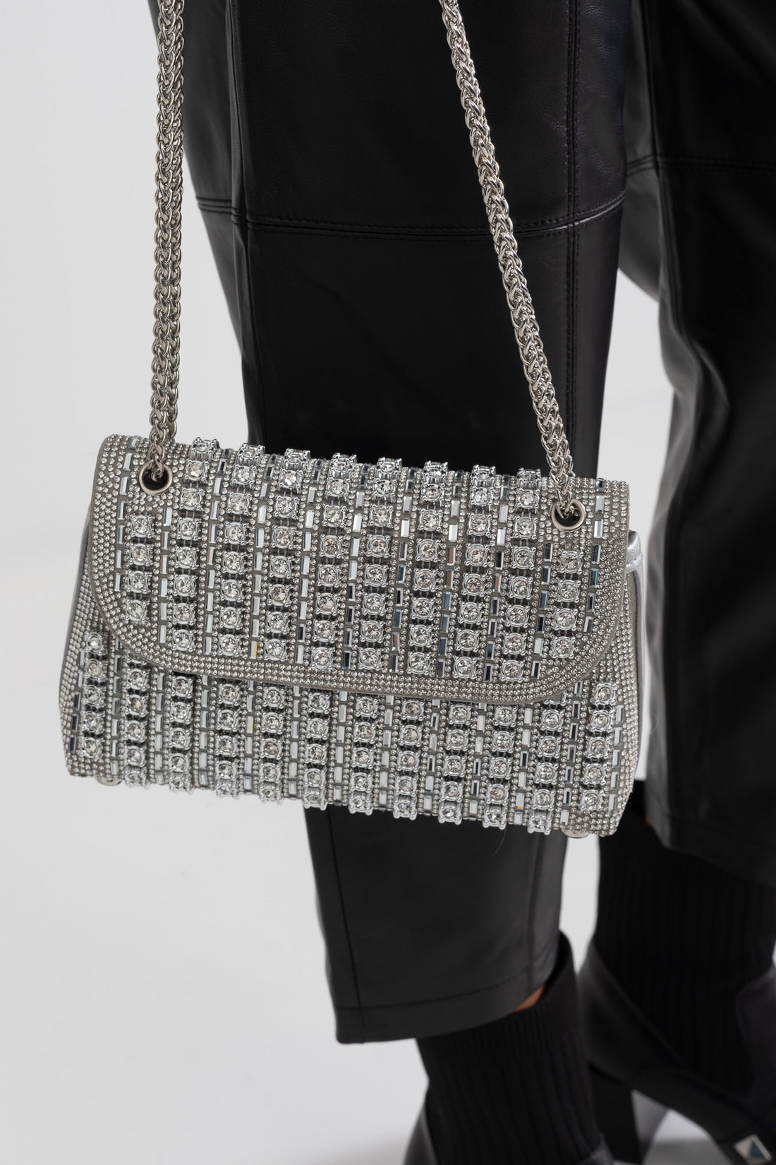 Parıldayan Dokuma El Çantası - Işıltılı Rhinestone Süslemeler - Gümüş