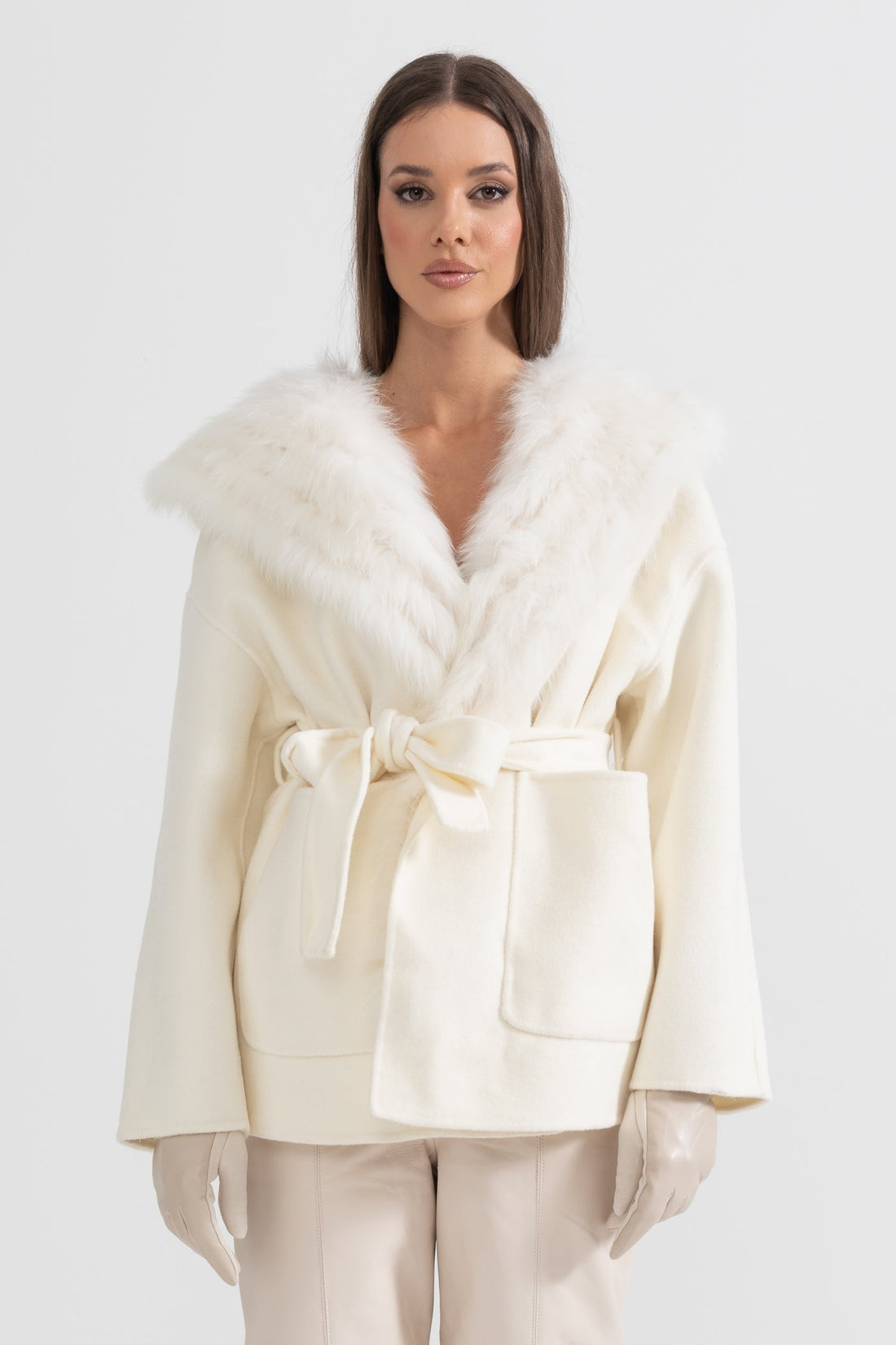 Ürün Açıklaması Zarif ve şık bir stil sunan bu krem ceket, oversize kapüşonu ve bel...