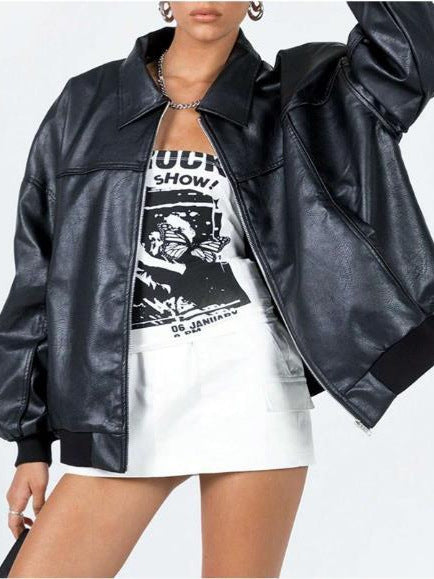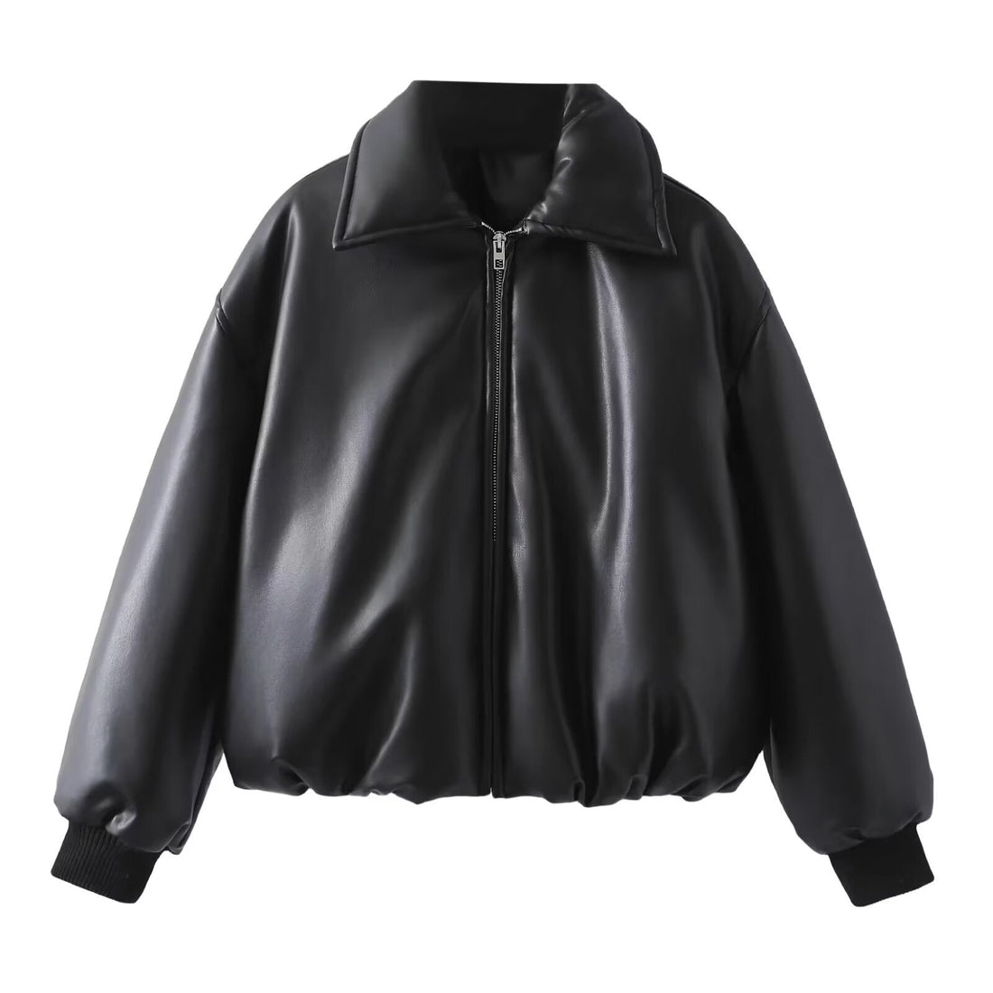 Modern sokak stilinin güçlü parçası: Deri görünümlü kısa ceket, oversize kesimiyle cool bir duruş sergiler....