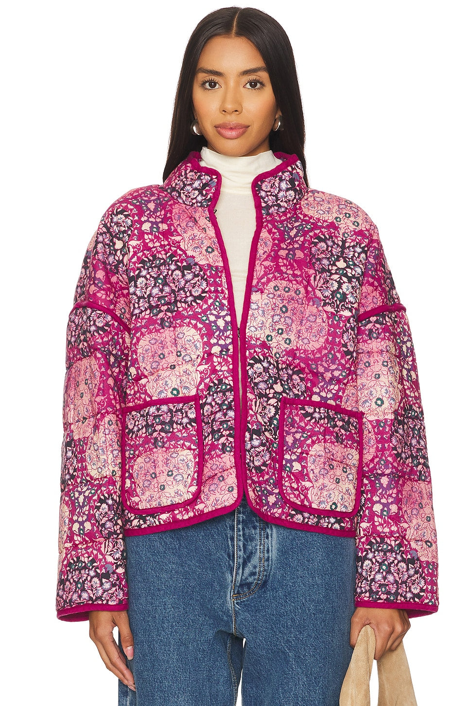 Kapitone Çiçek Desenli Ceket