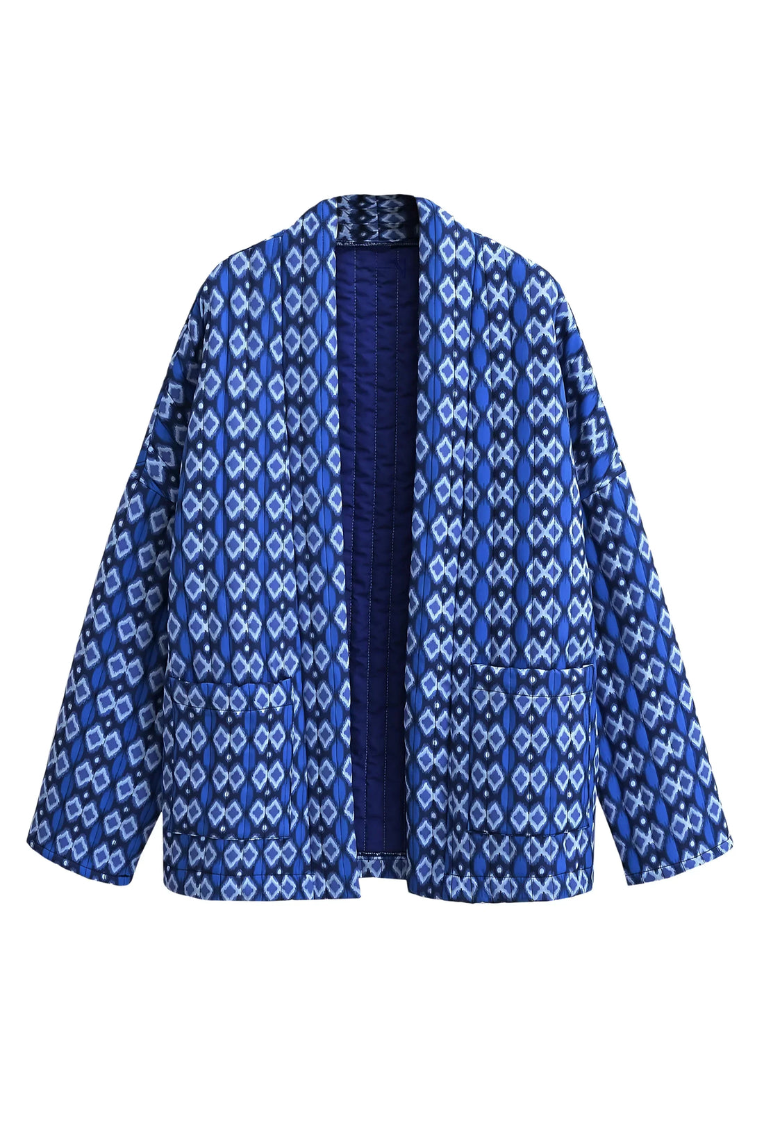 Çarpıcı lacivert ve krem rengi baskıya sahip Jayla Baskılı Kapitone Ceket ile soğuk hava gardırobunuzu...