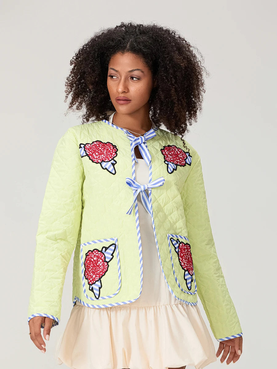 Çiçek Desenli Kapitone Ceket