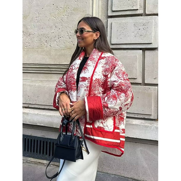Moda Baskılı Bol Günlük Hırka Kısa Kapitone Pamuklu Ceket
