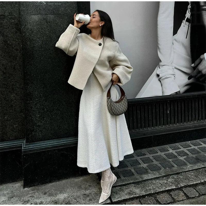 Ekru Yün Ceket, şıklık ve konforu modern bir tasarımda birleştiriyor. Büyük beden kalıbıyla günlük kıyafetlerinize...