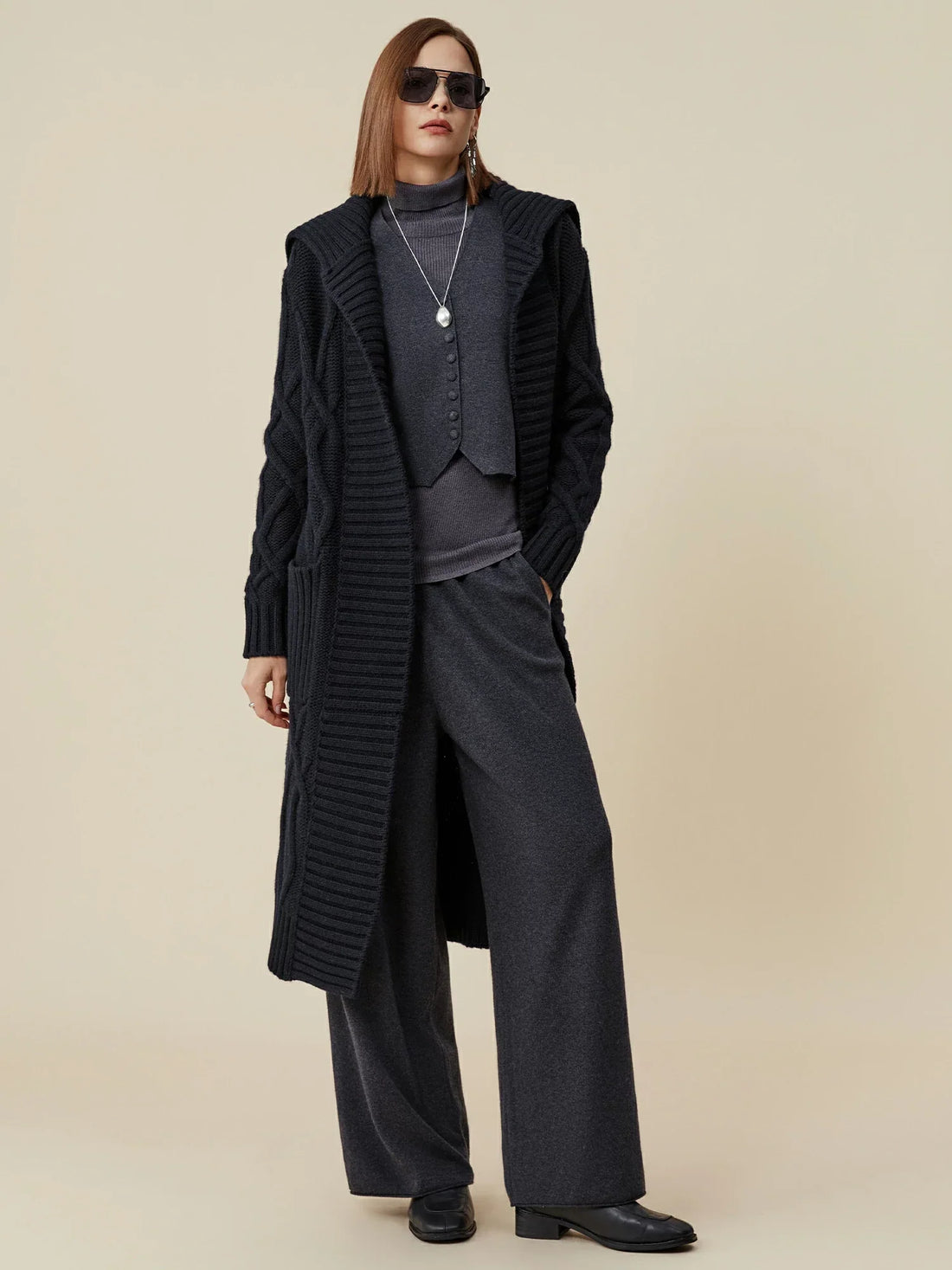 Tasarım Açıklaması - Kumaş %10 kaşmir ve %90 yak yünü karışımından üretilen bu hırka, hafif...
