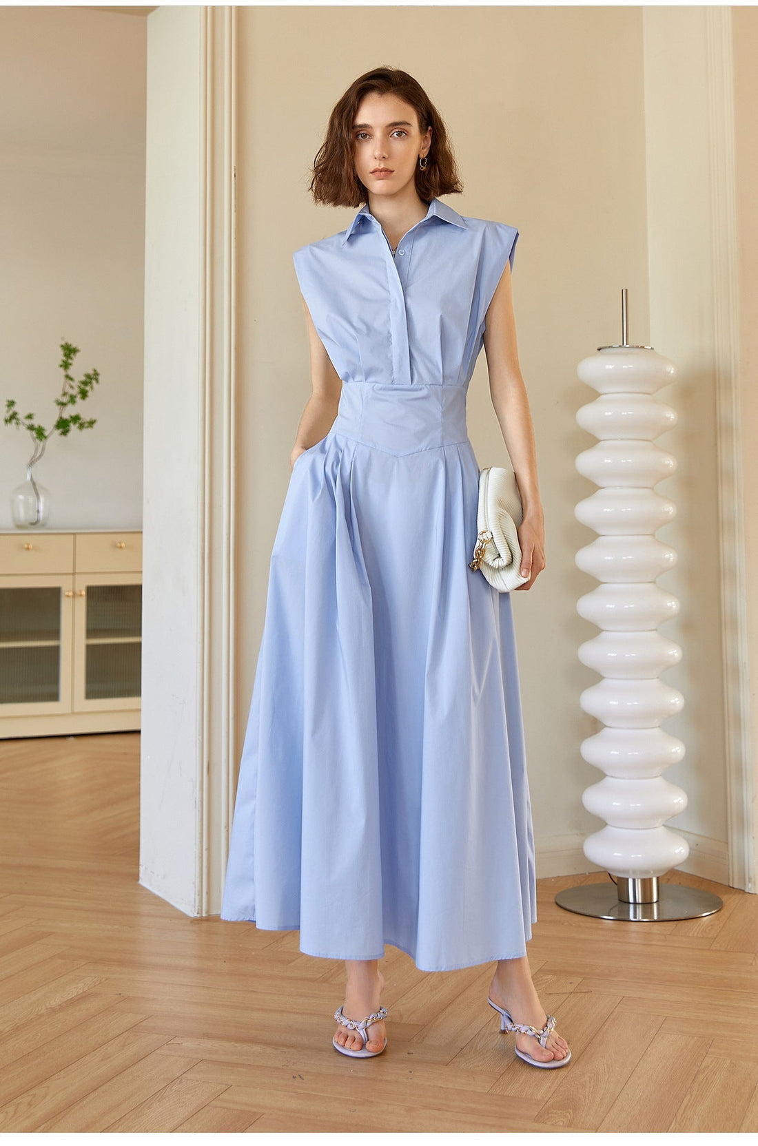 Aurora Kolsuz Polo Yaka Pamuklu Maxi Elbise