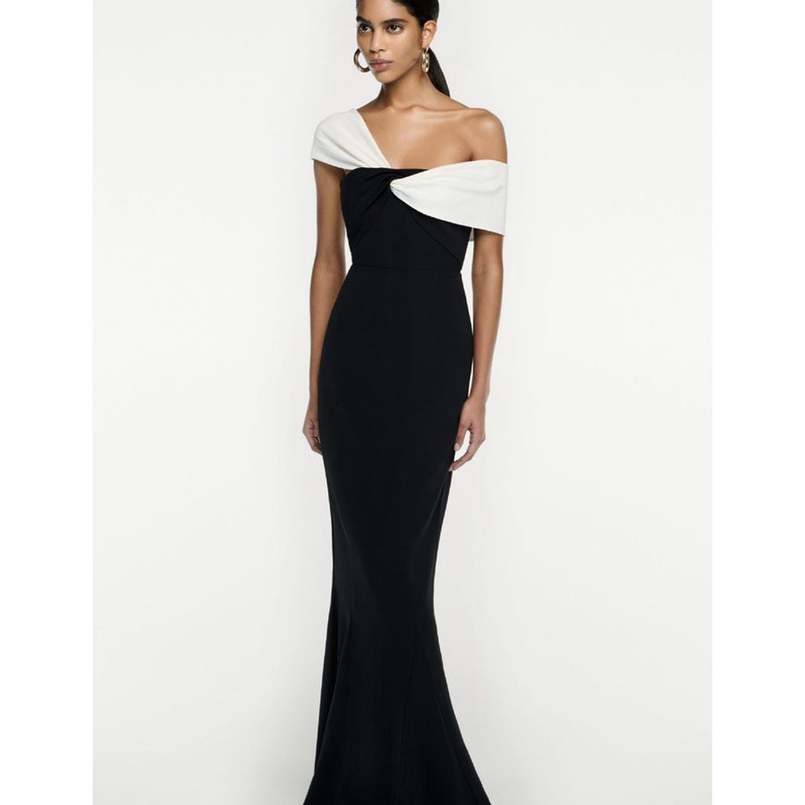 Aje Violette Balon Etekli Maksi Elbise -Siyah Beyaz