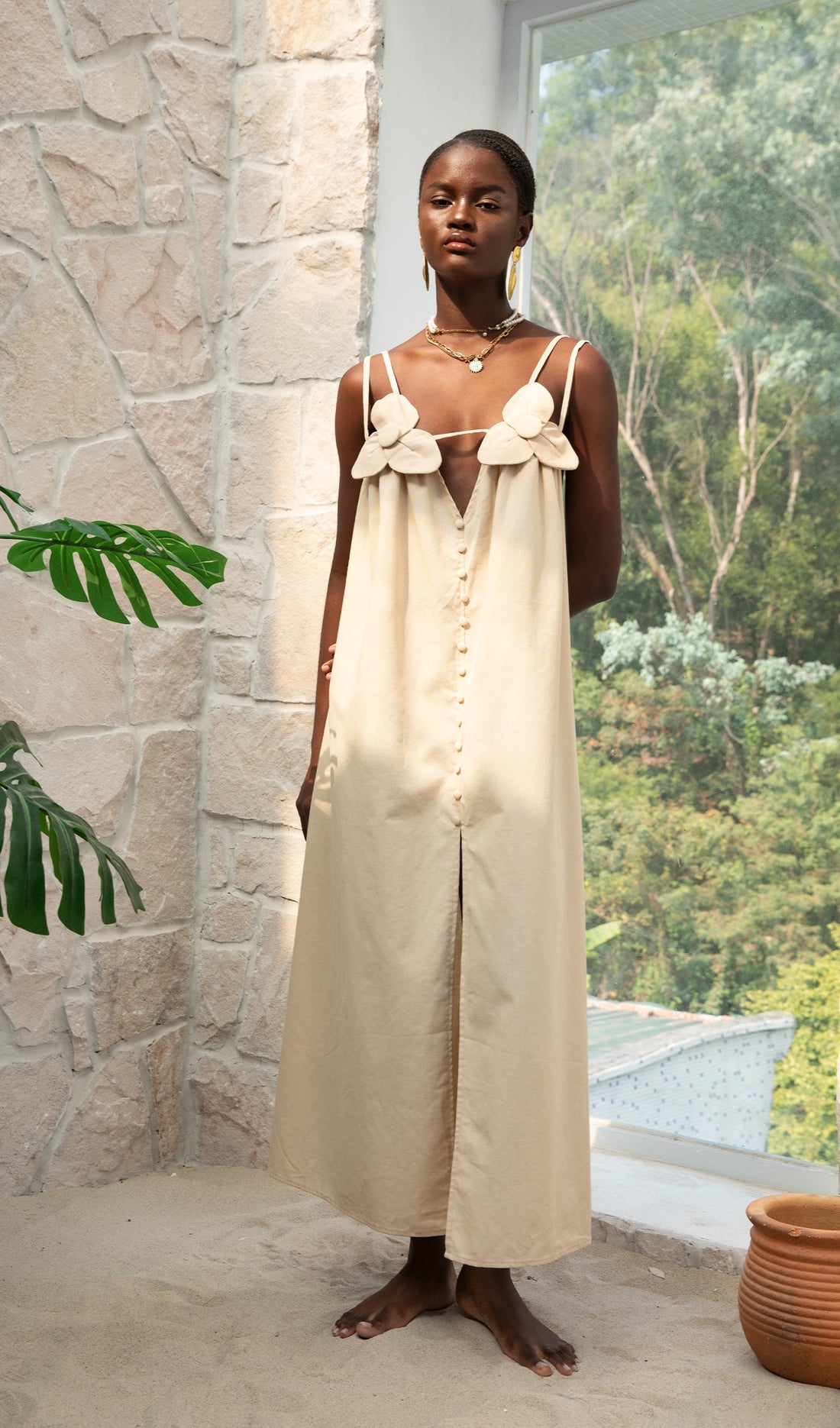 Drapeli Dar Maksi Elbise Mocha Ombre