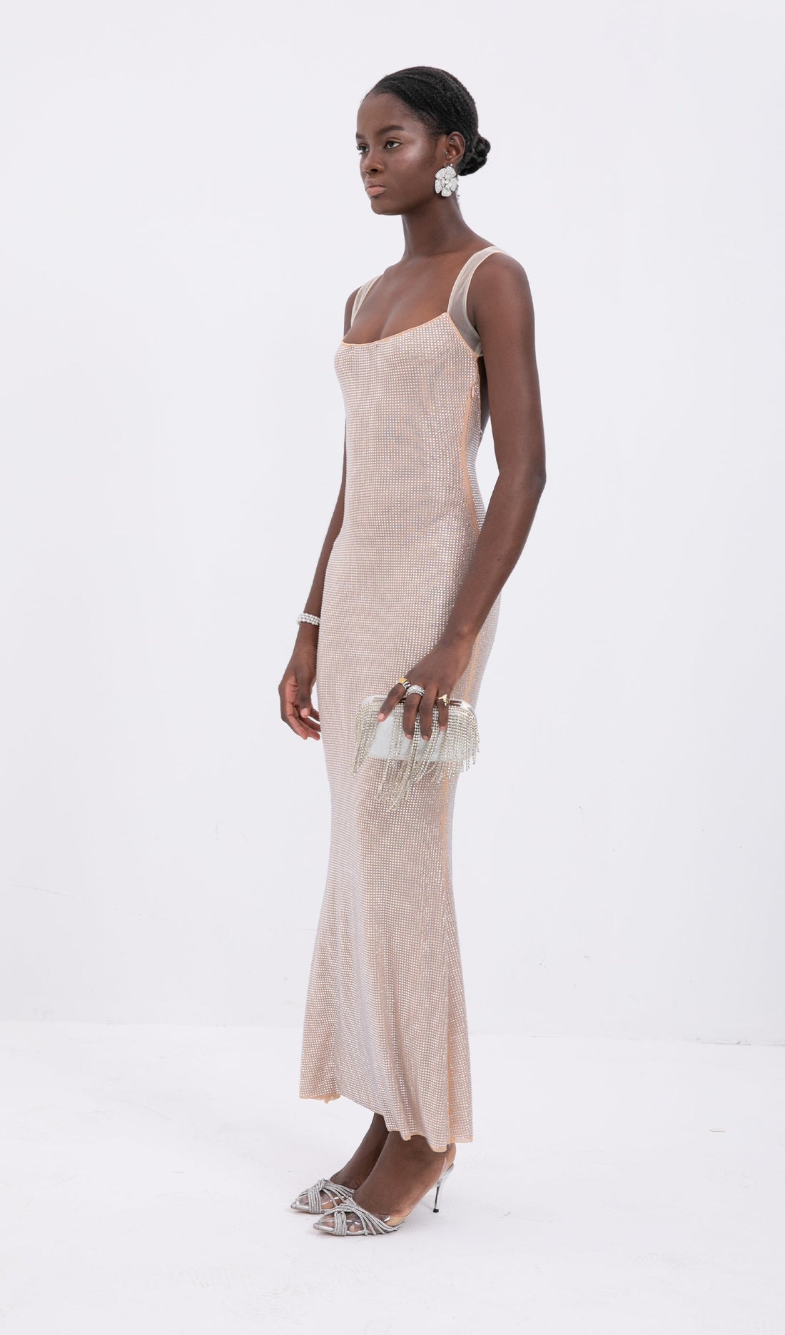 File Sırtlı Trendy Hot Fix Maksi Elbise