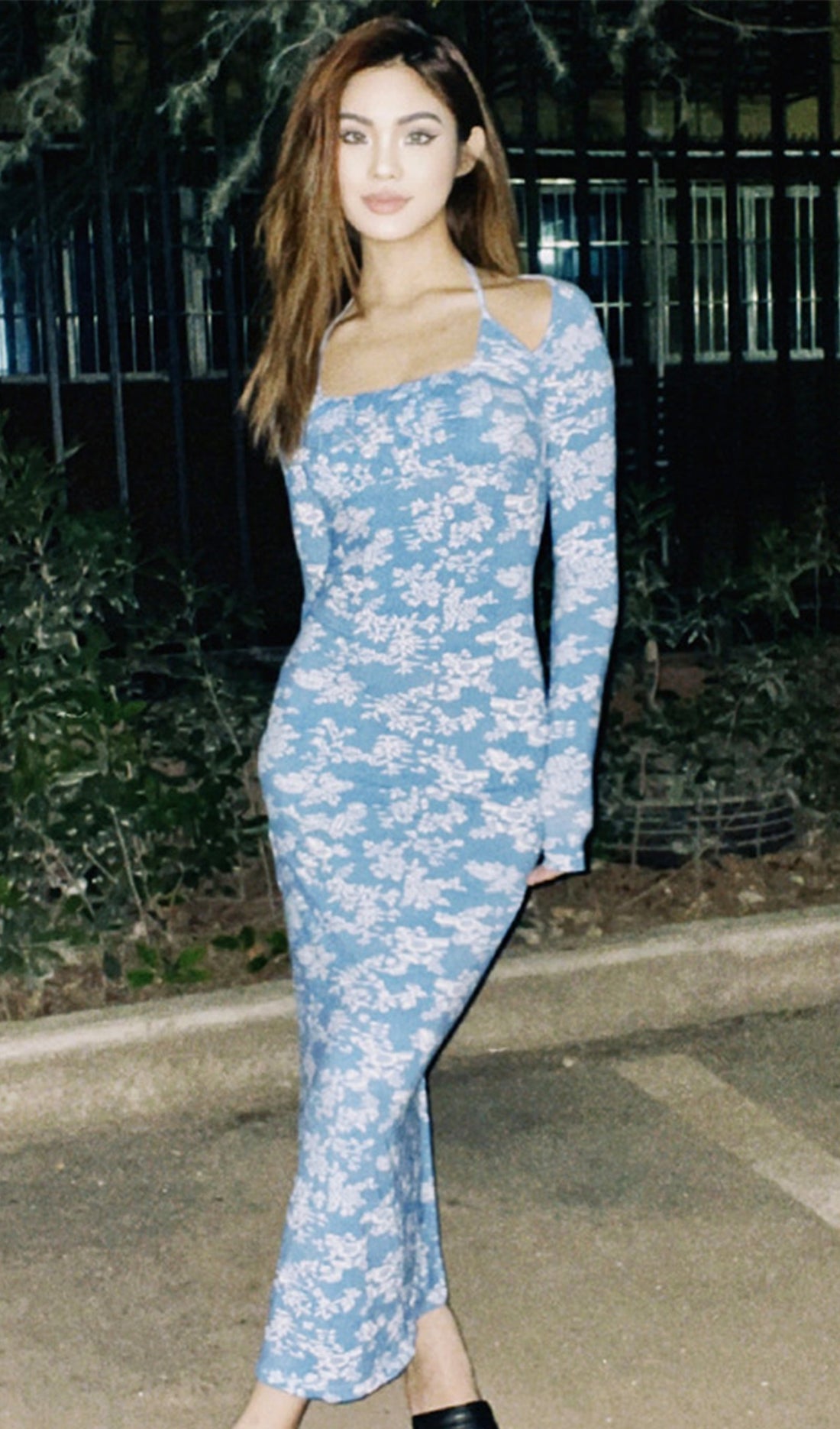 Branden Mavi Çiçekli Midi Elbise