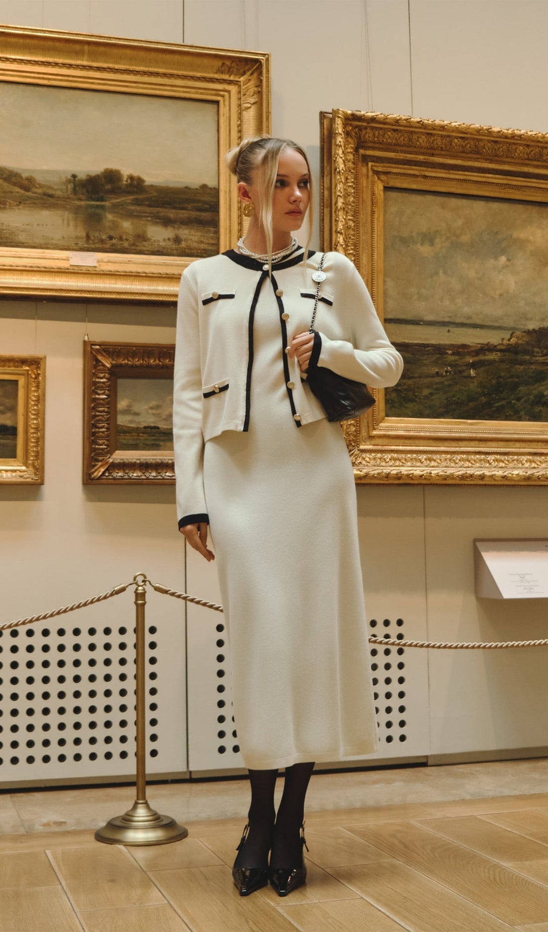 Örme Midi Elbise İki Parça Takım-Beyaz