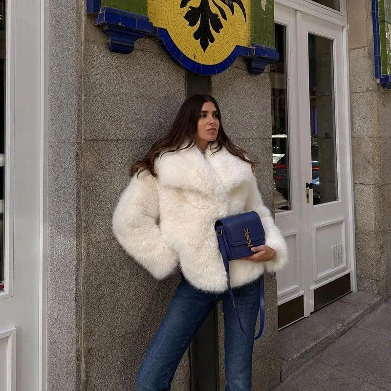 Ürün Açıklaması: Lüks ve sofistike bir duruş sunan Ivory Elegance Kürk Ceket, yumuşacık dokusu...