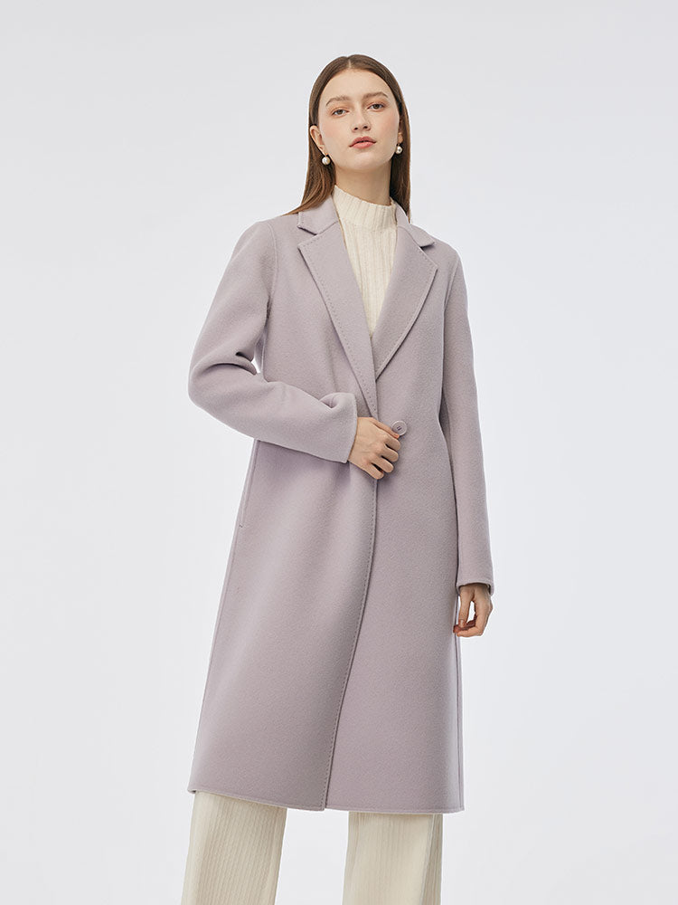 Kaşmir Yün Çentikli Yaka Çift Yüzlü Kadın Kaban