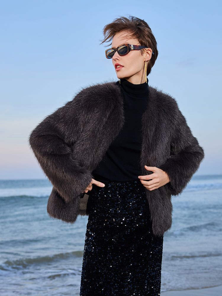 Çevre Dostu Kürk Kadın Kısa Kaban