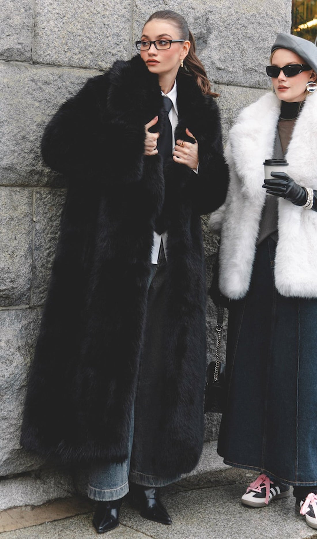 Siyah Uzun Boy Eko Kürk Kaban