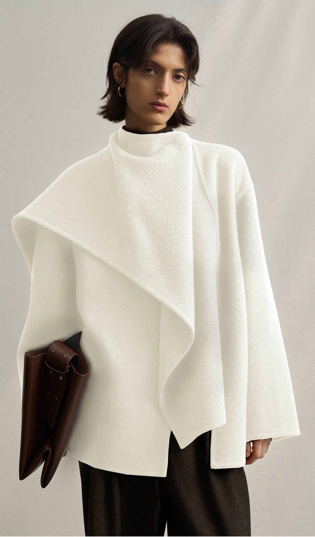Günlük işe gidiş gelişler için şık bir dokunuşa sahip lüks yün pelerin ceket. En iyi...