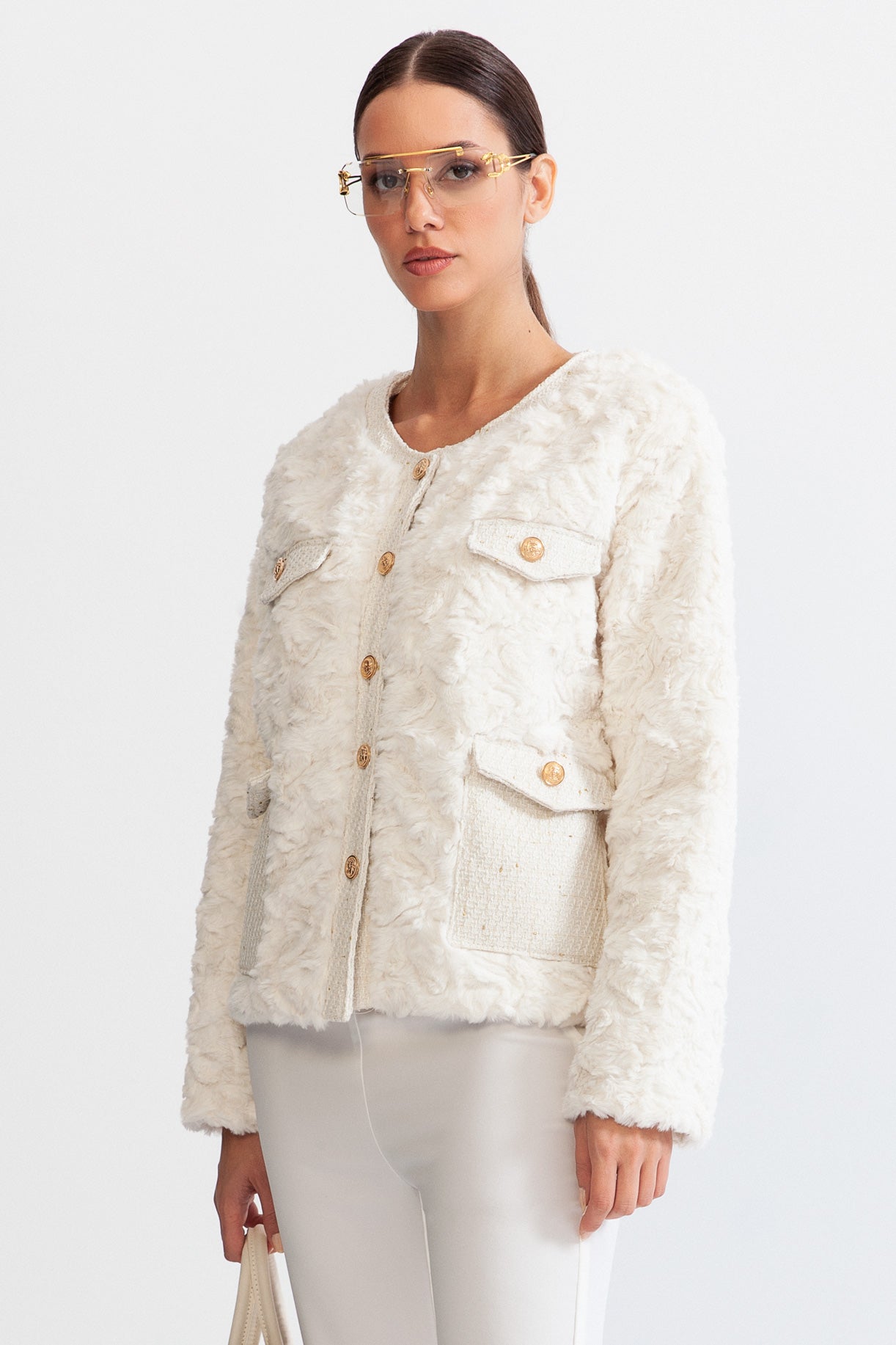 Bu lüks Altın Düğmeli Kabarık Ceket, incelikle yumuşak bir kumaştan üretilmiştir ve güzel altın düğmelere, tamamlayıcı uzun kollara ve iki pratik ön cebe sahiptir. Bu özel tasarımın zarafetinin tadını çıkarın.