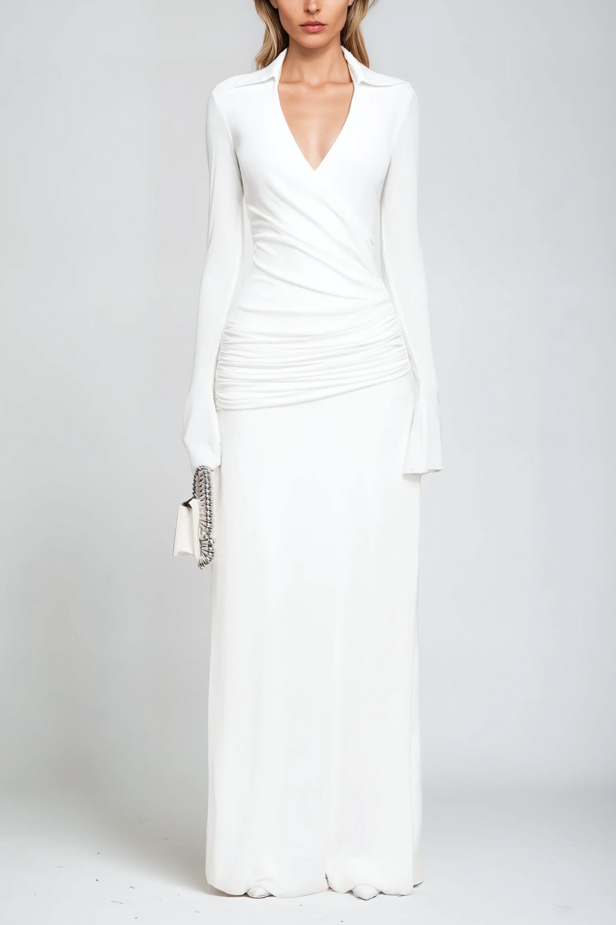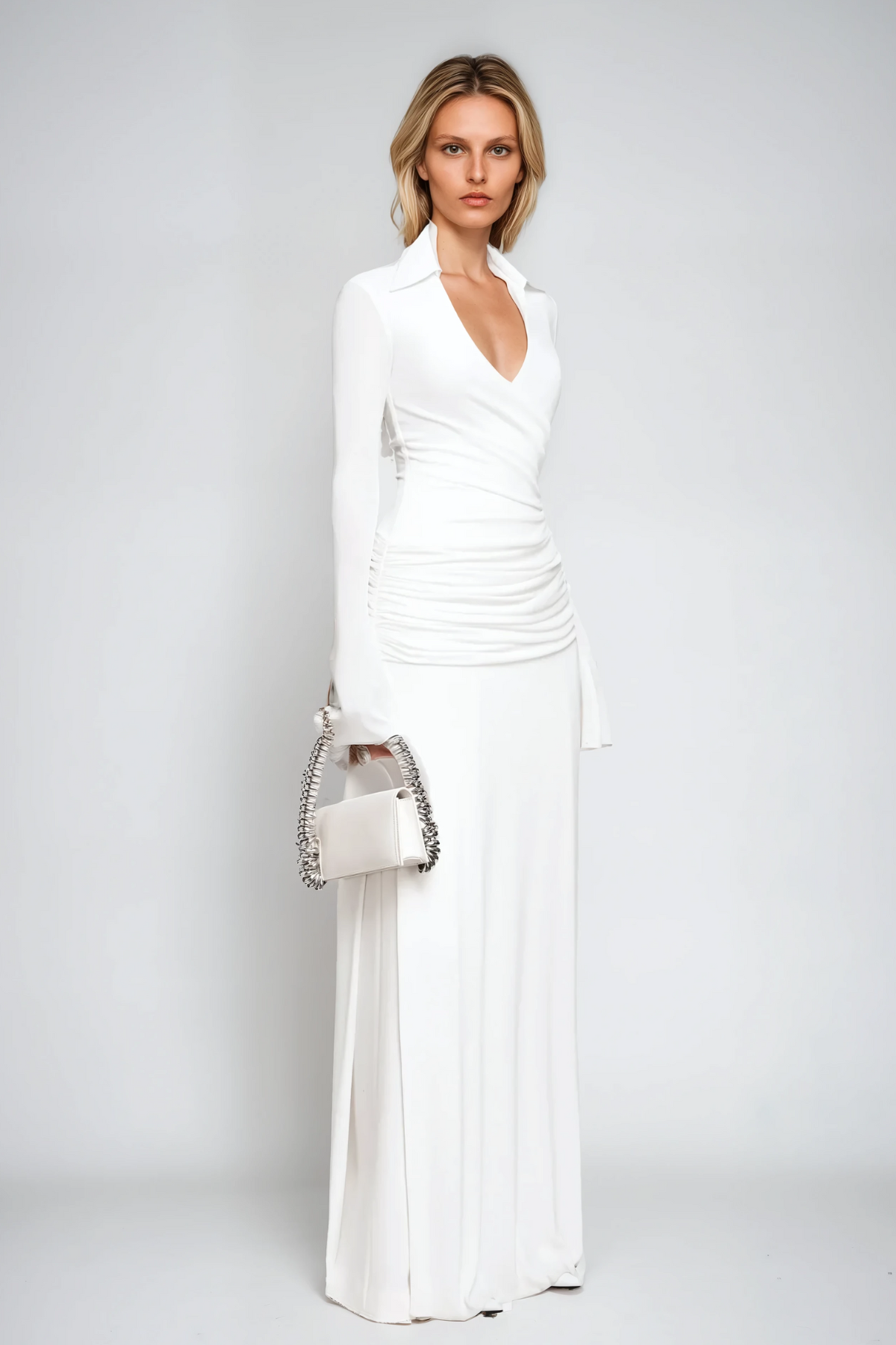 Amiah Ruch Yaka Maksi Elbise Beyaz
