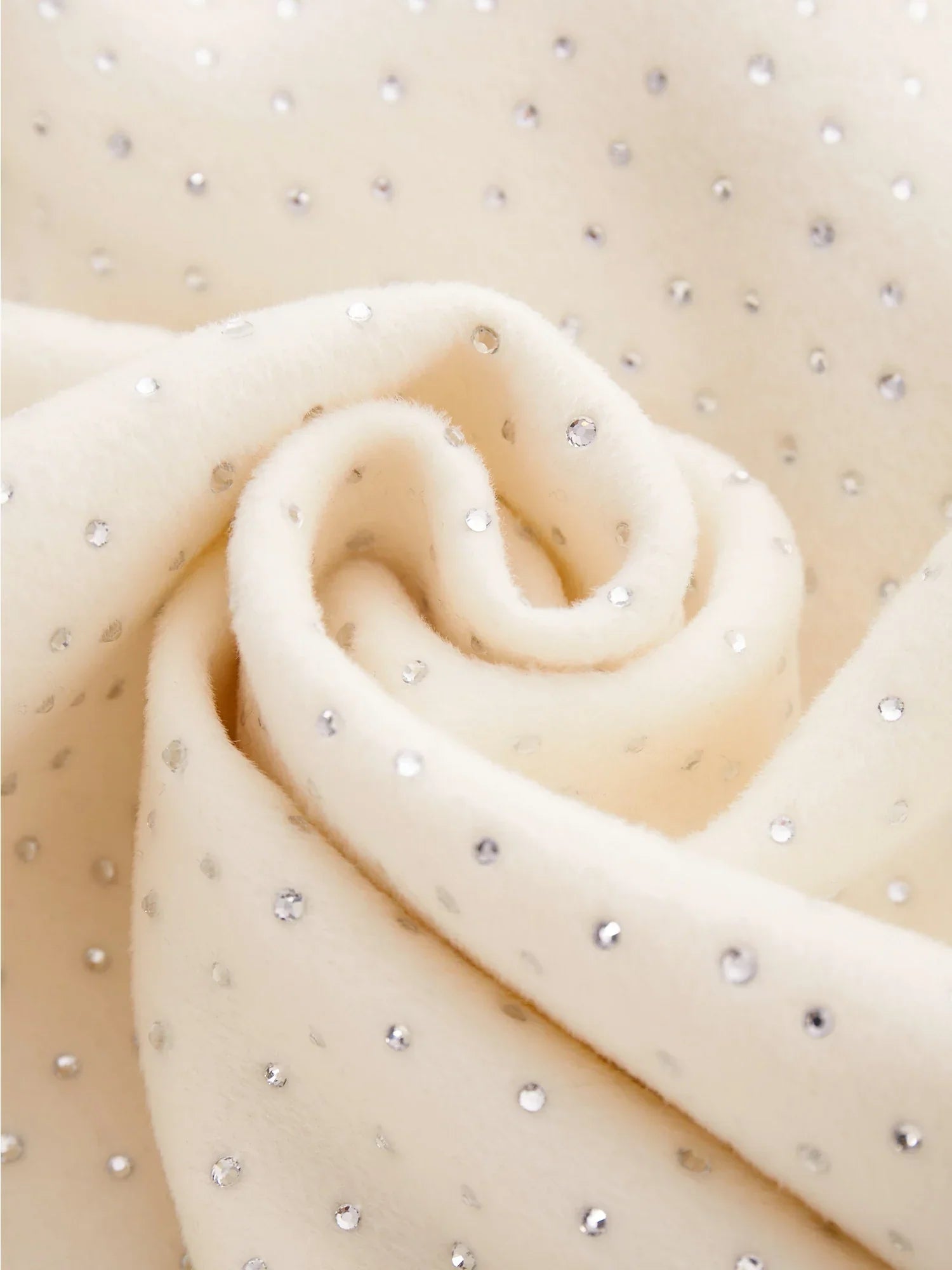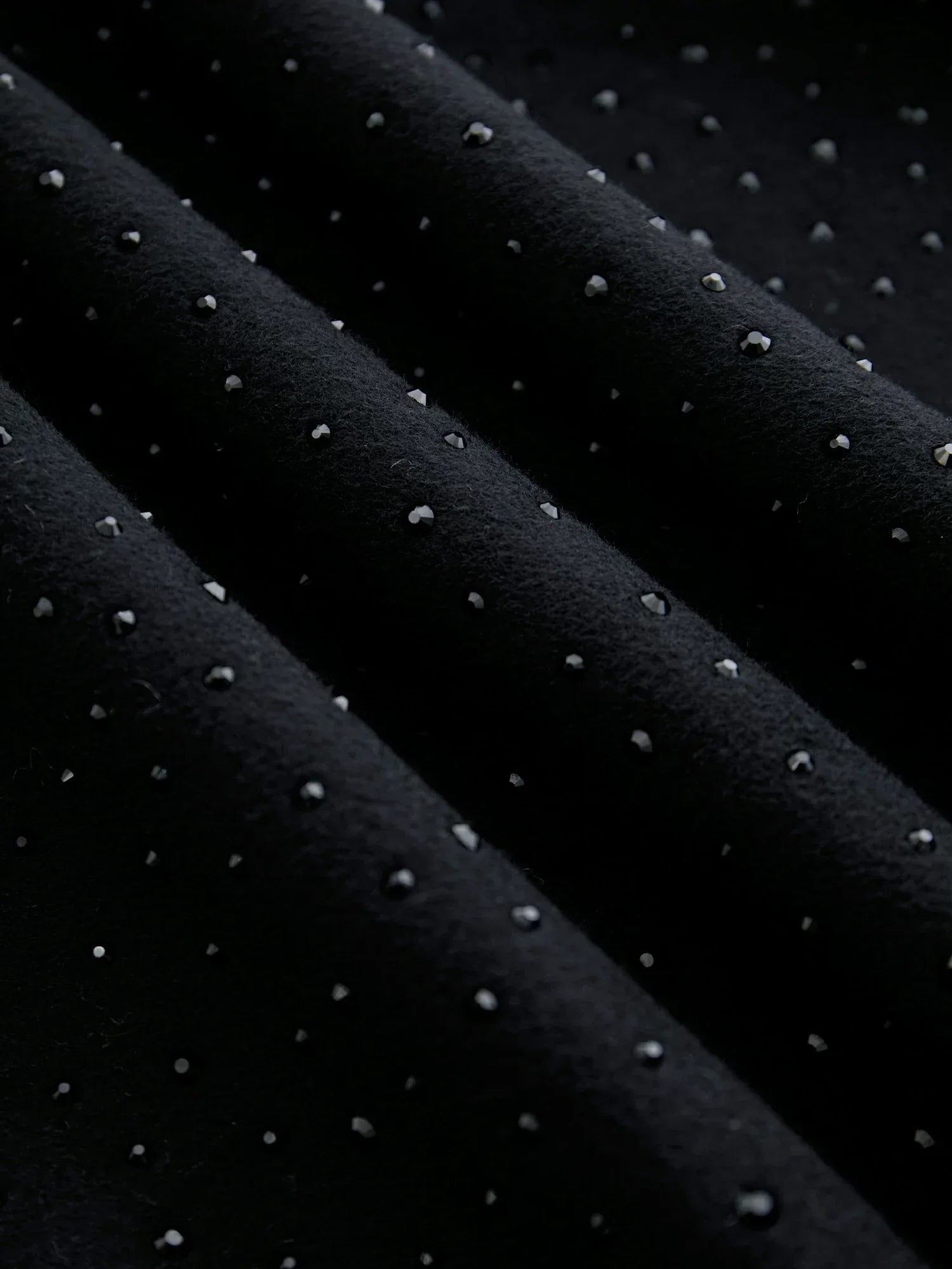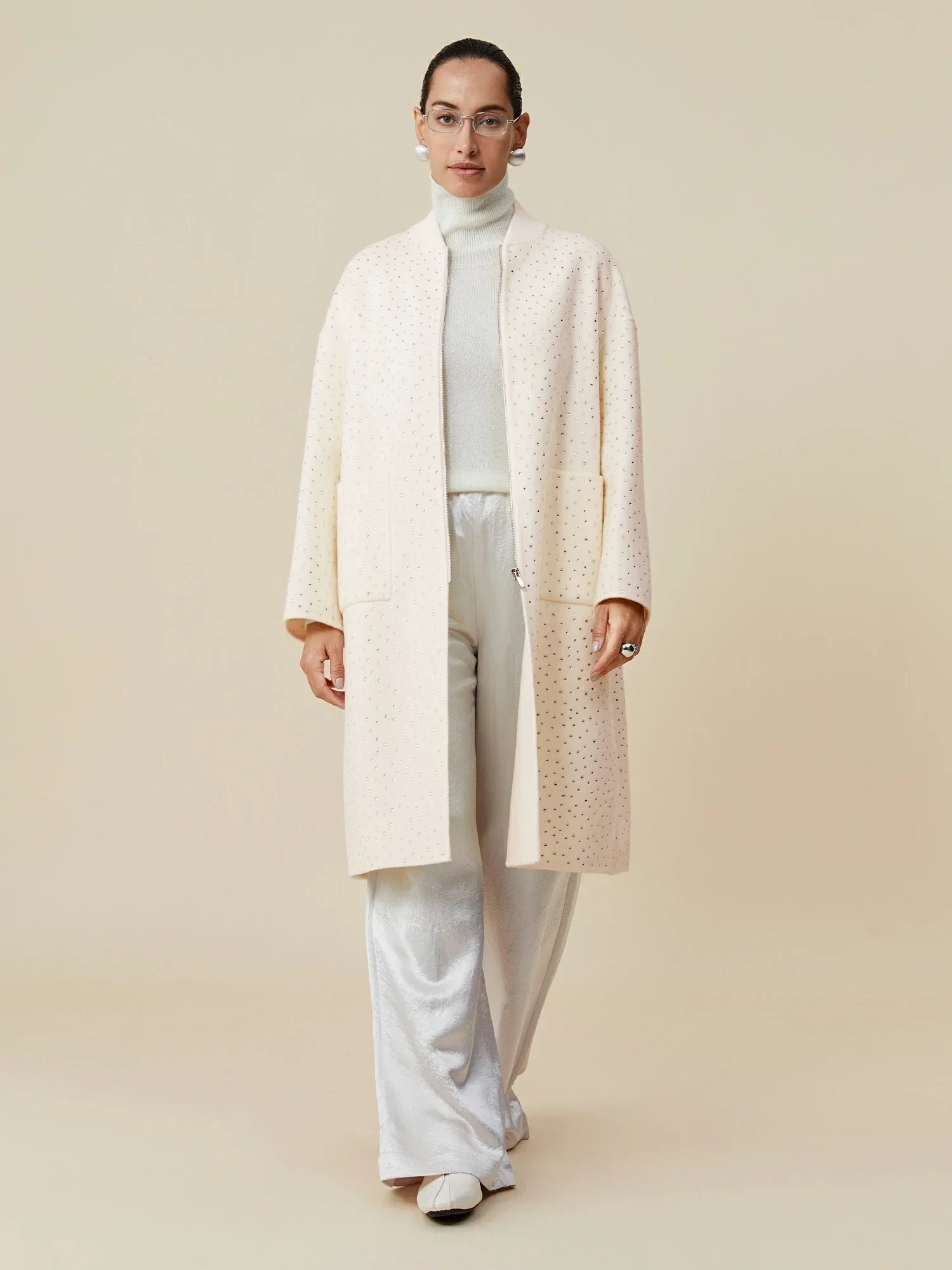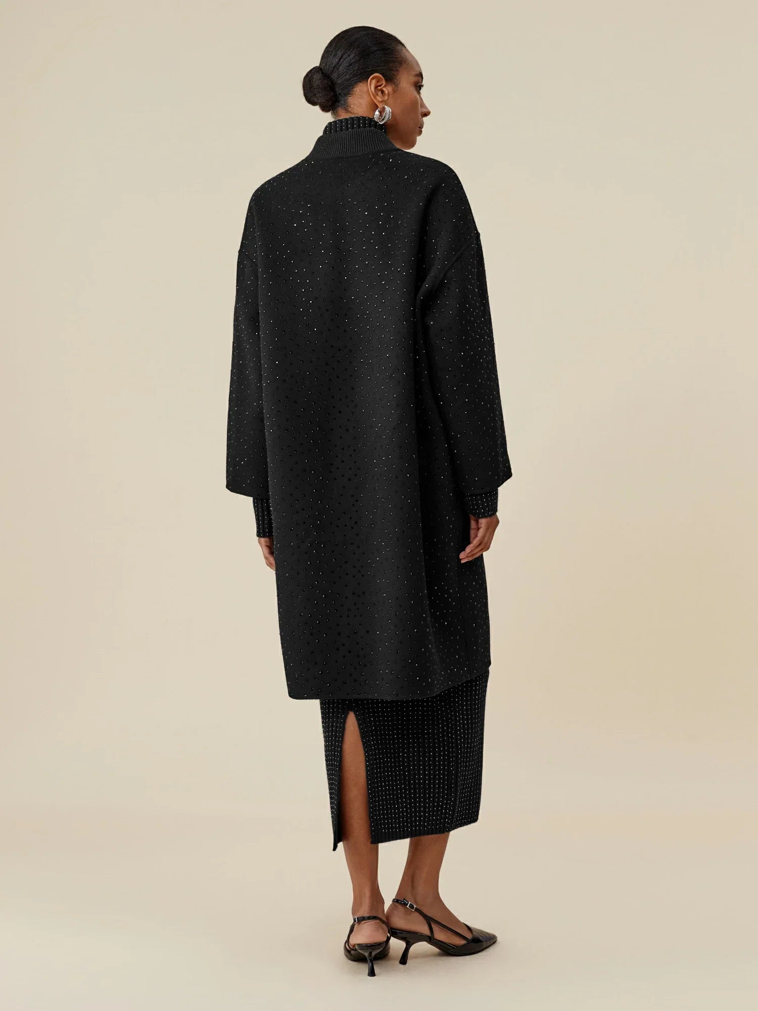 Yün Rhinestone Fermuarlı Uzun Kaban