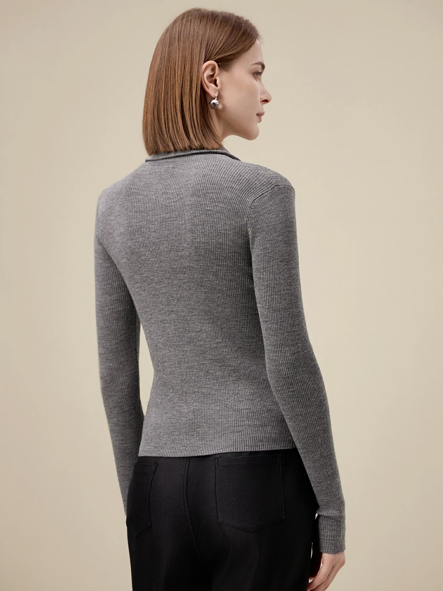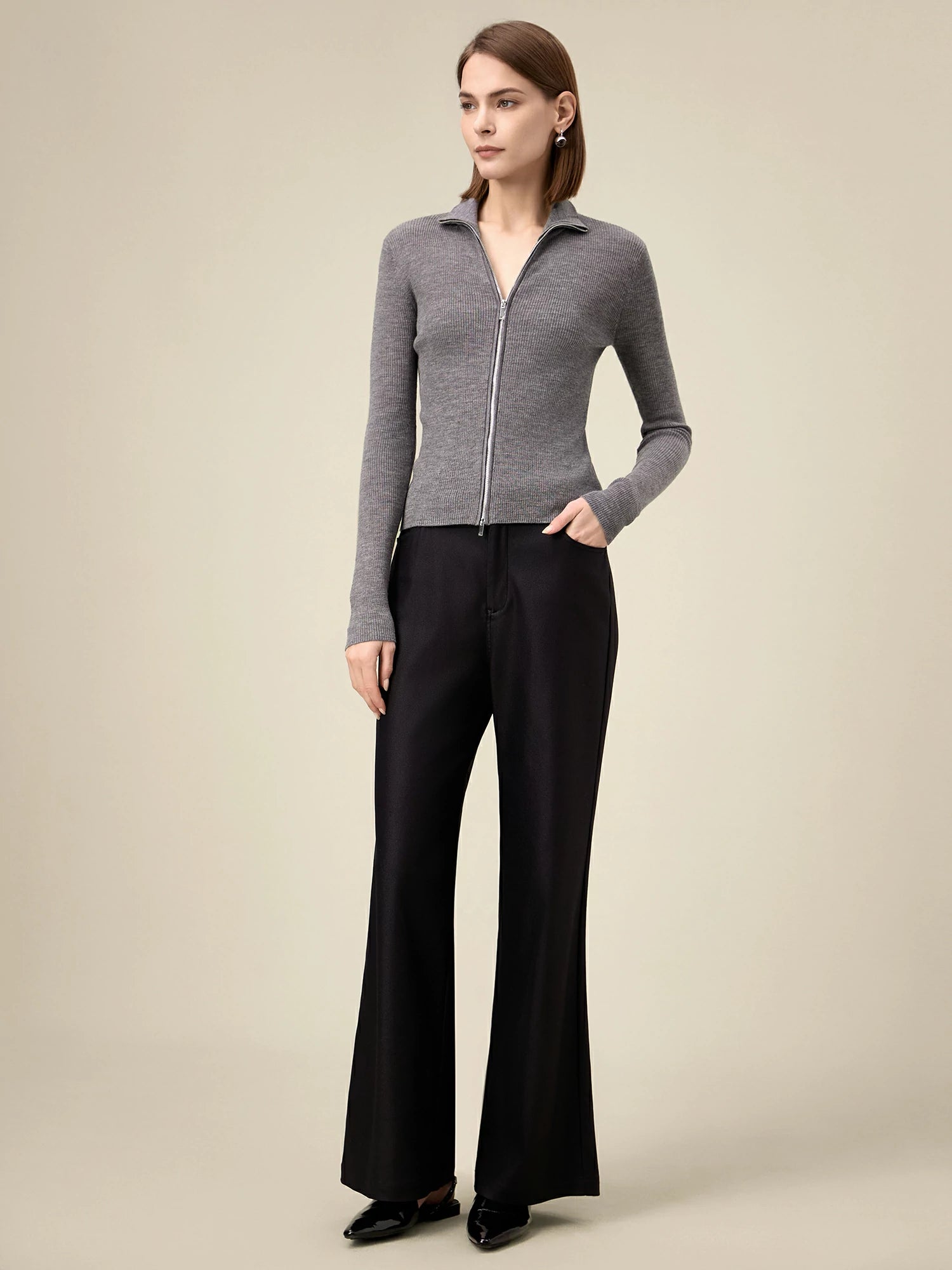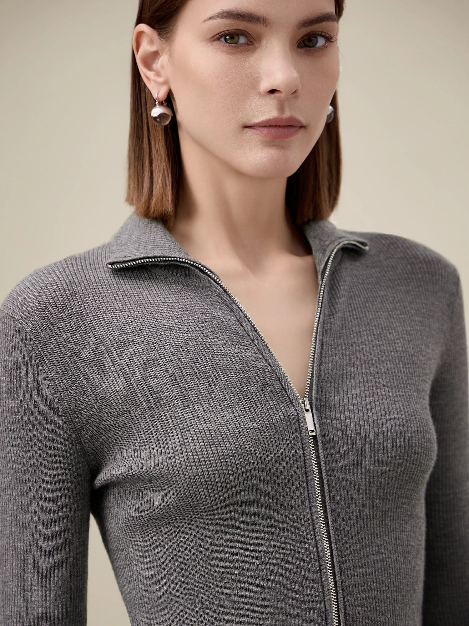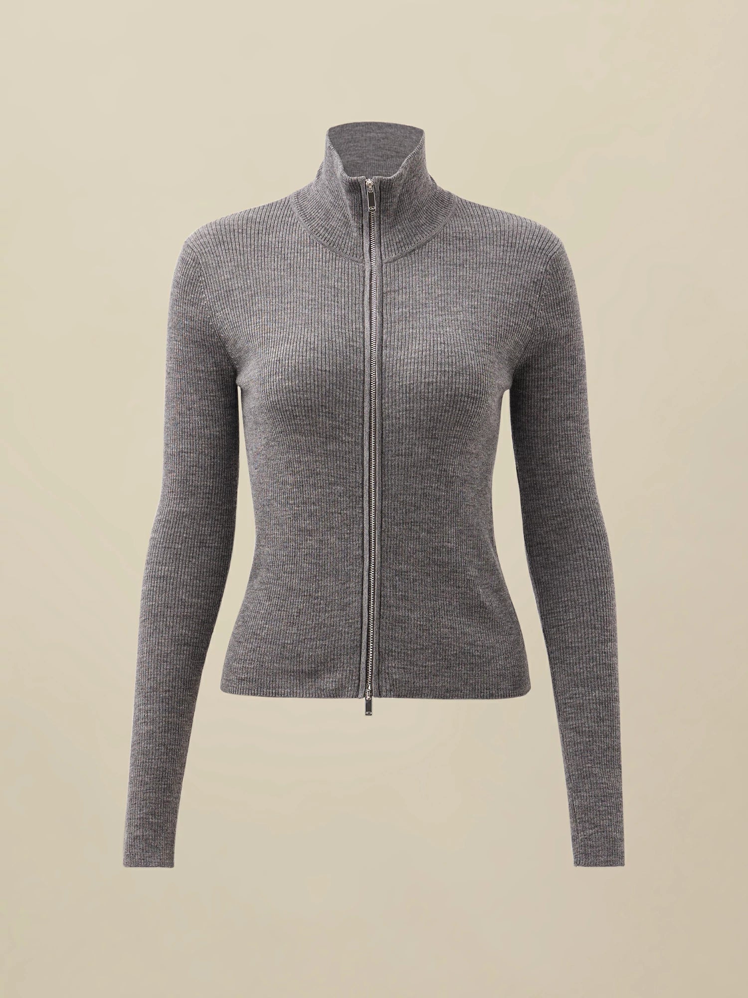 Yün Dik Yaka Çift Fermuarlı %100 Örgü Ceket