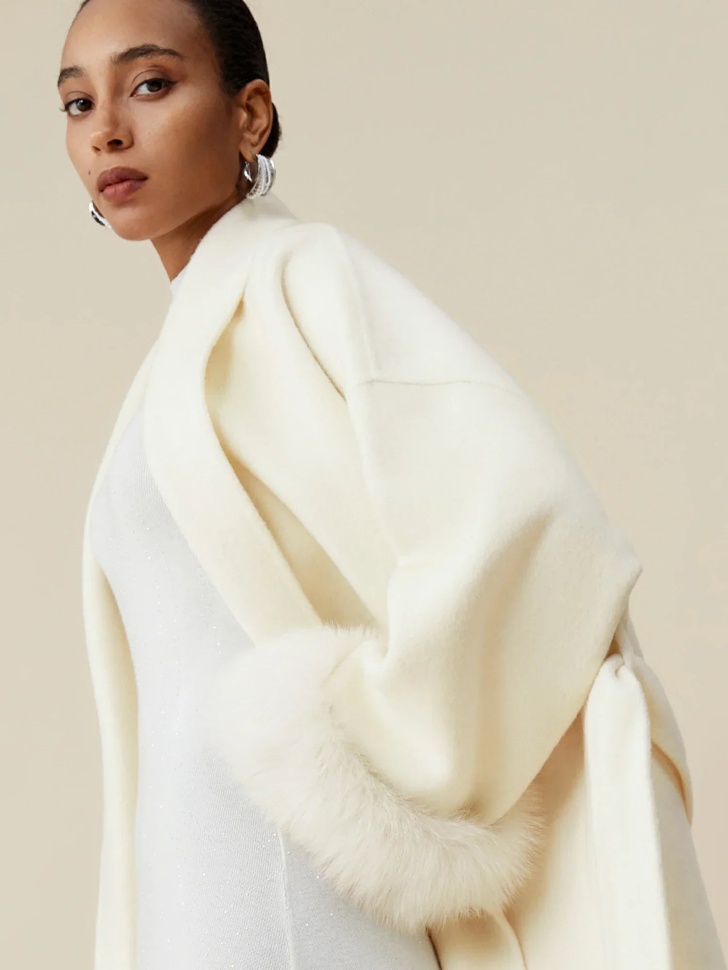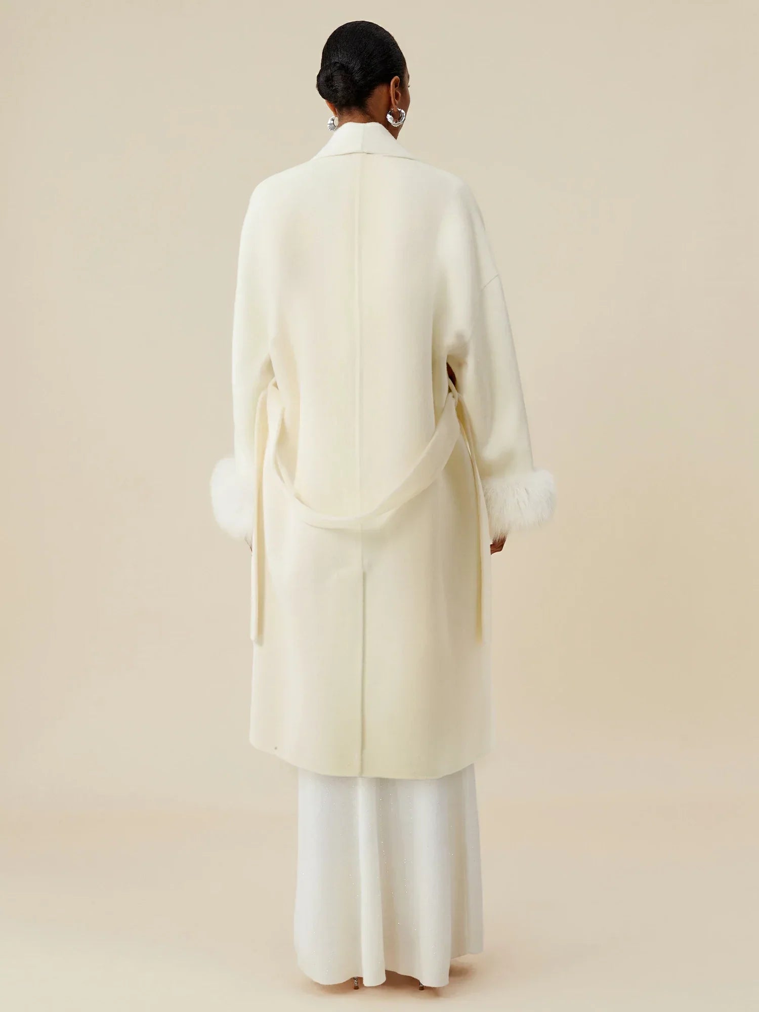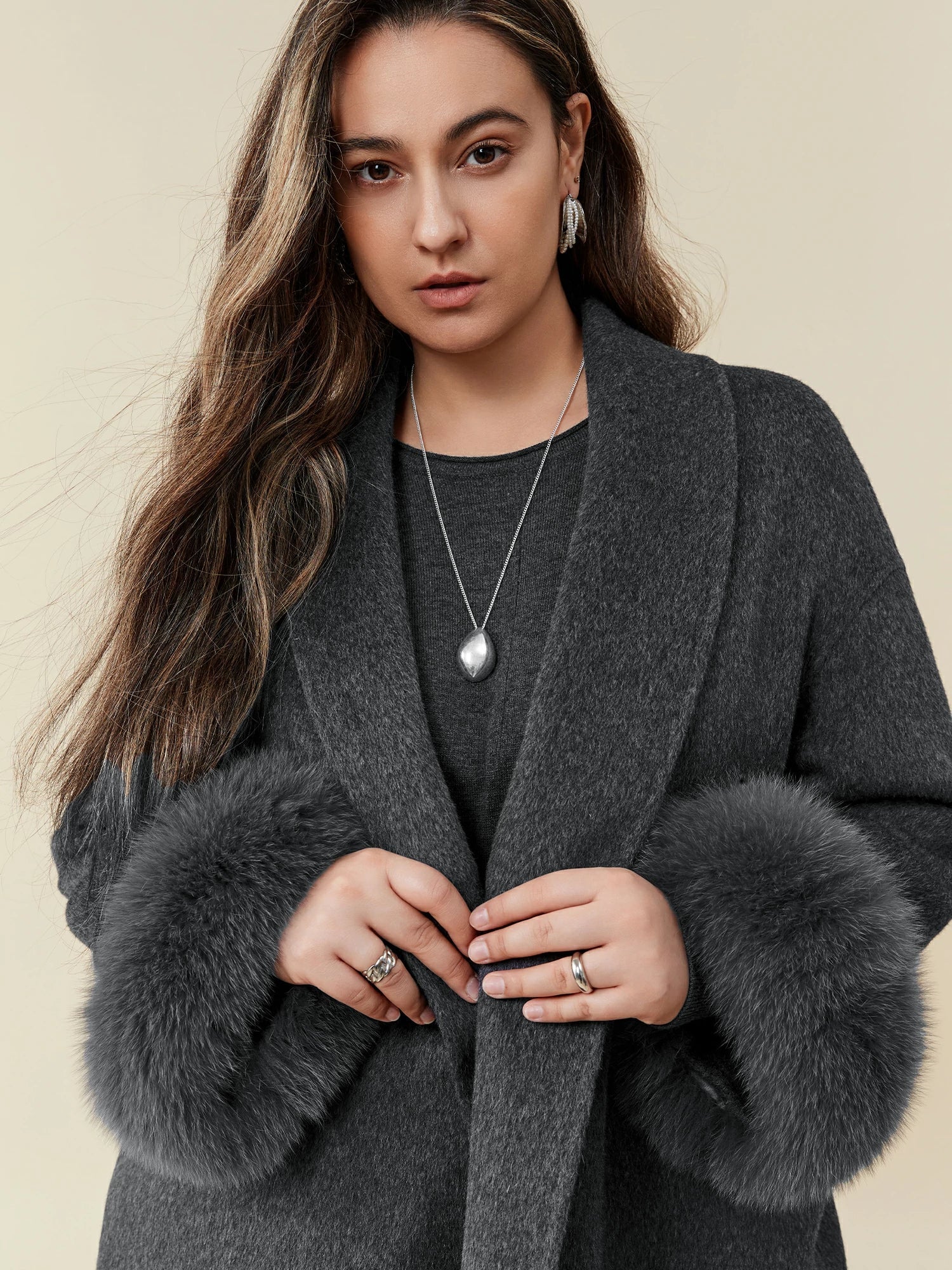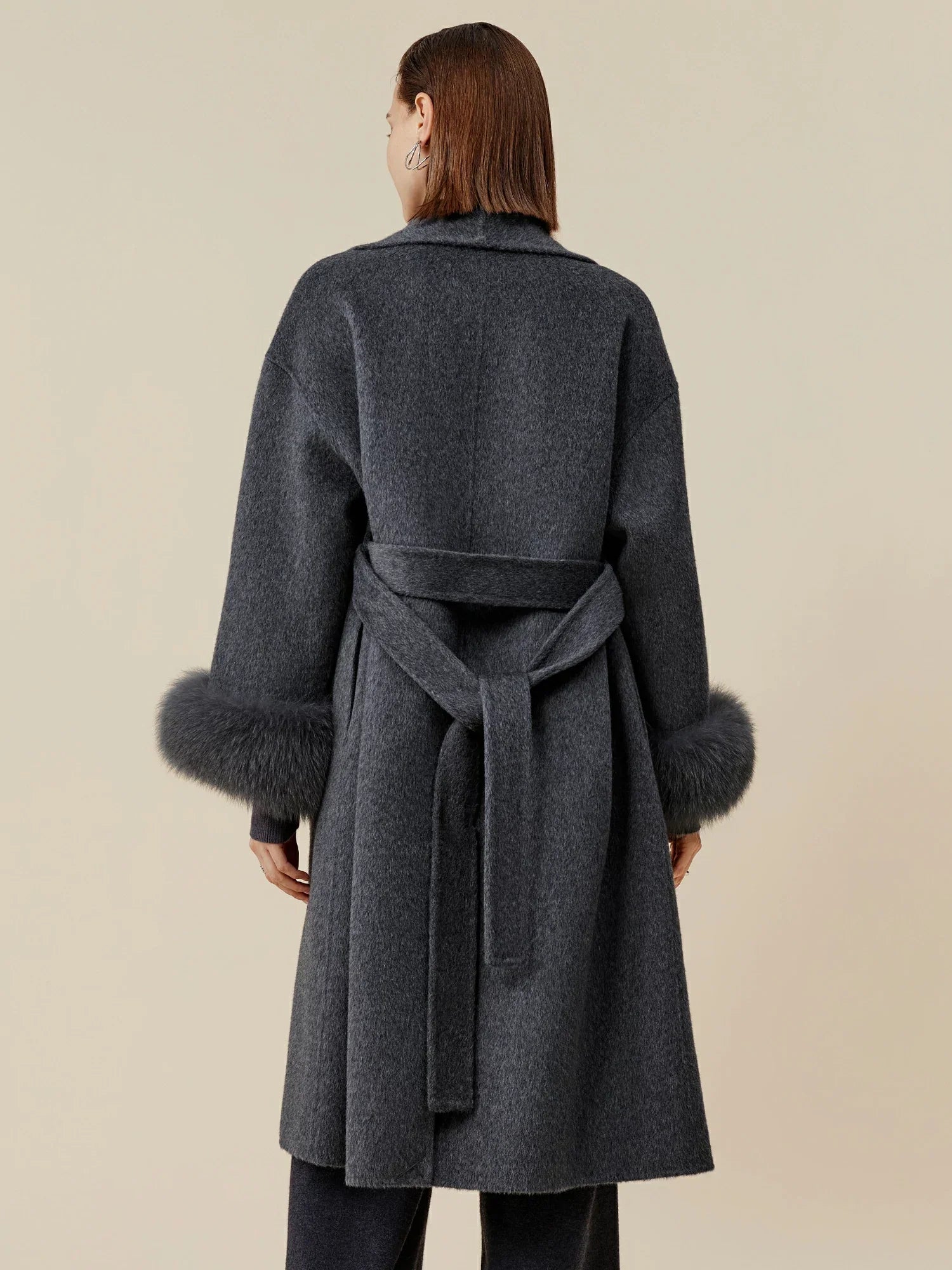 Yün Yaka Uzun Kollu Peluş Manşetli Uzun Kaban