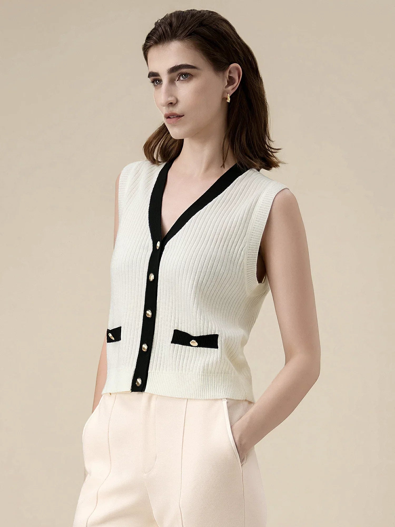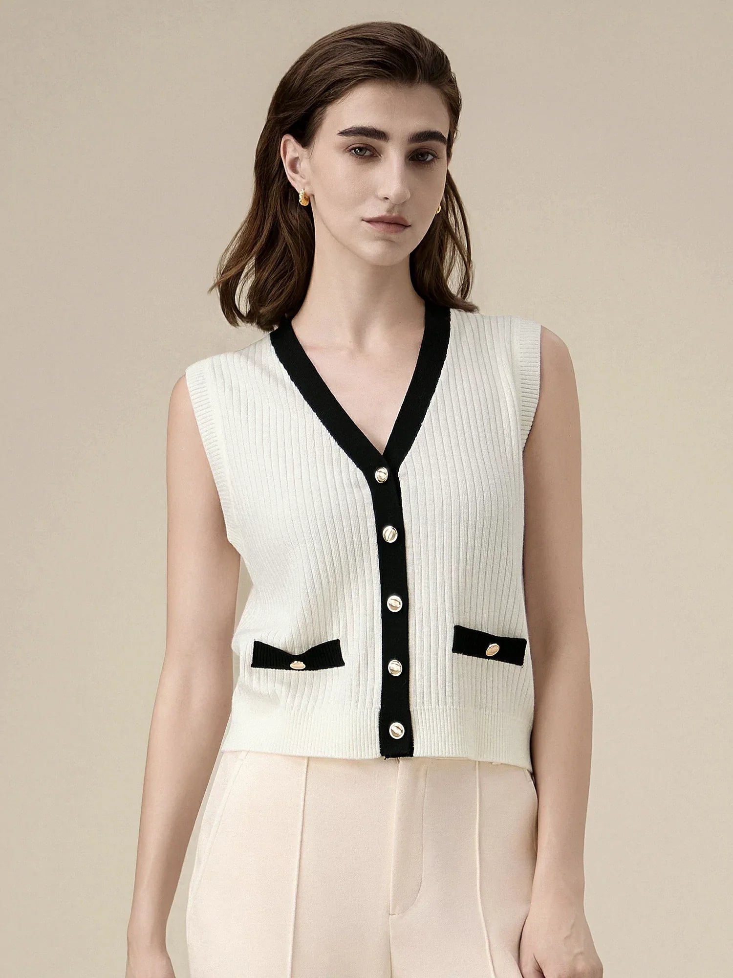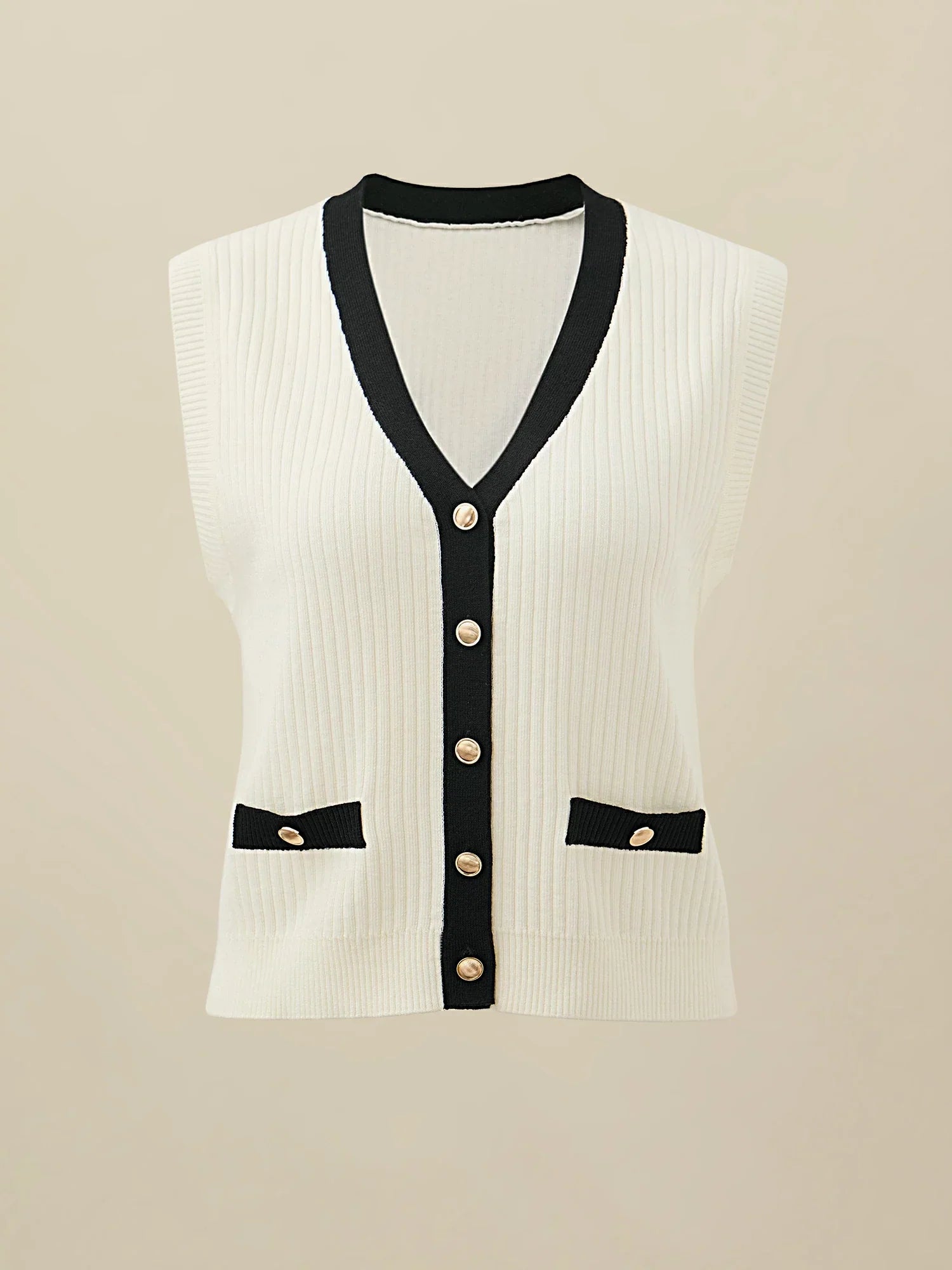 Özellik: Kadınlar için örme kazak yelek, ön düğmeli kontrast detaylı yelek. Altın düğmeli sahte yan cepler bu trend kazak yeleğini daha da şık hale getiriyor.