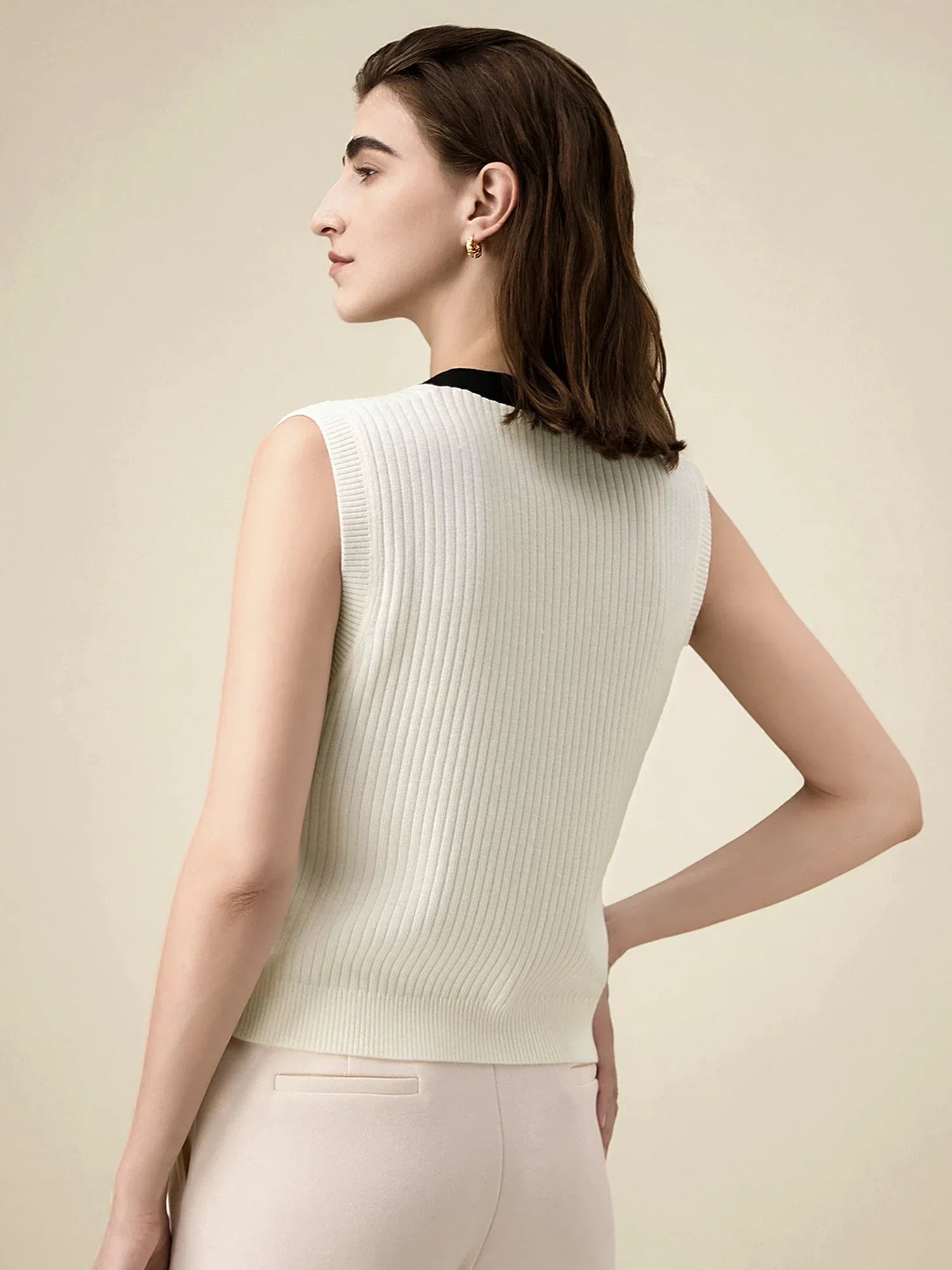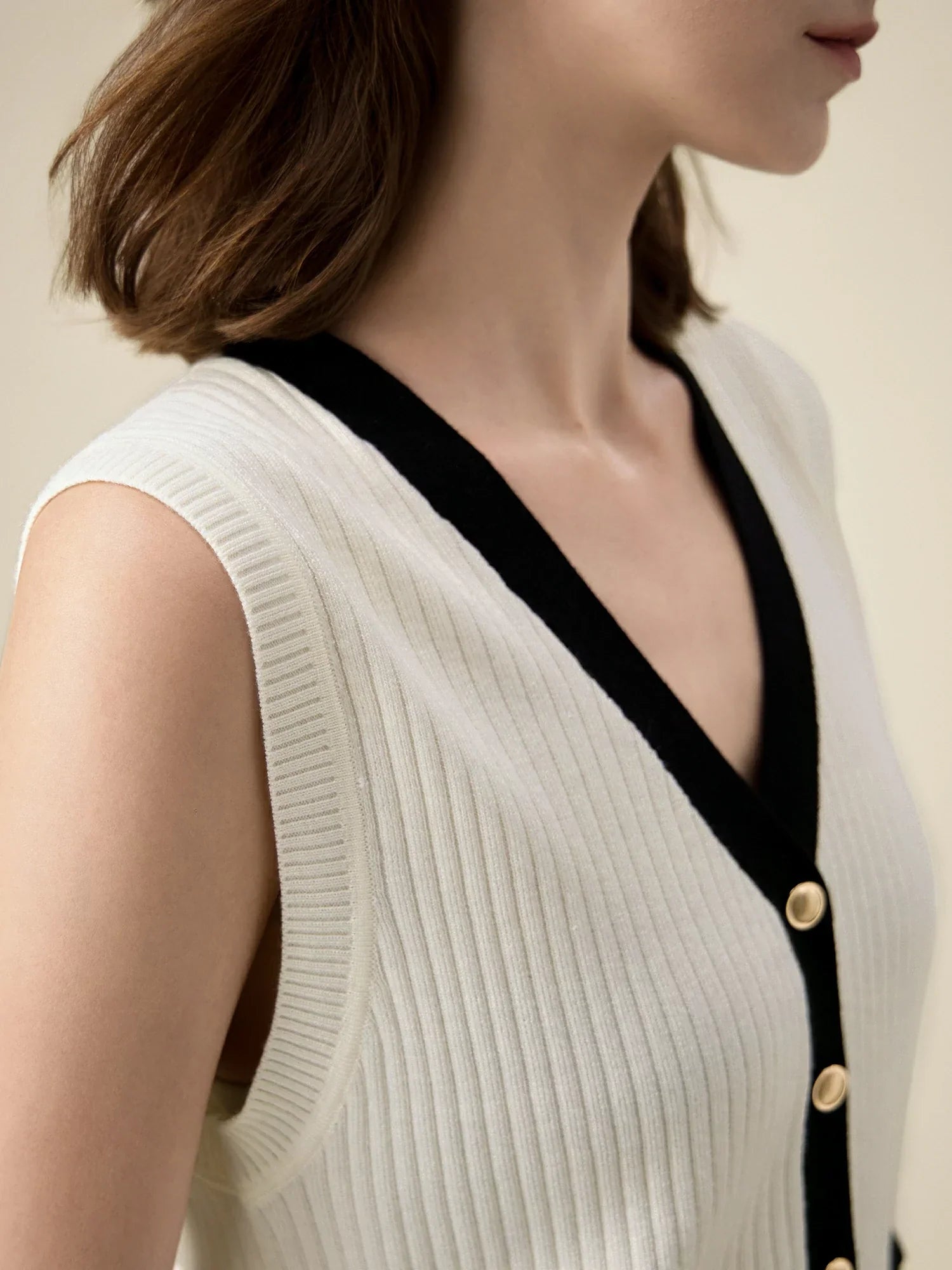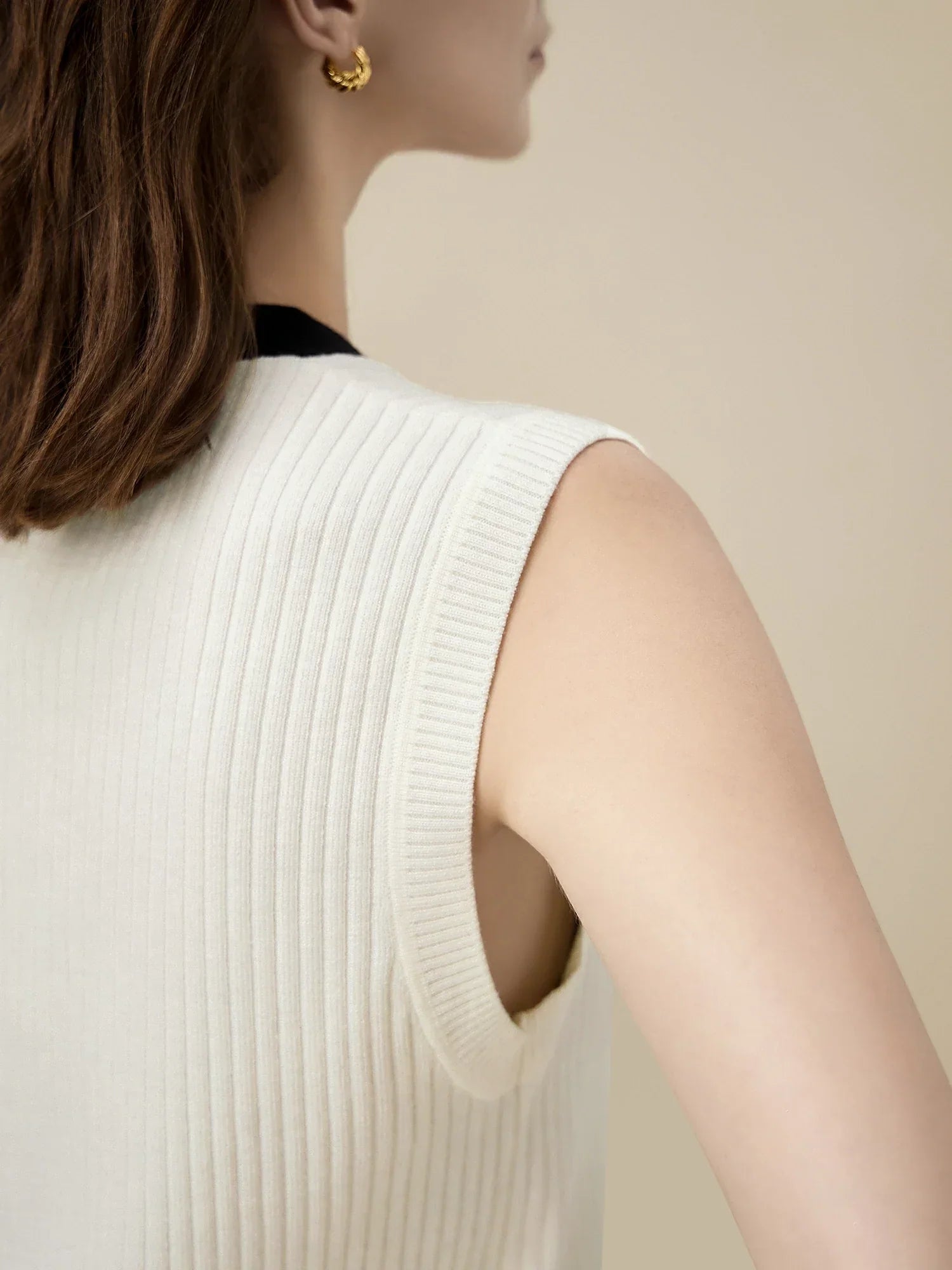 Yün Kolsuz Örme Kontrast Hırka Atlet