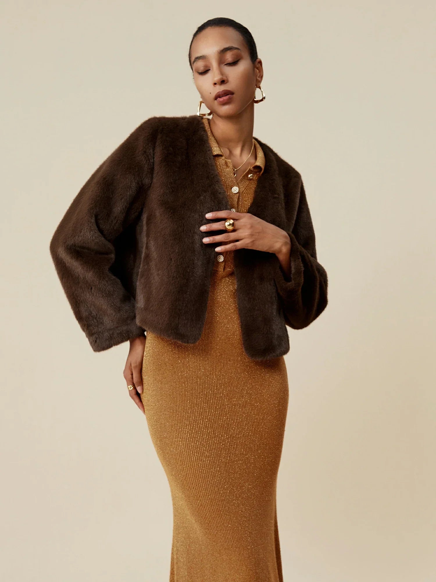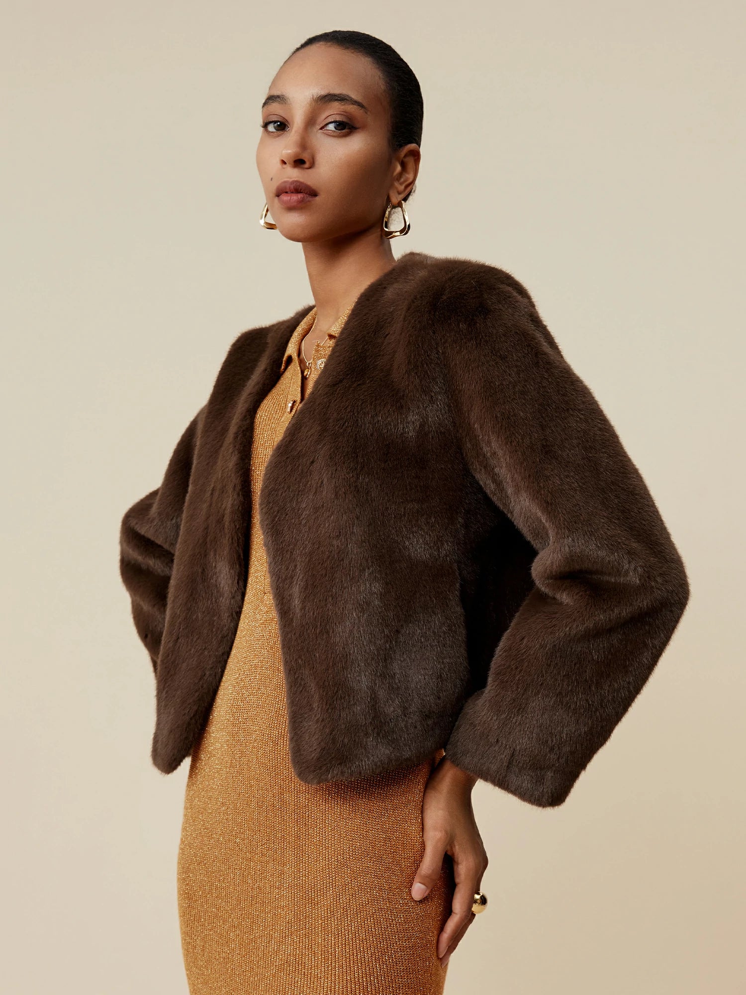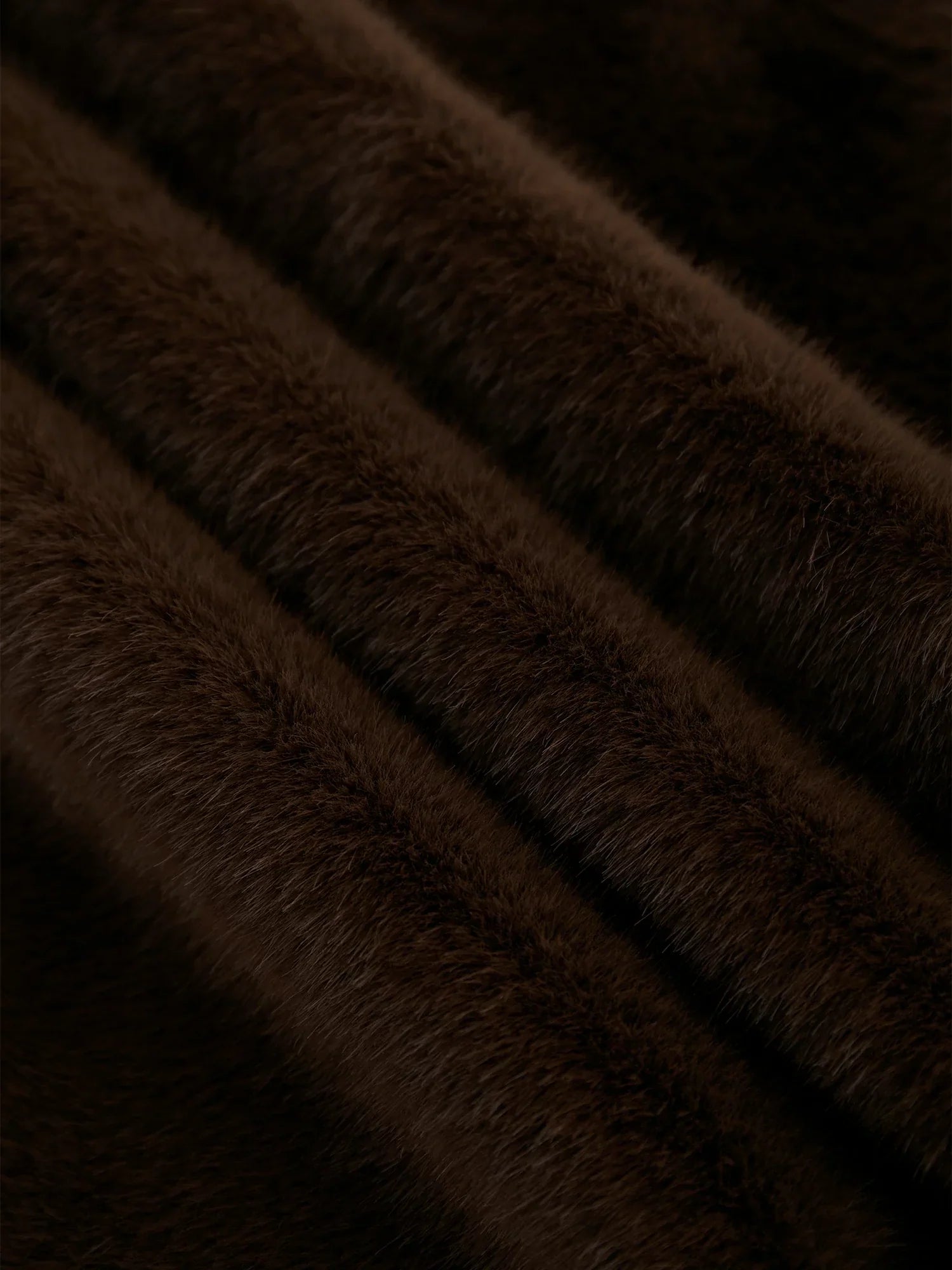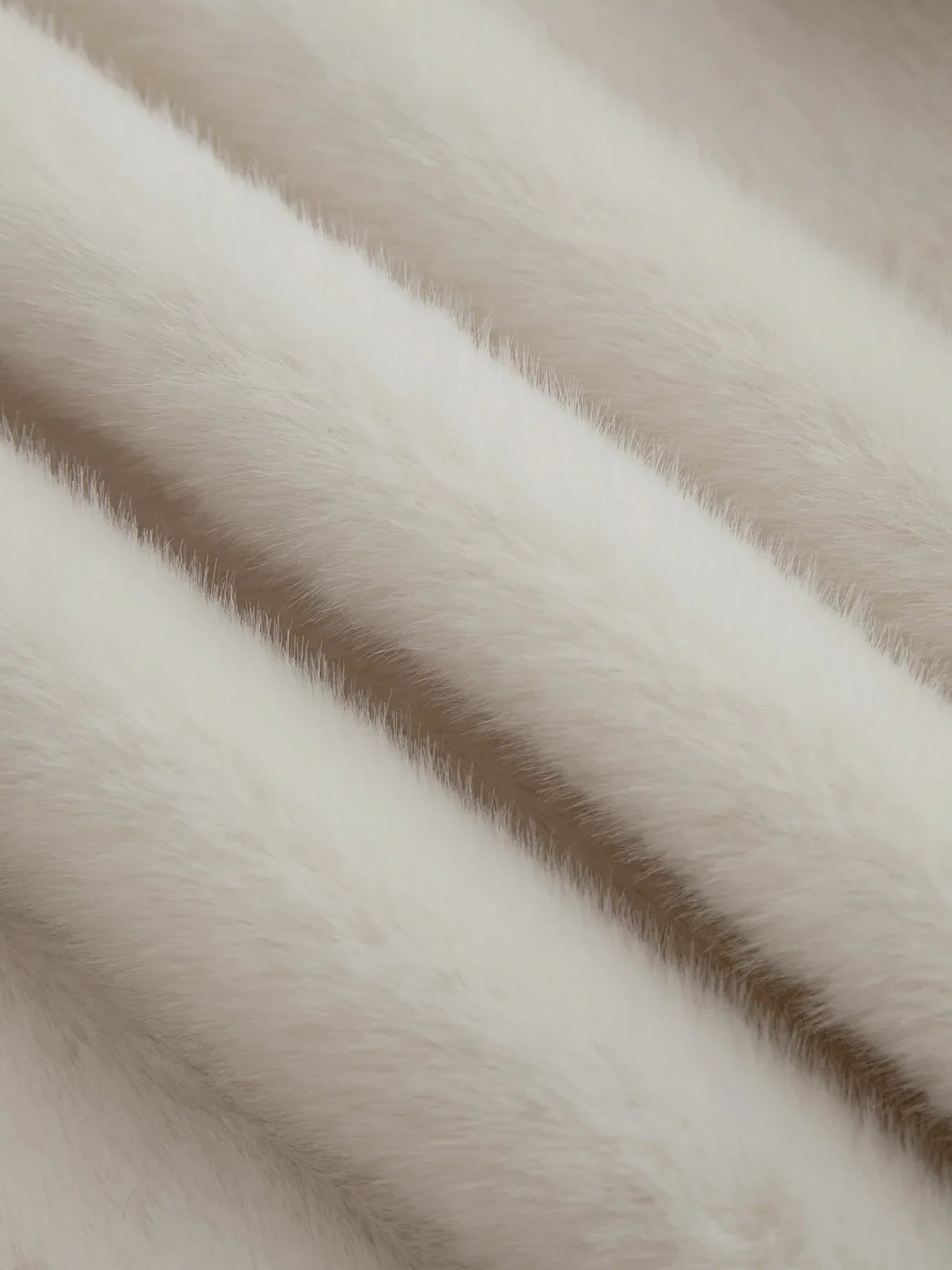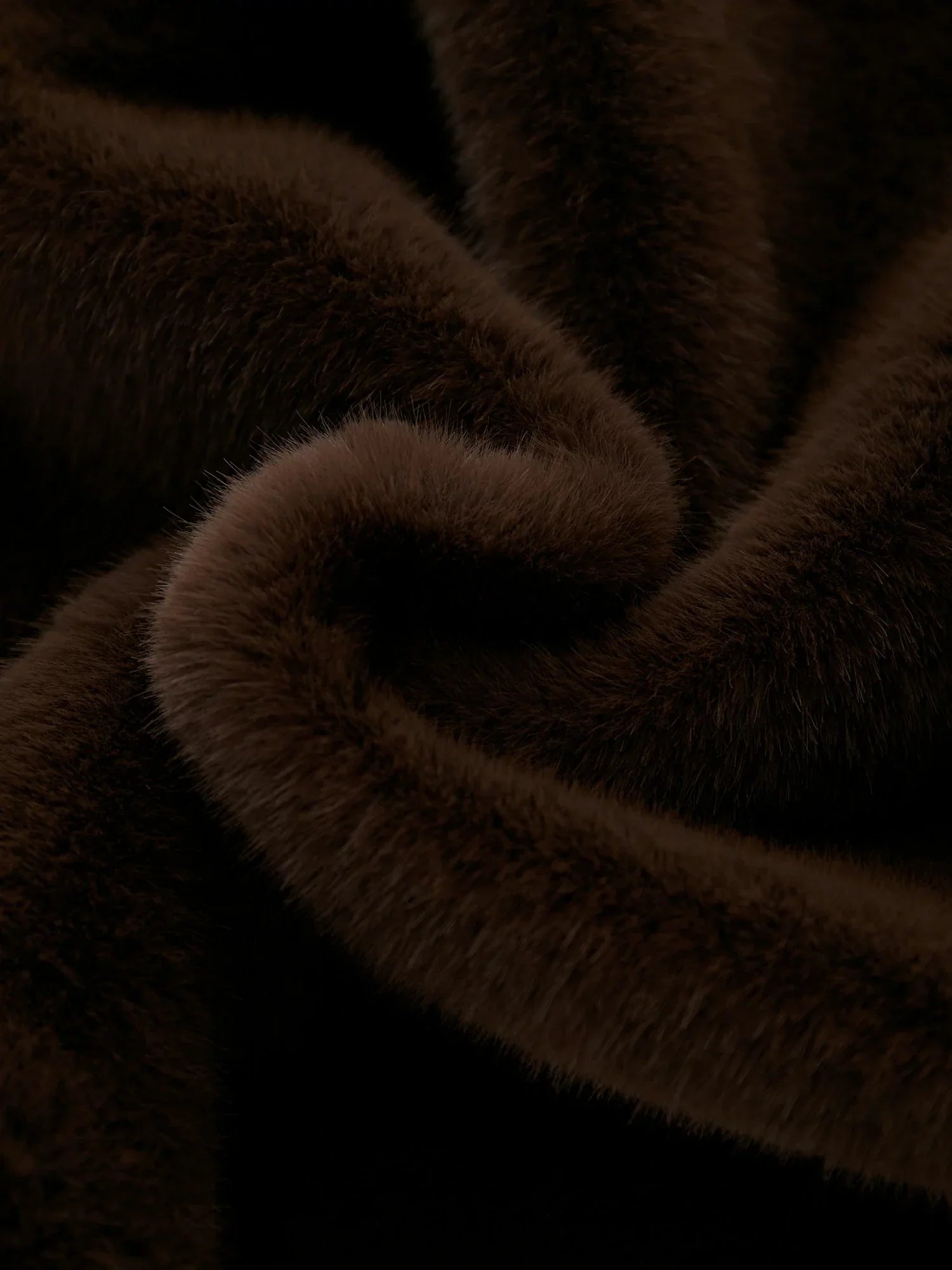 Bu çevre dostu suni kürk manto, lüks bir his sunarken yaban hayatının korunmasını teşvik eden %100 polyester elyaftan üretilmiştir. Geleneksel hakiki kürkten daha yumuşak ve daha rahattır, parlak bir yüzeye ve gerçek vizonla karşılaştırılabilir bir kaliteye sahiptir.