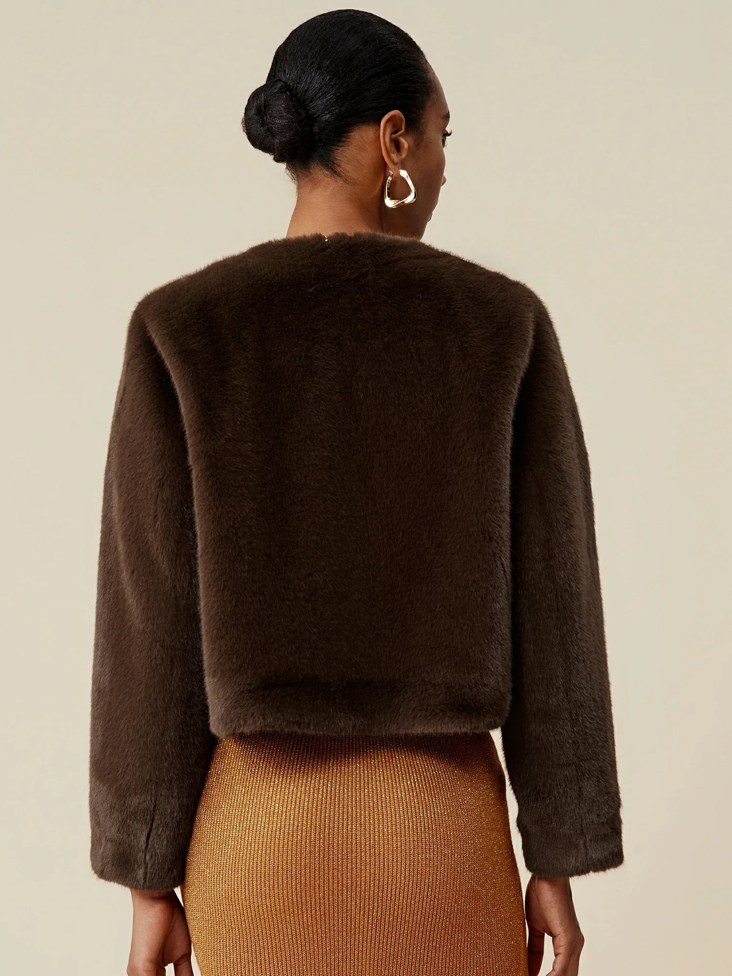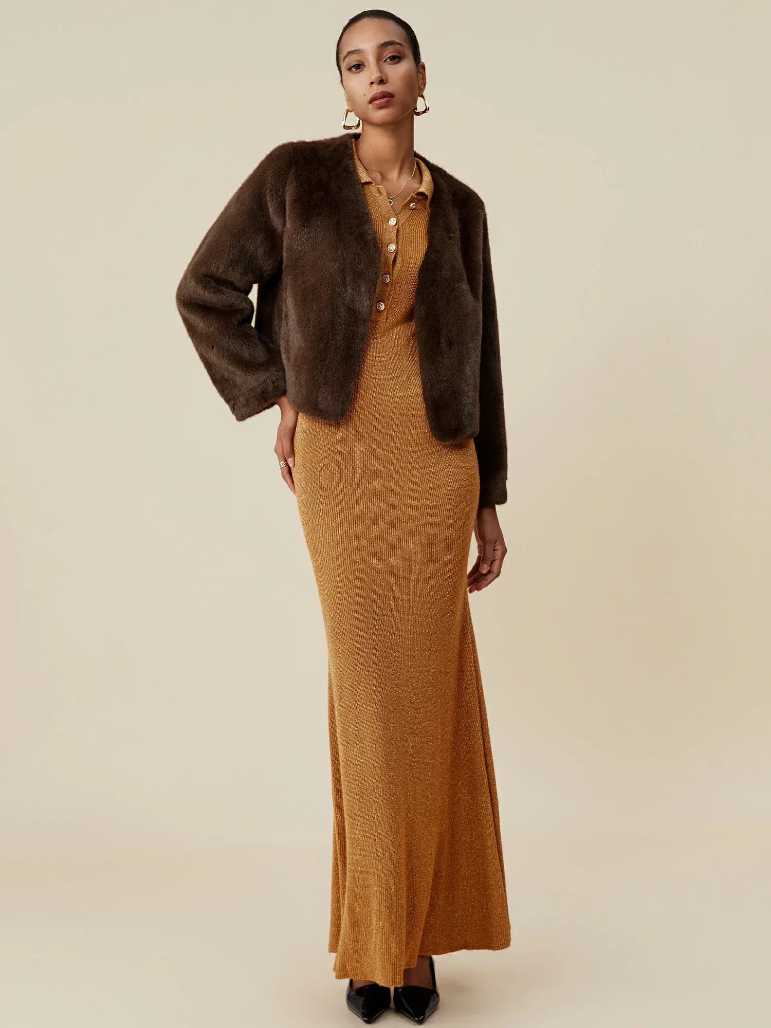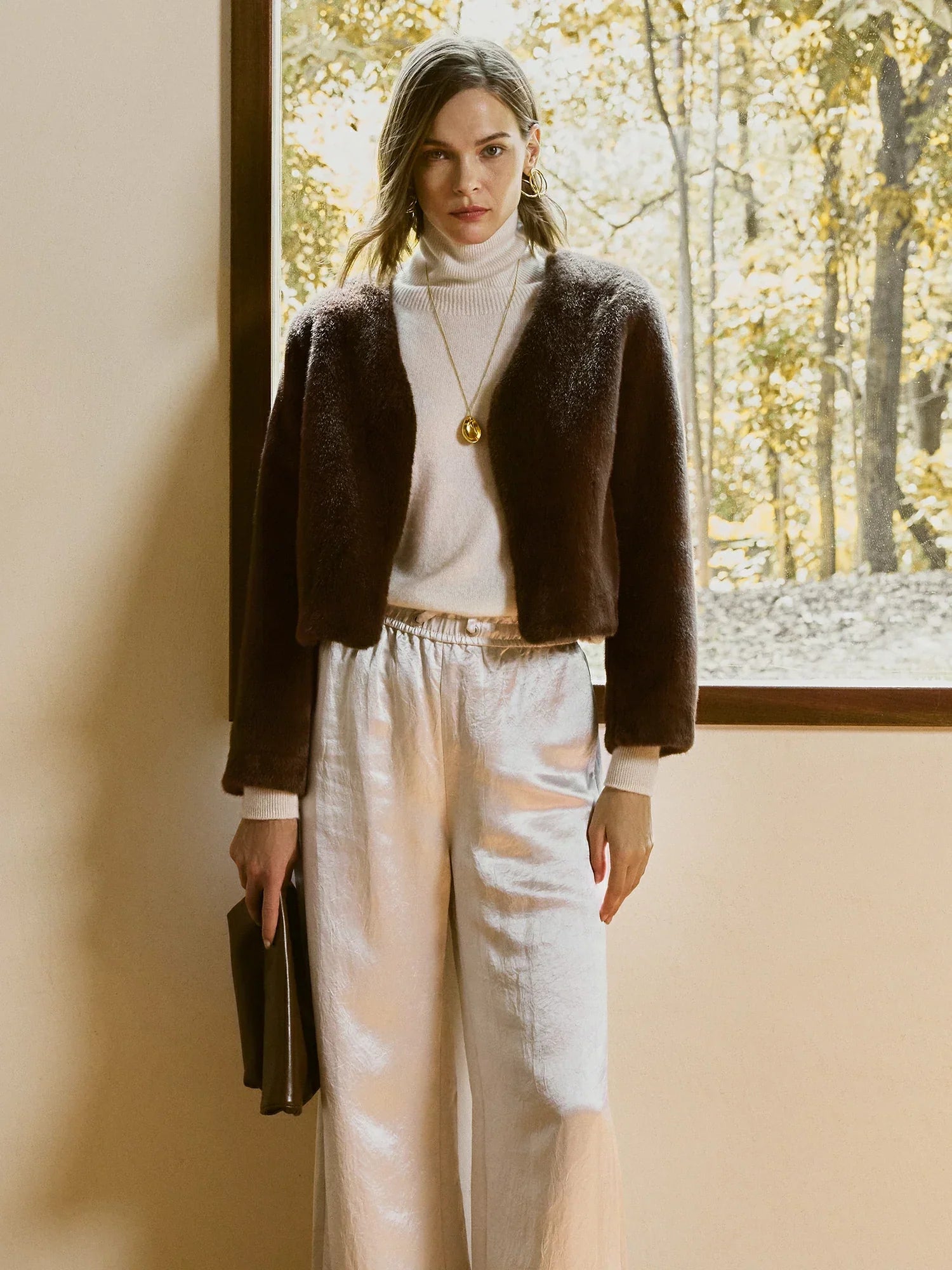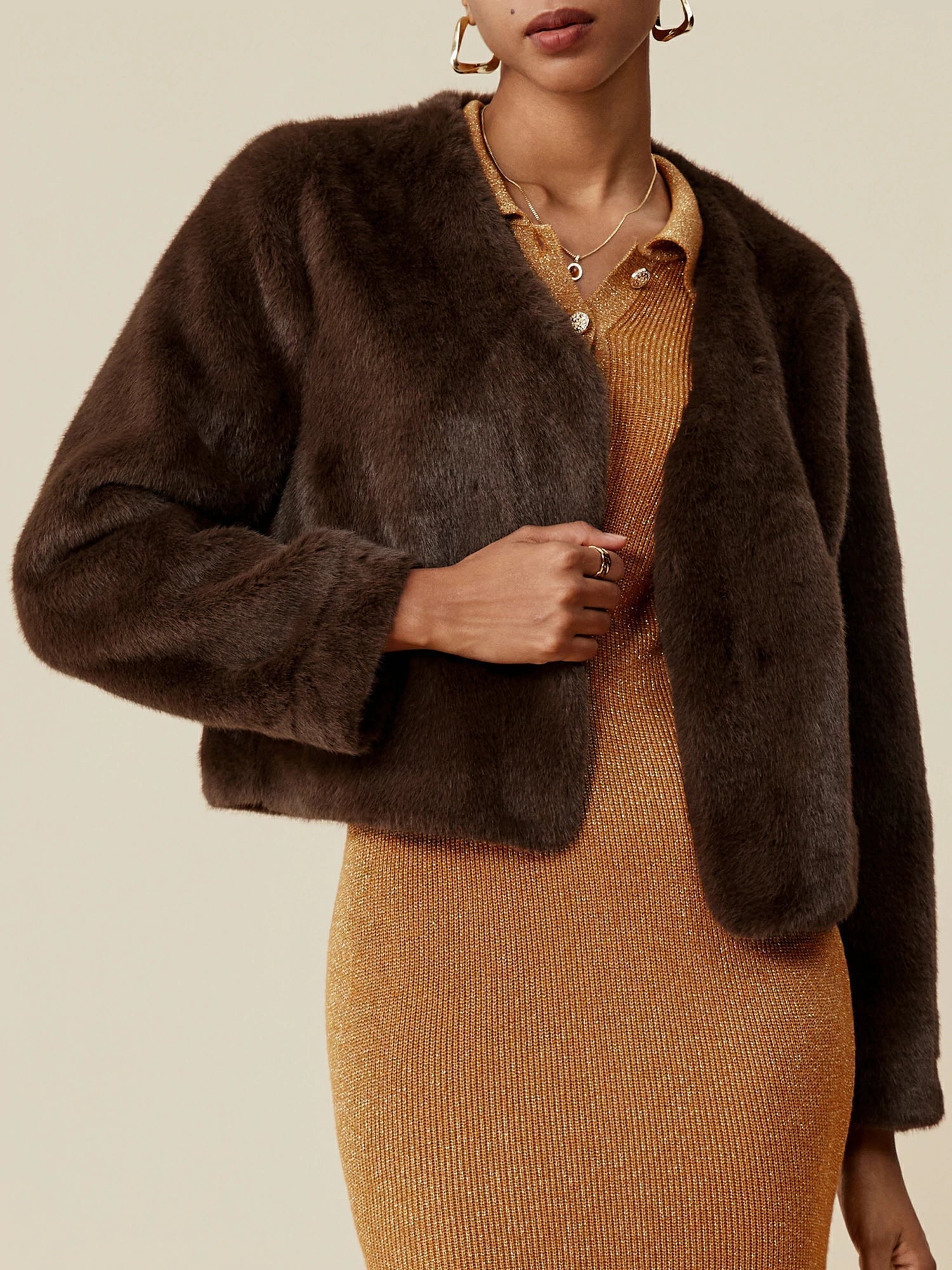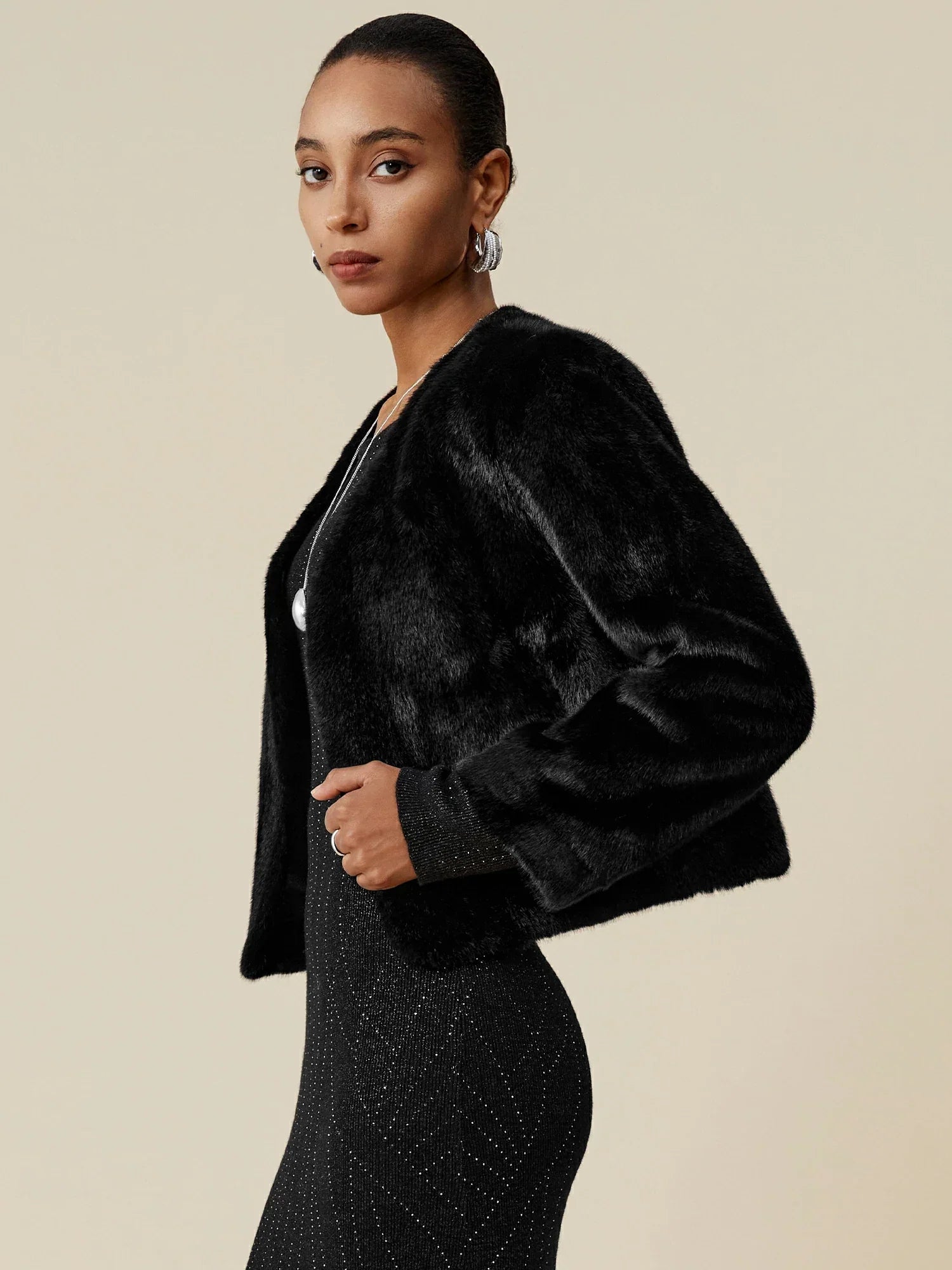 Bu çevre dostu suni kürk manto, lüks bir his sunarken yaban hayatının korunmasını teşvik eden %100 polyester elyaftan üretilmiştir. Geleneksel hakiki kürkten daha yumuşak ve daha rahattır, parlak bir yüzeye ve gerçek vizonla karşılaştırılabilir bir kaliteye sahiptir.