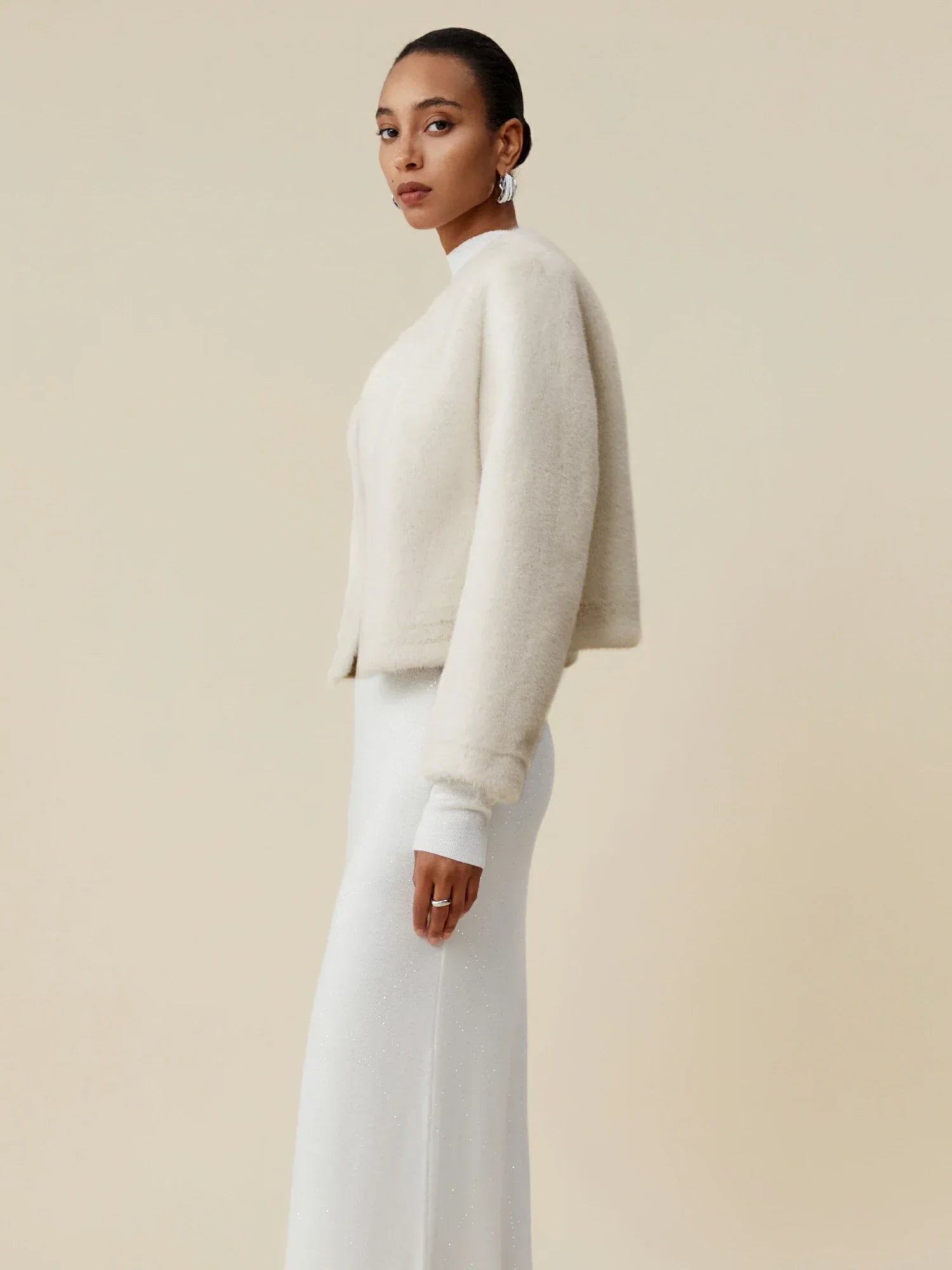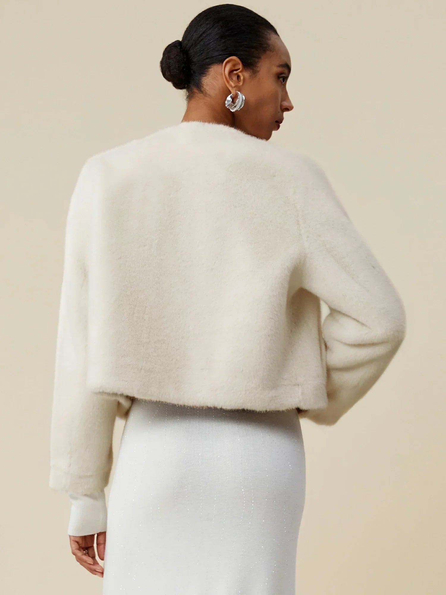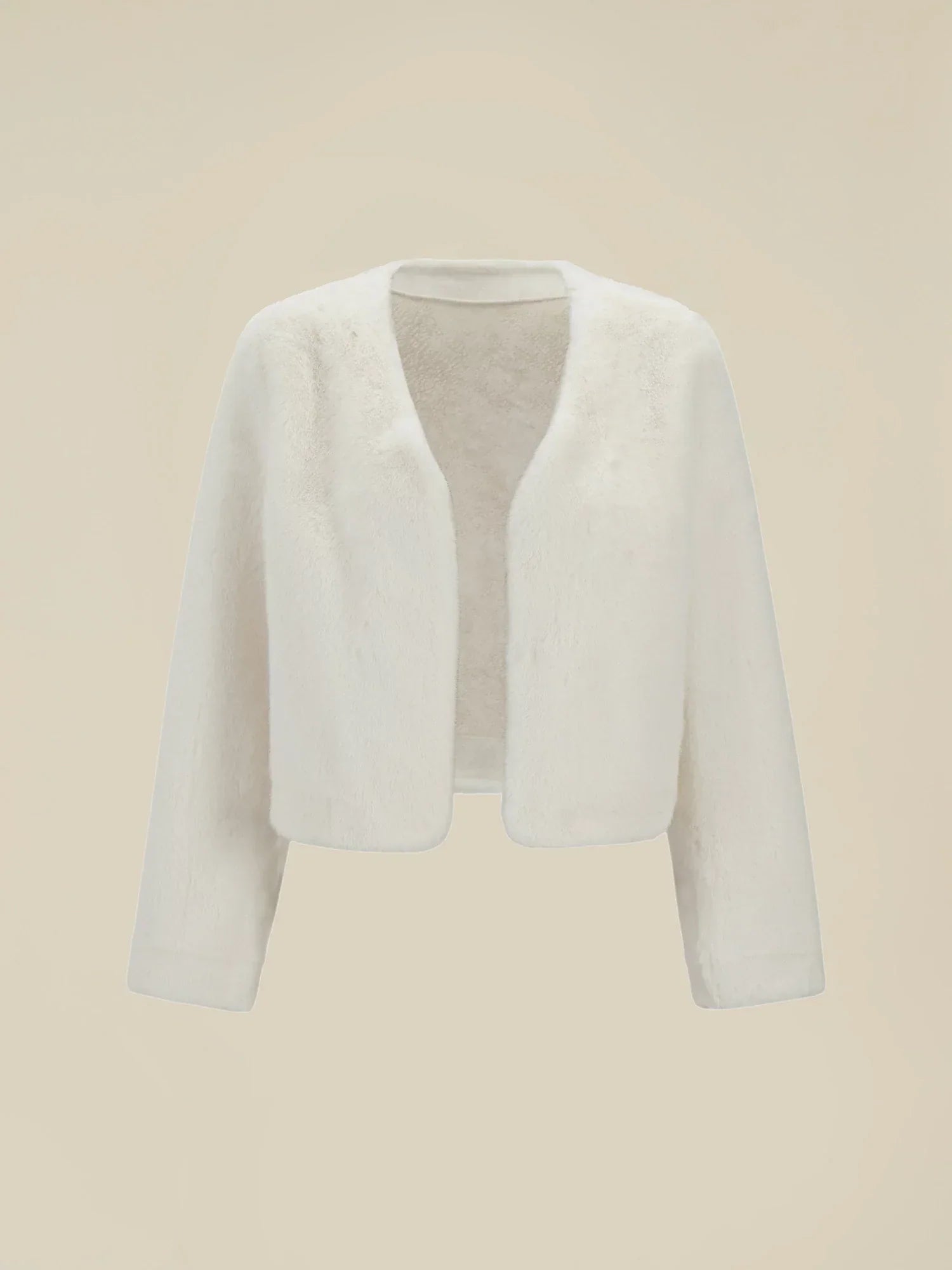 Minimalist ön kapamaya sahip bu ceket, sıcaklığı şık bir silüetle birleştiriyor. Klasik kısa uzunluk, tüm vücut tipleri için hoş ve çok yönlüdür. Manşetler ve etek ucu, vintage bir lüks dokunuşu eklerken rüzgar koruması sağlar.