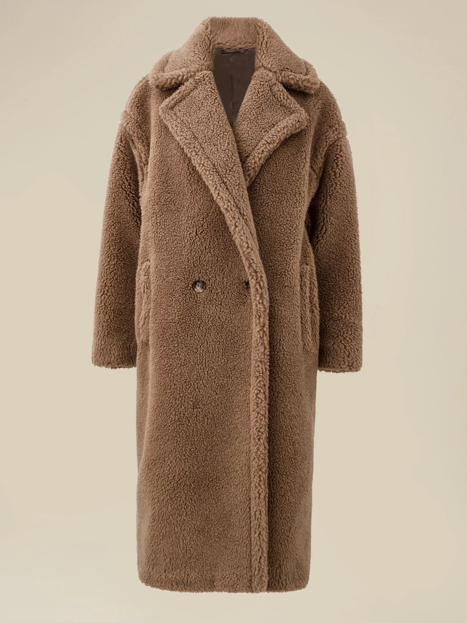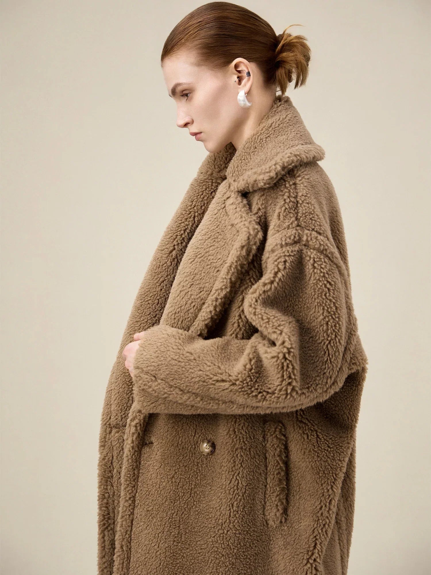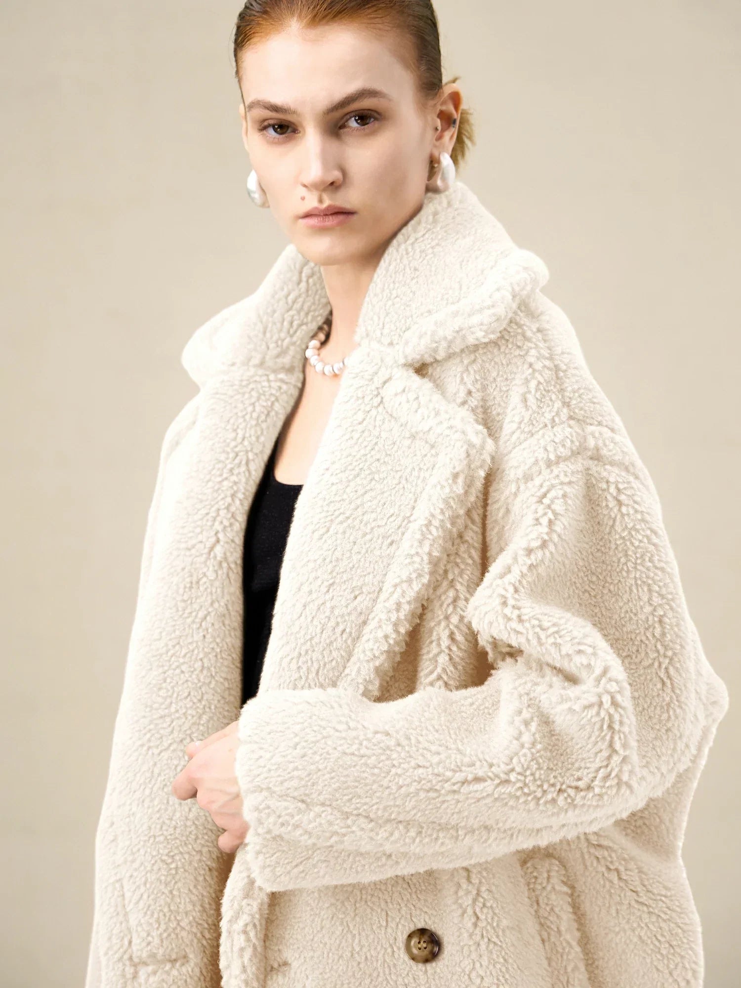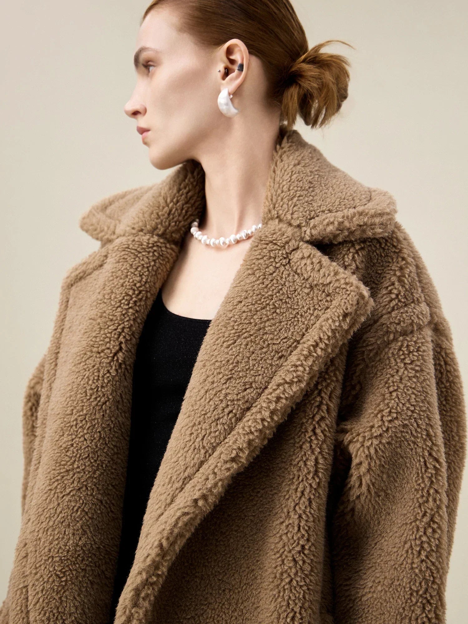 Yün Çentik Yaka Uzun Kollu Peluş Kaban
