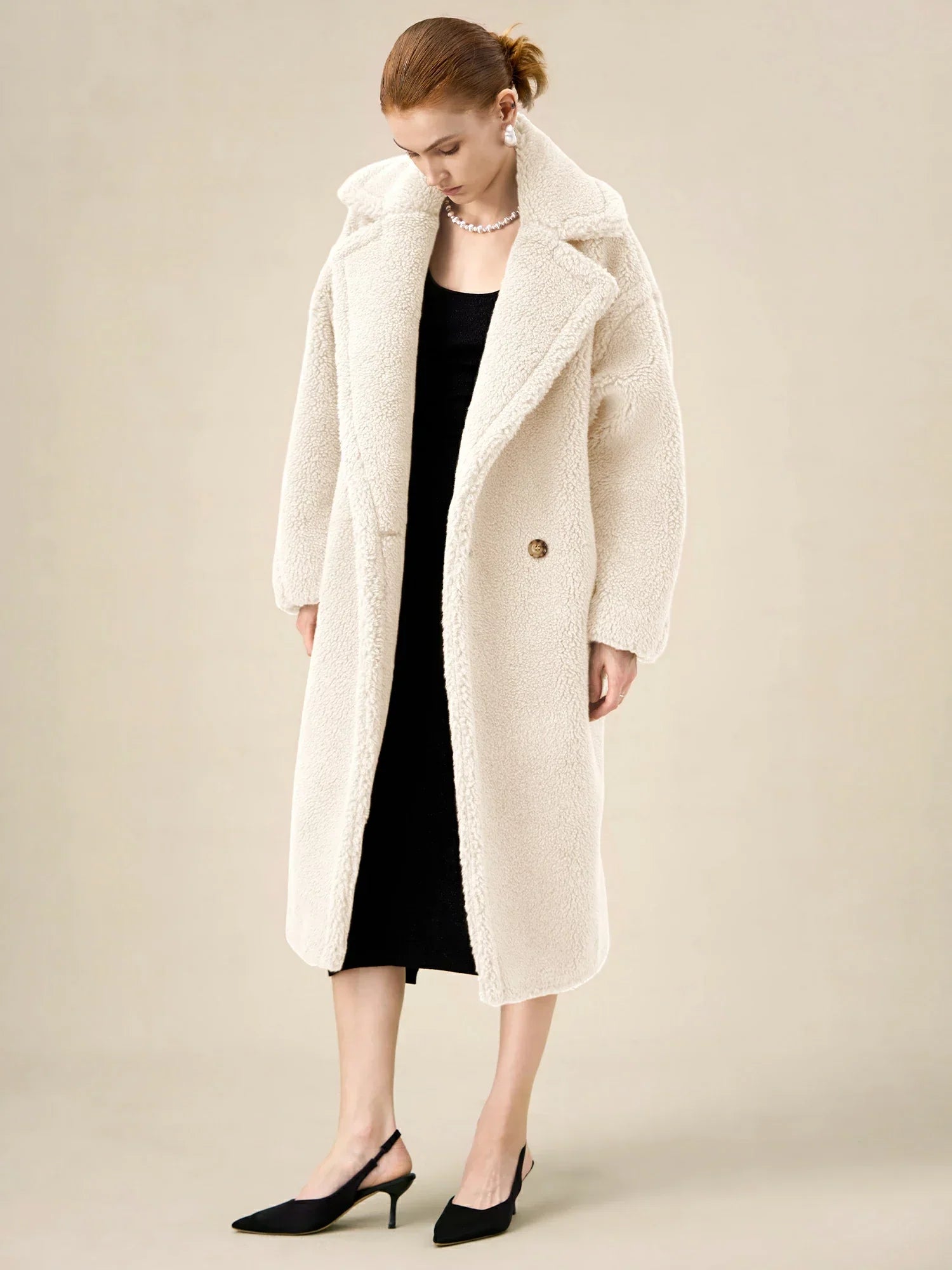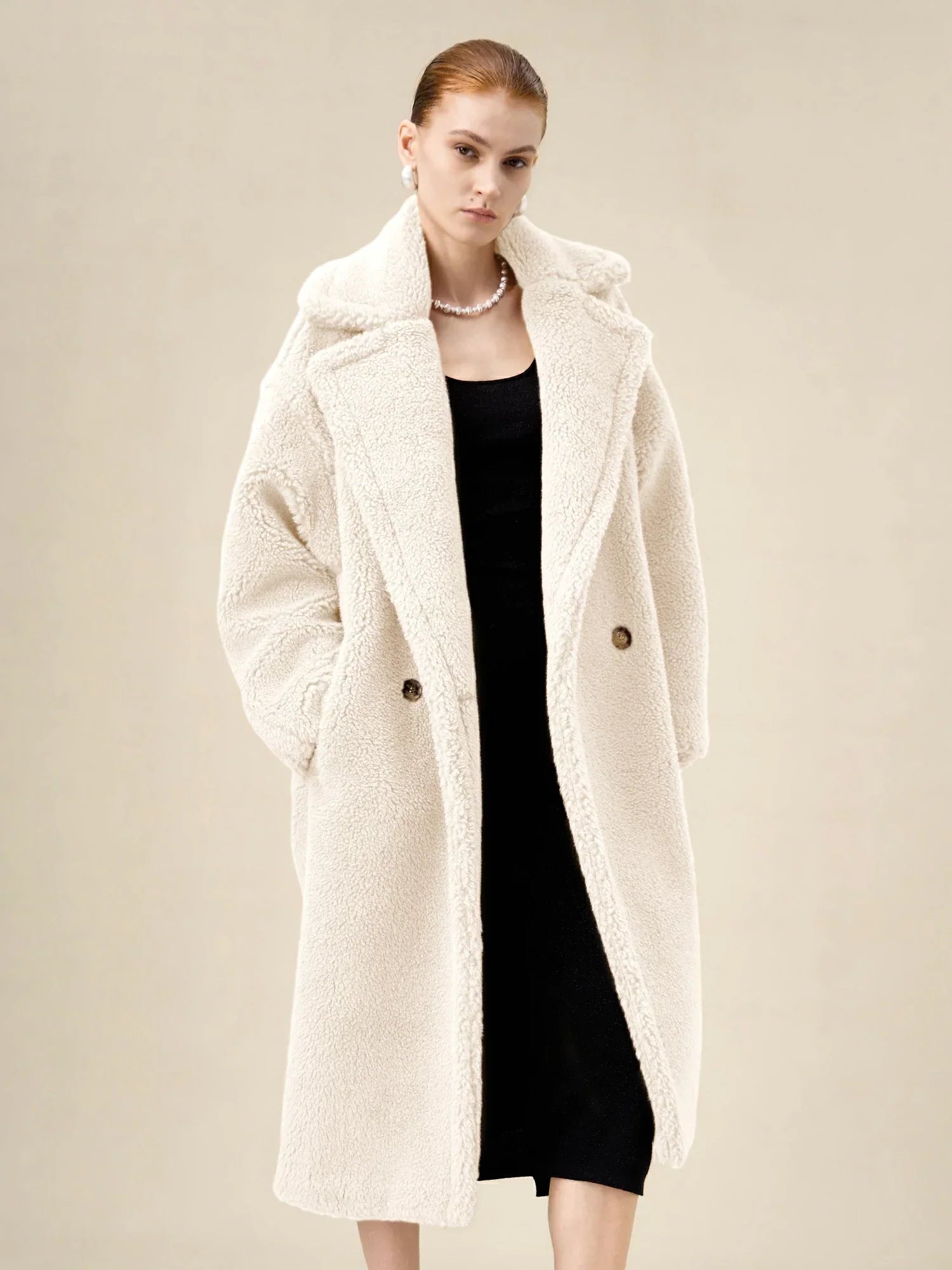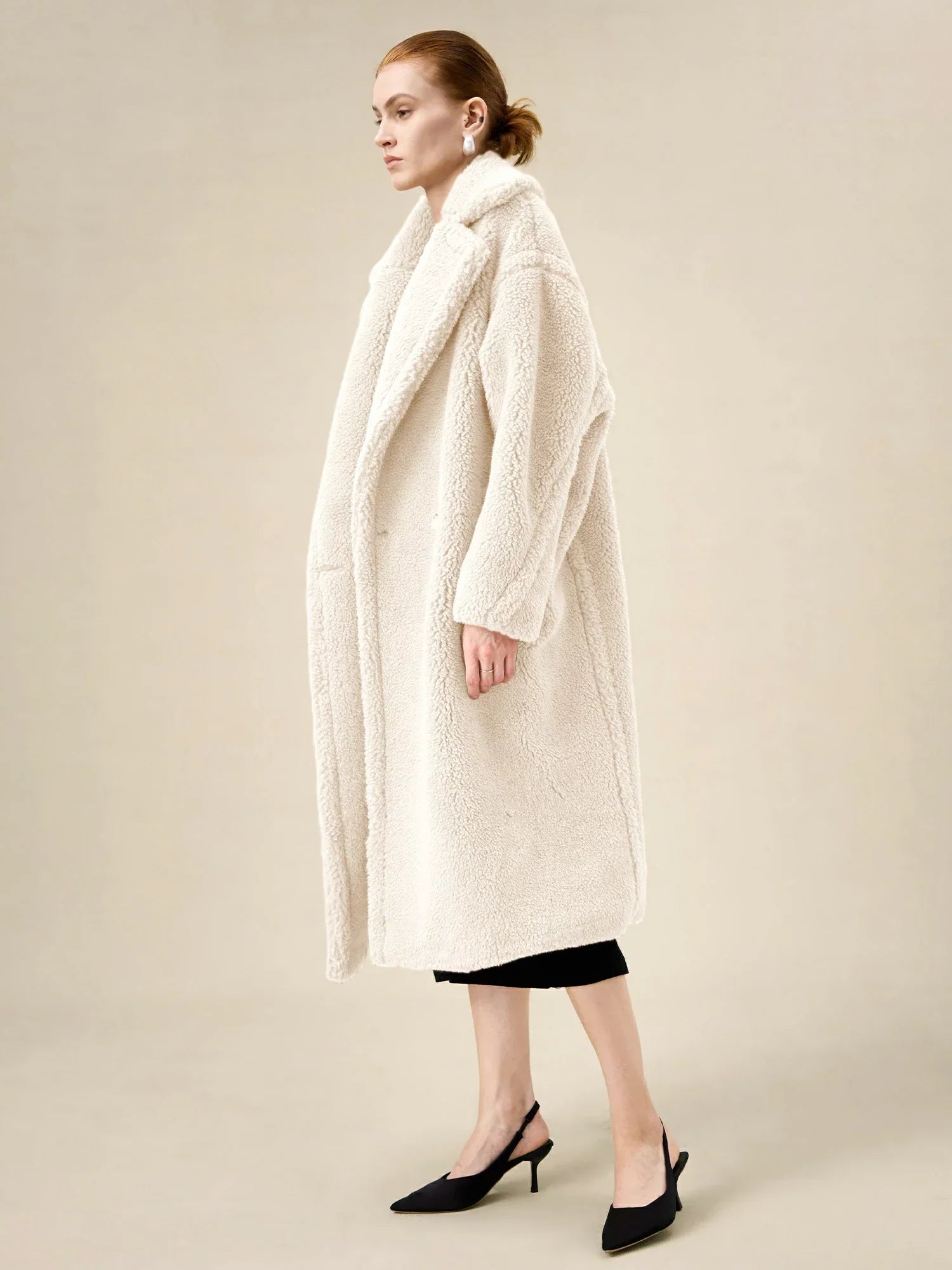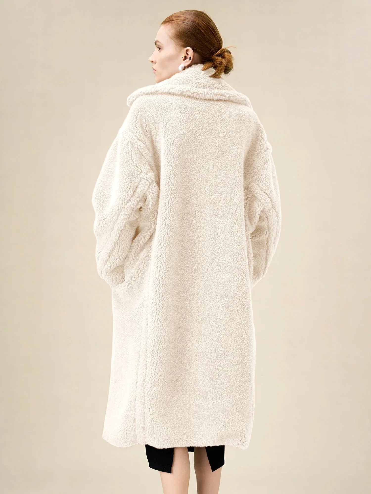 Yün Çentik Yaka Uzun Kollu Peluş Kaban