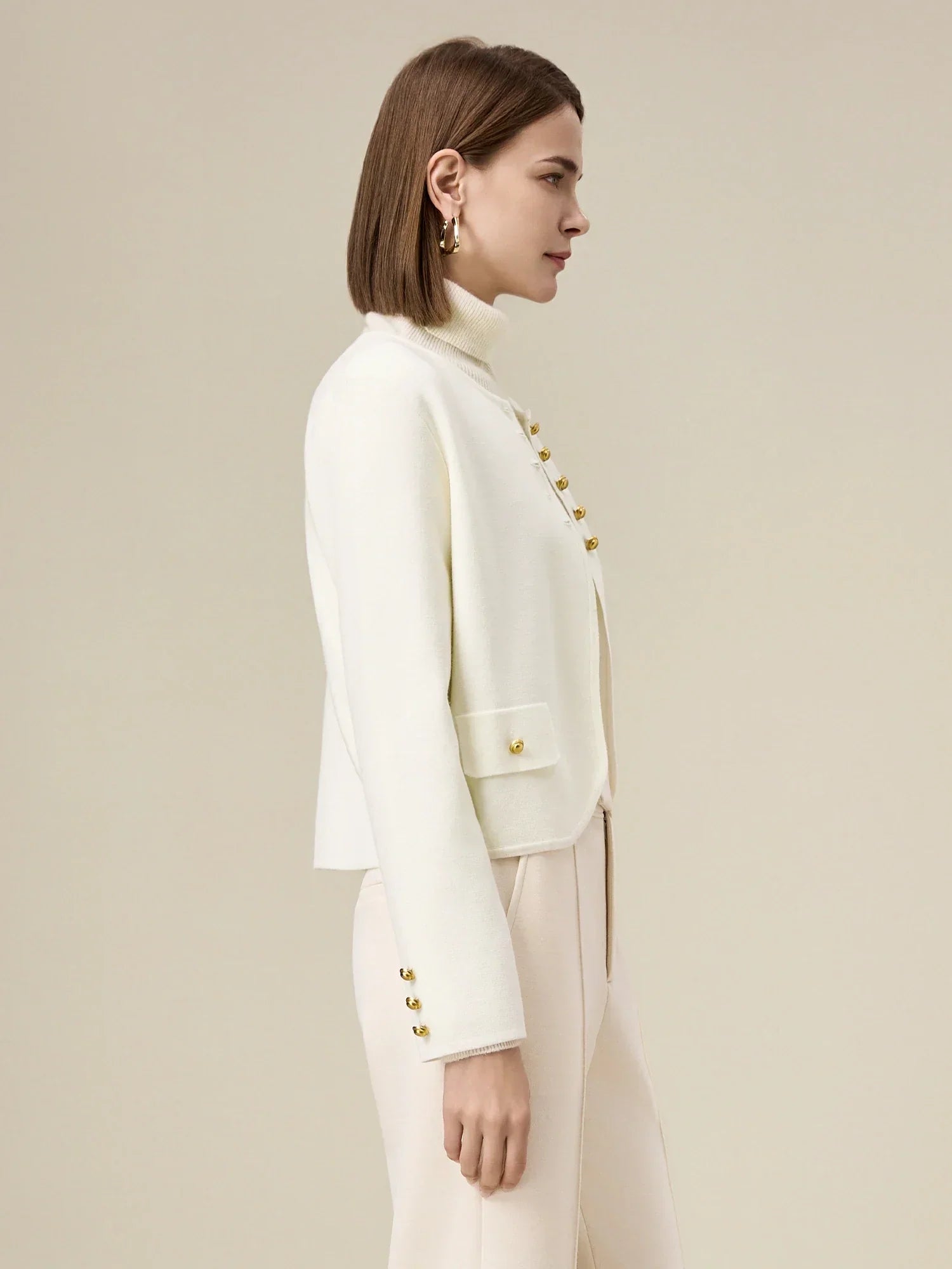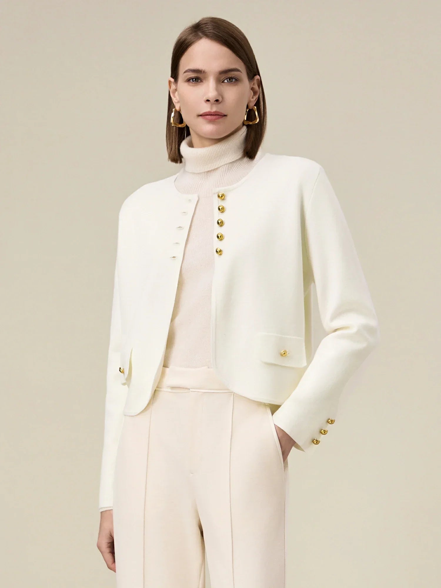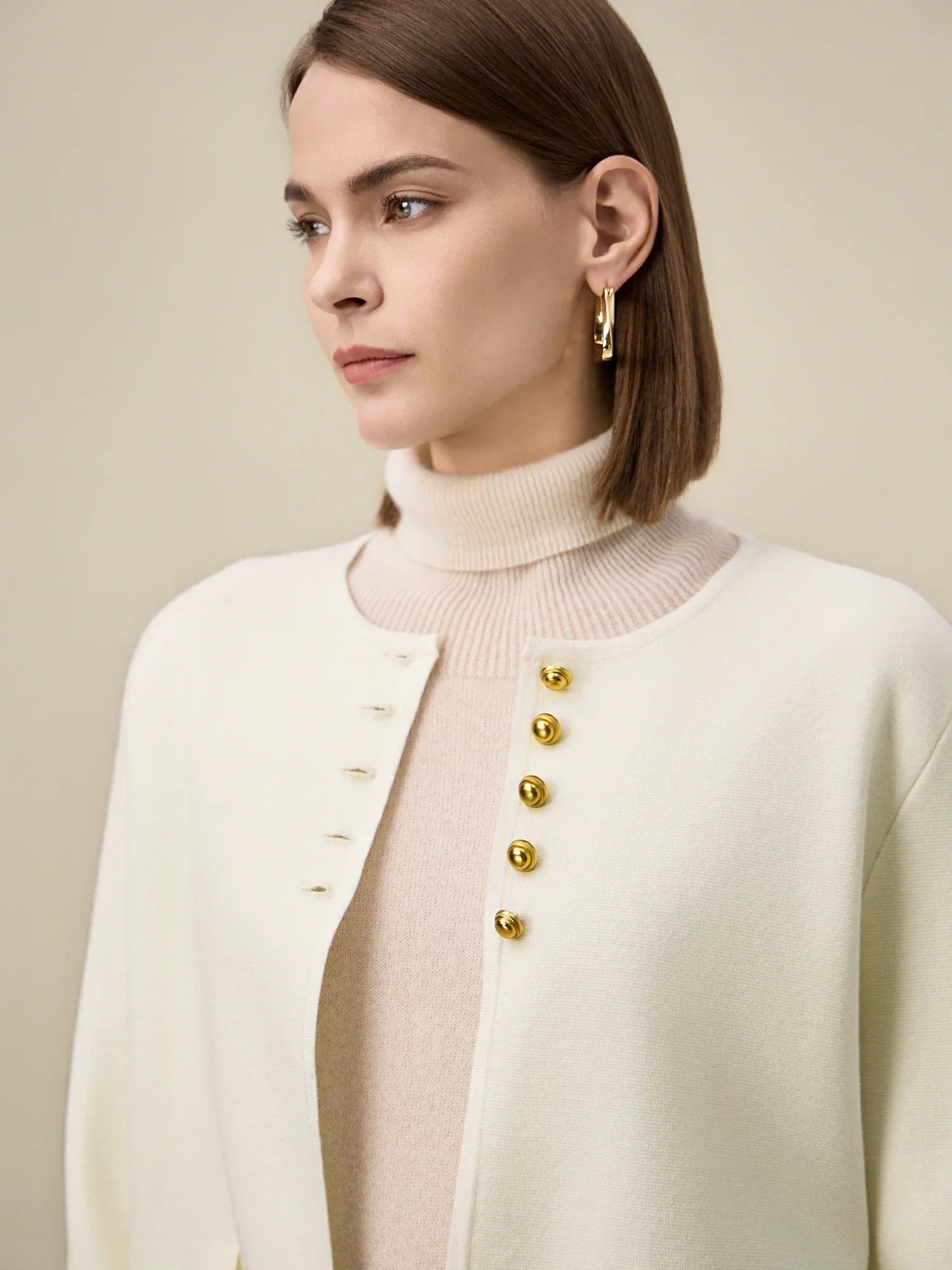 Kadın Yün Yuvarlak Yaka Uzun Kollu Ceket