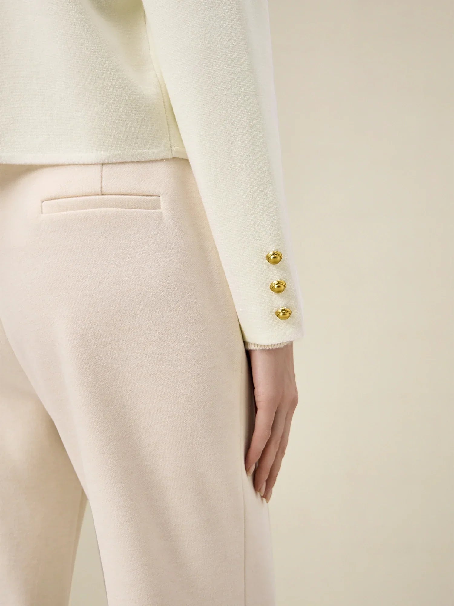Tasarım: Yuvarlak yaka tasarımı, ince yaka çizgisi, çıtçıt üzerindeki 5 düğme özgün ve dikkat çekici, mat metal düğmeler daha dokulu ve manşetlerde üç düğme süslemeli.