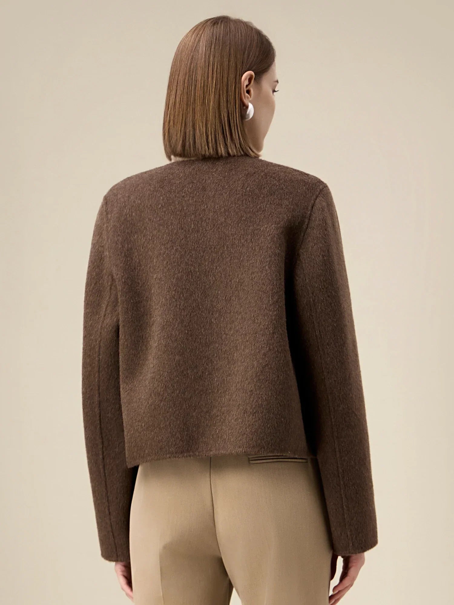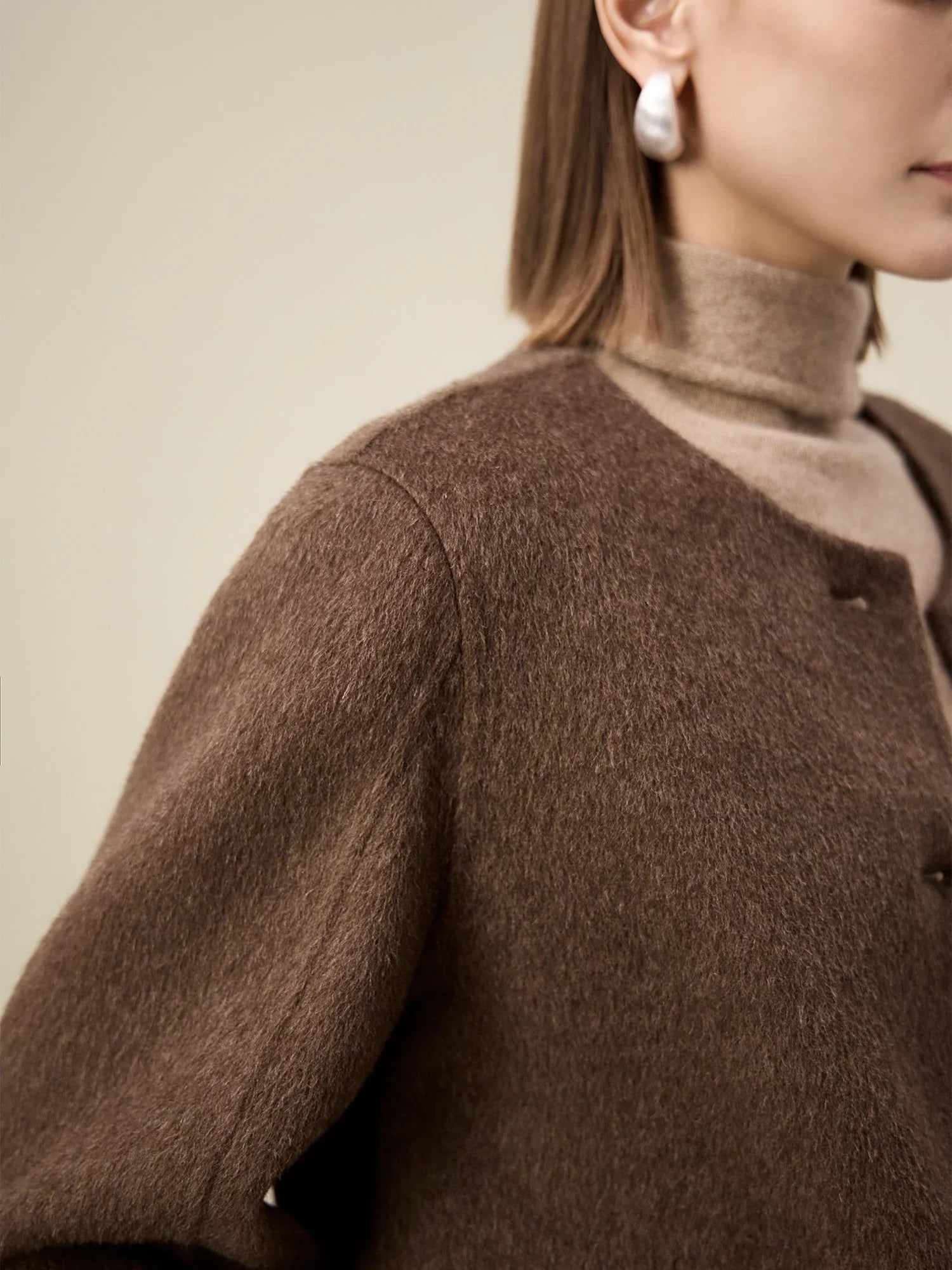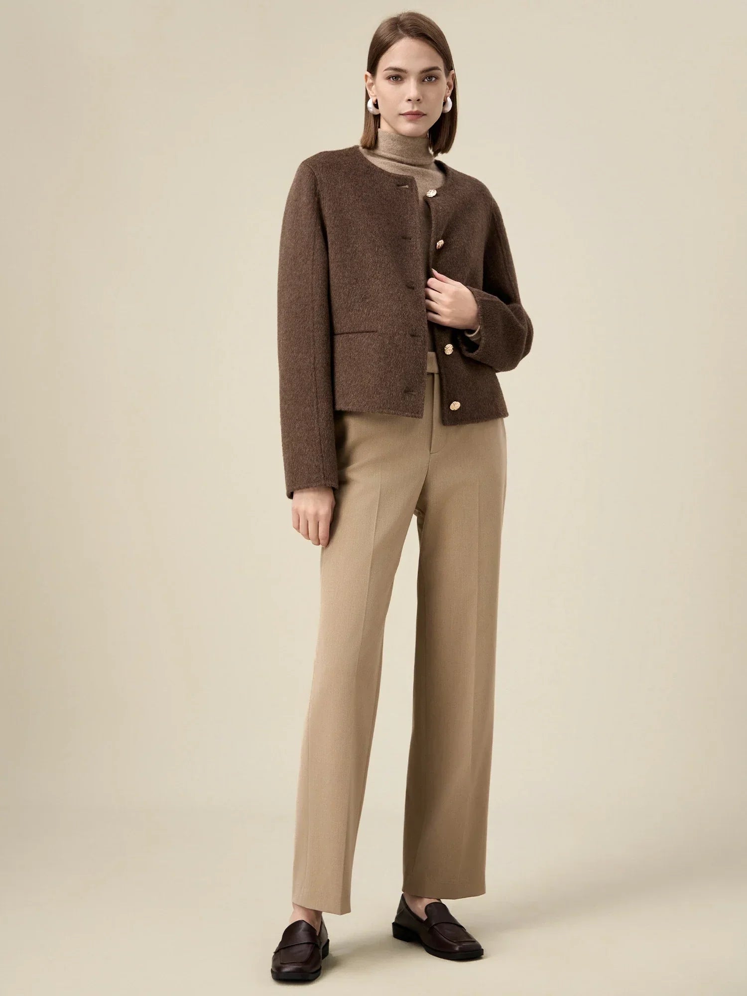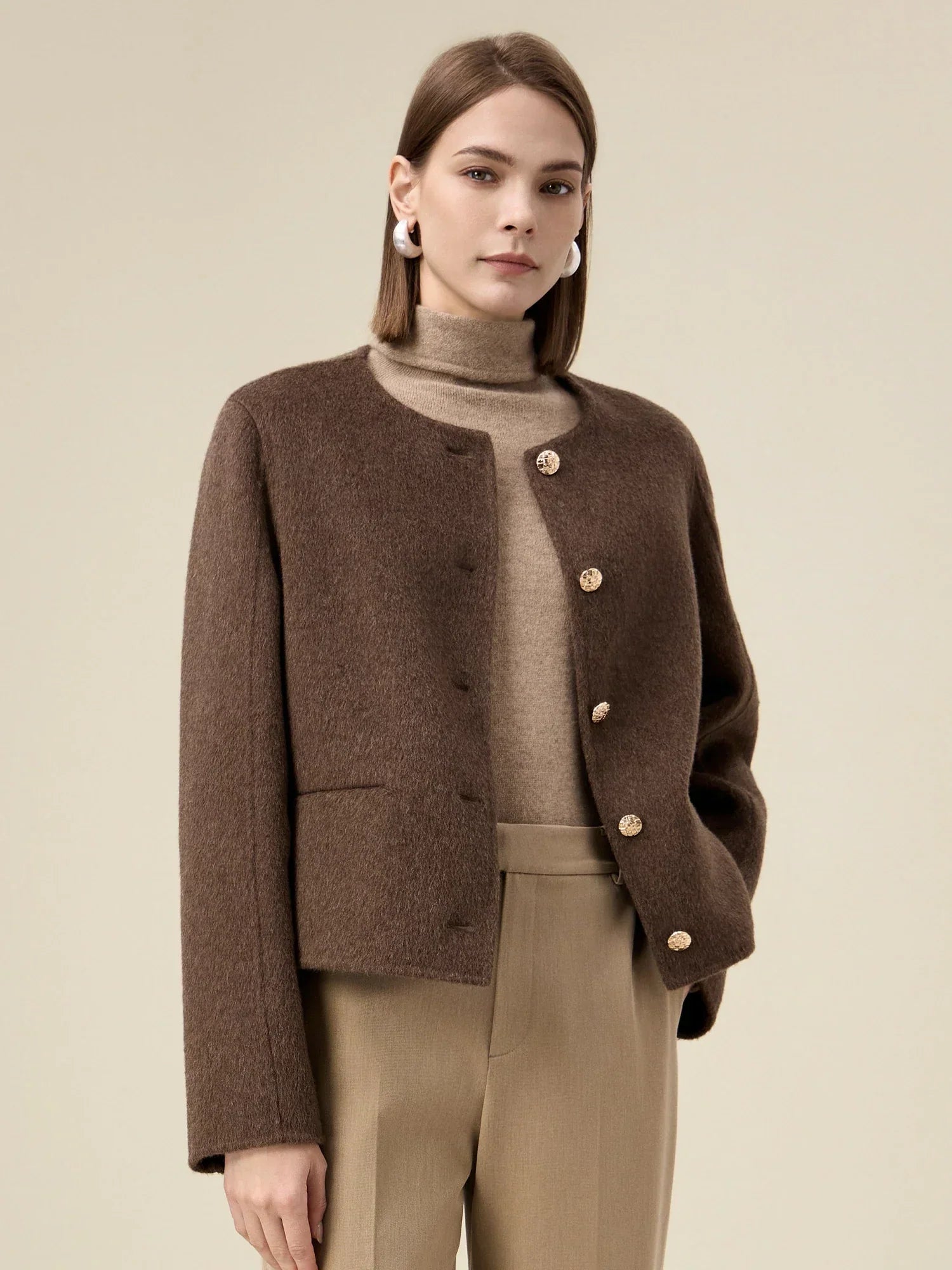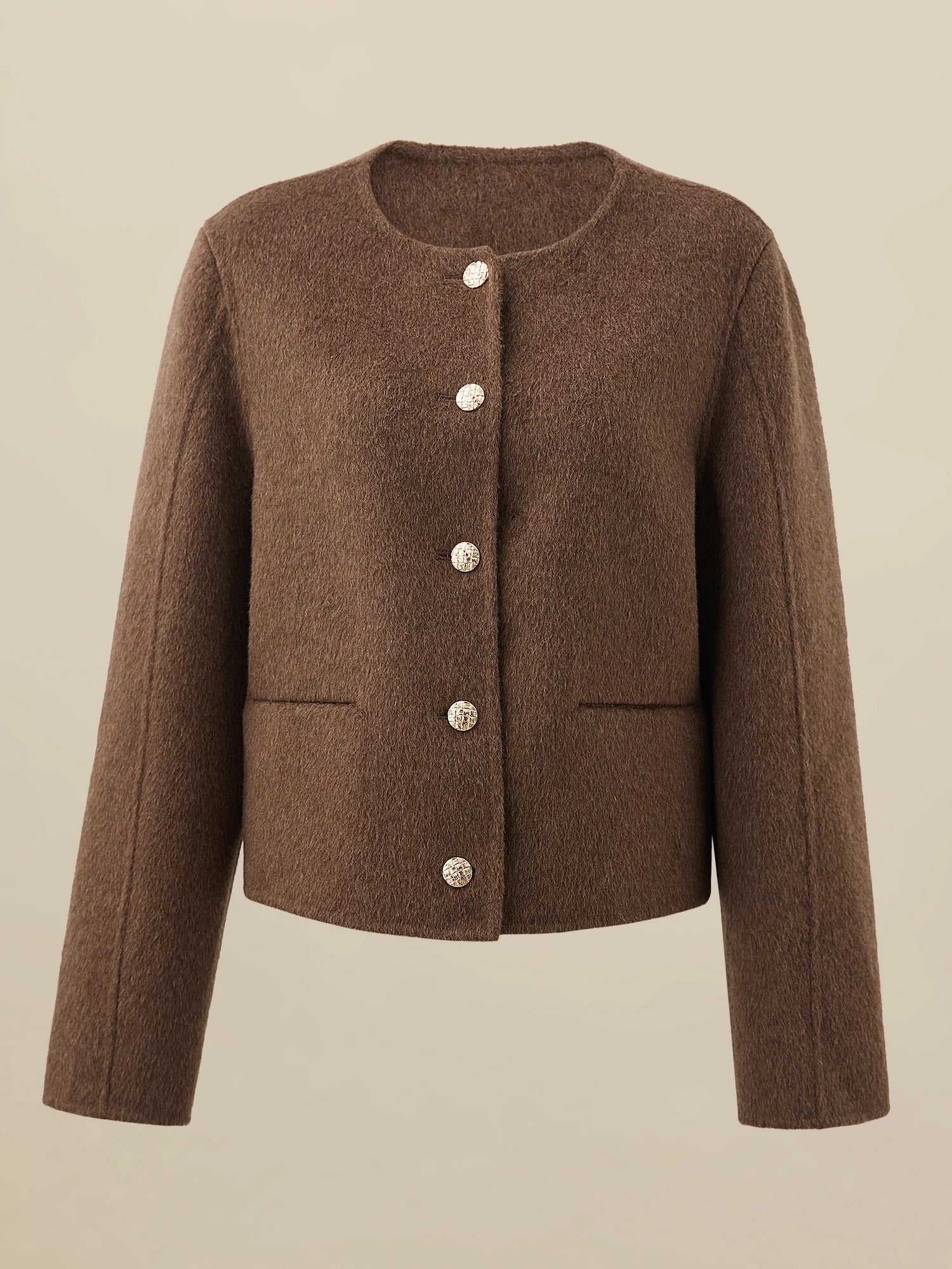 Kadın Yün Yuvarlak Yaka Metal Düğmeli Ceket