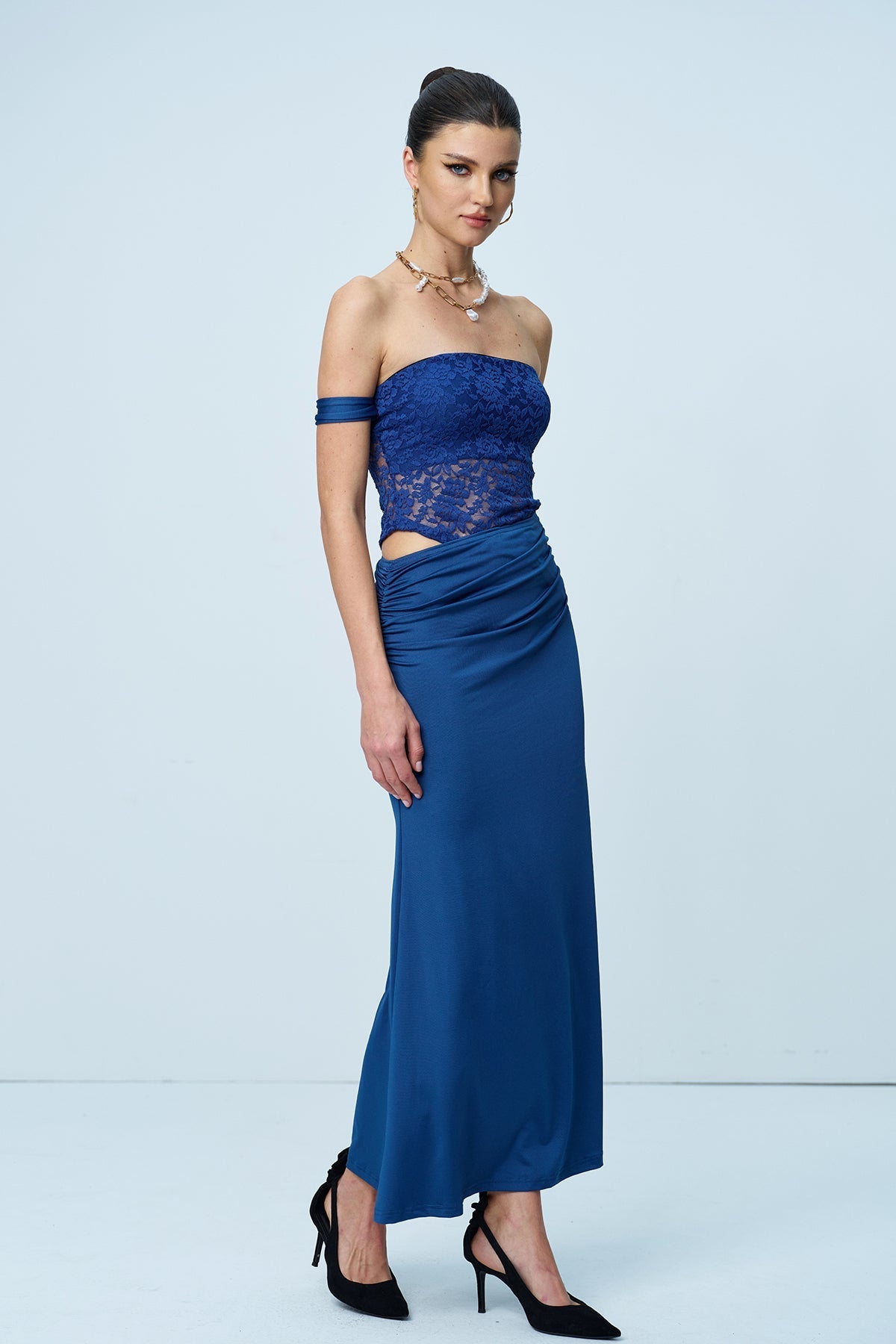 Aniol Straplez Dantel Ruch Maksi Elbise