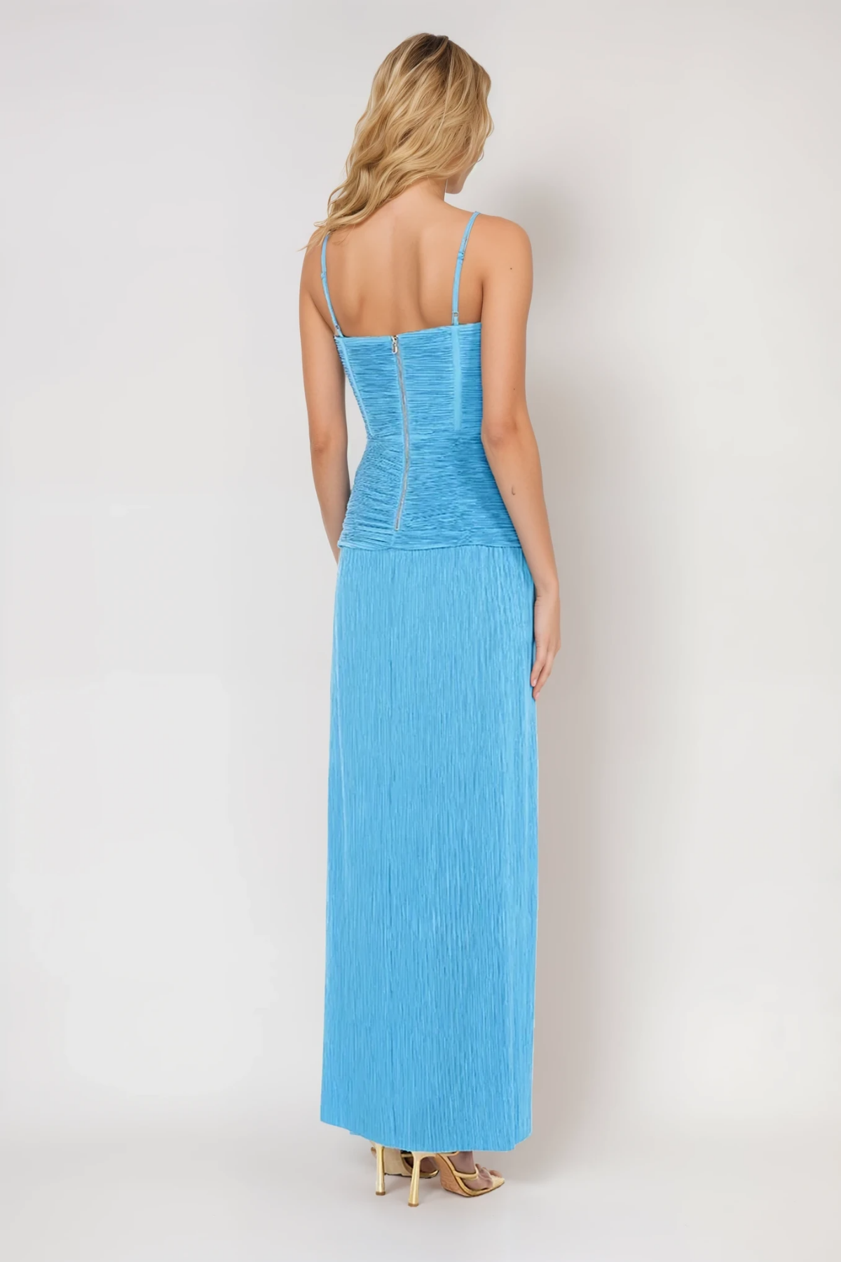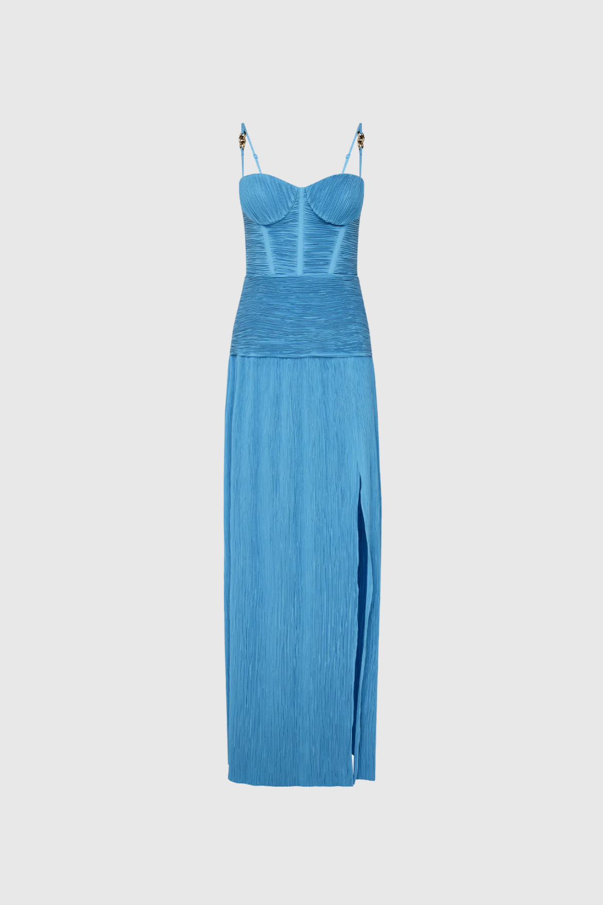 Anstey Ruch Bölmeli Spagetti Maksi Elbise Mavi