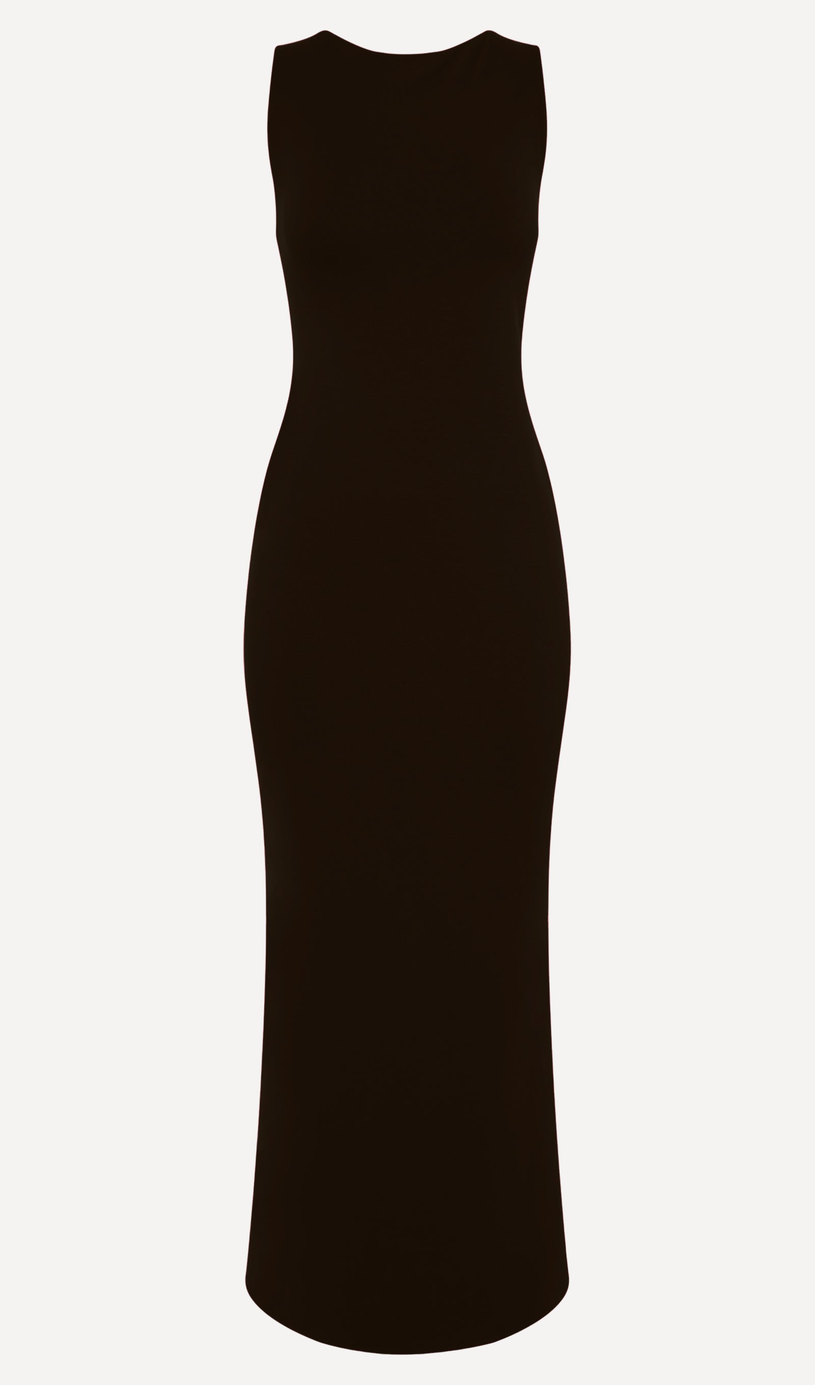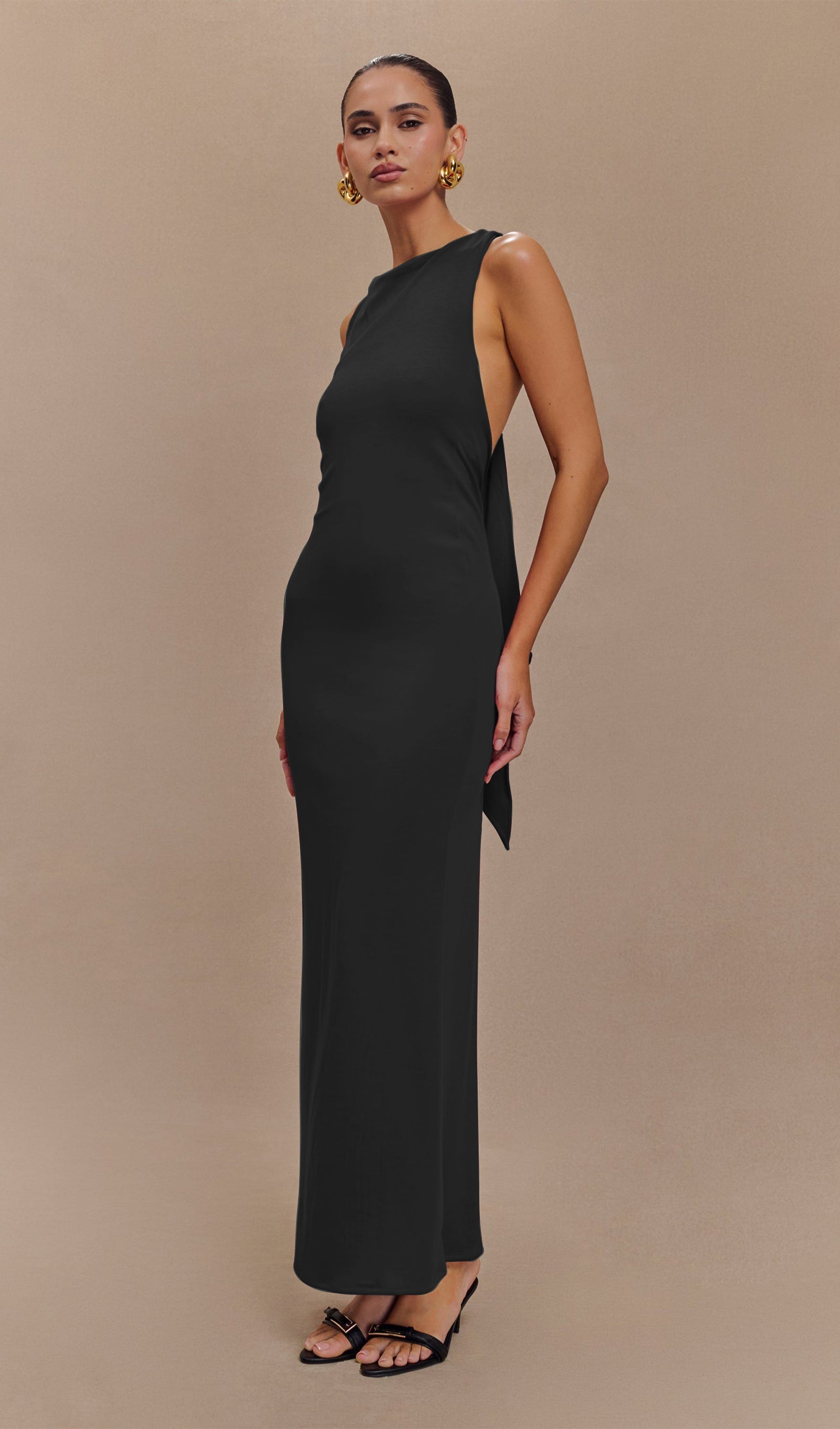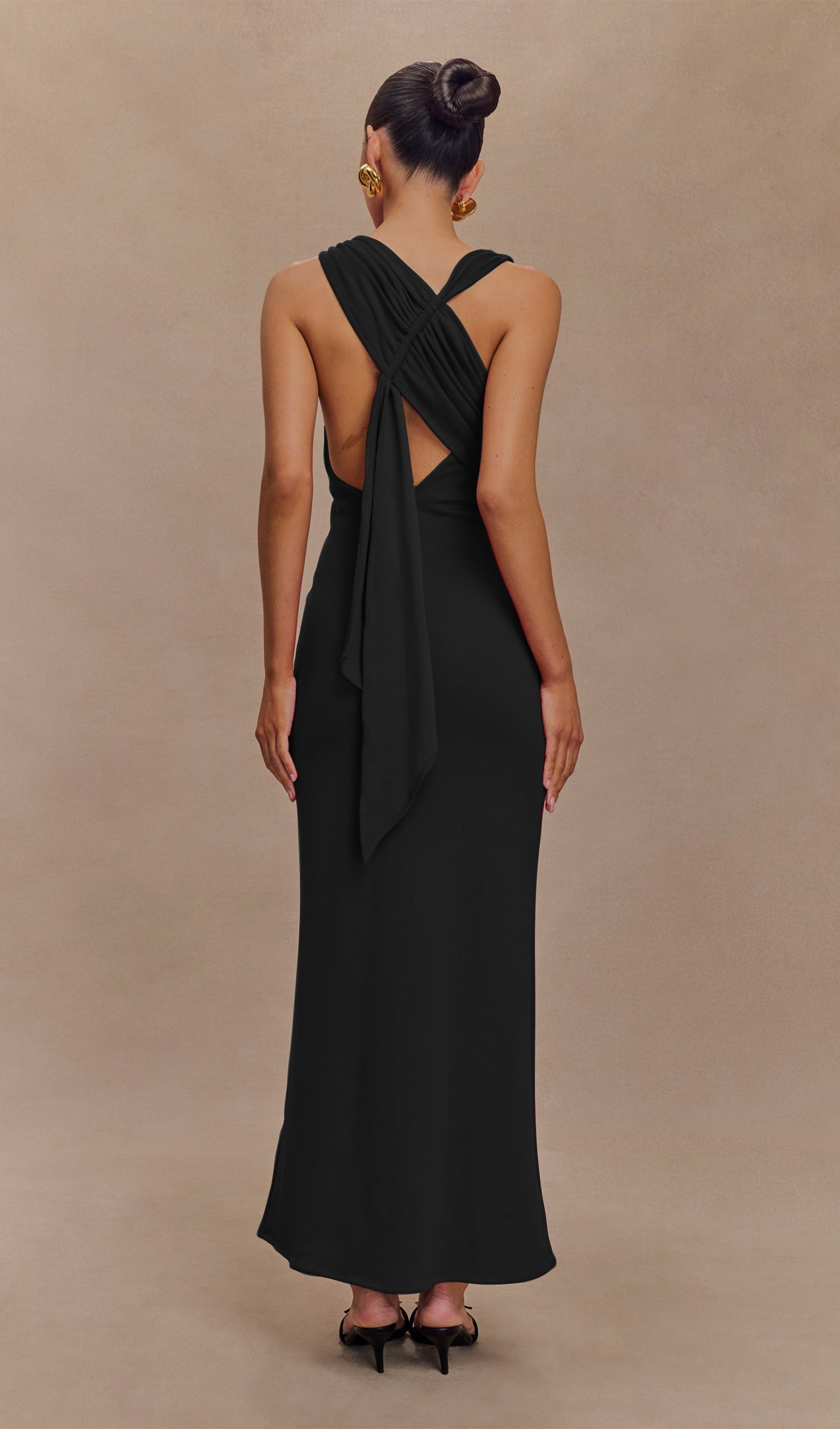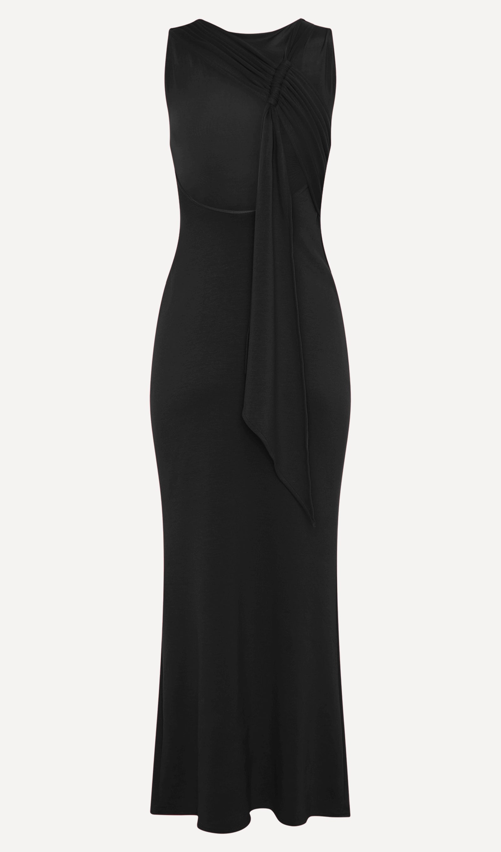 Asimetrik Scuba Jersey Maksi Elbise Siyah