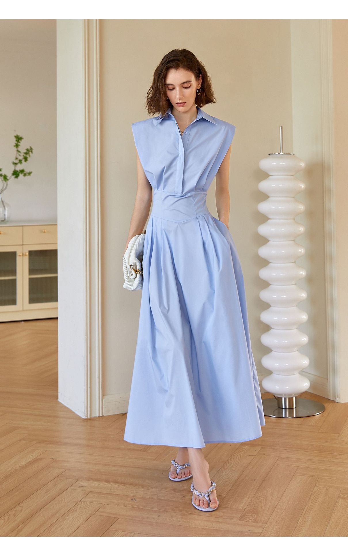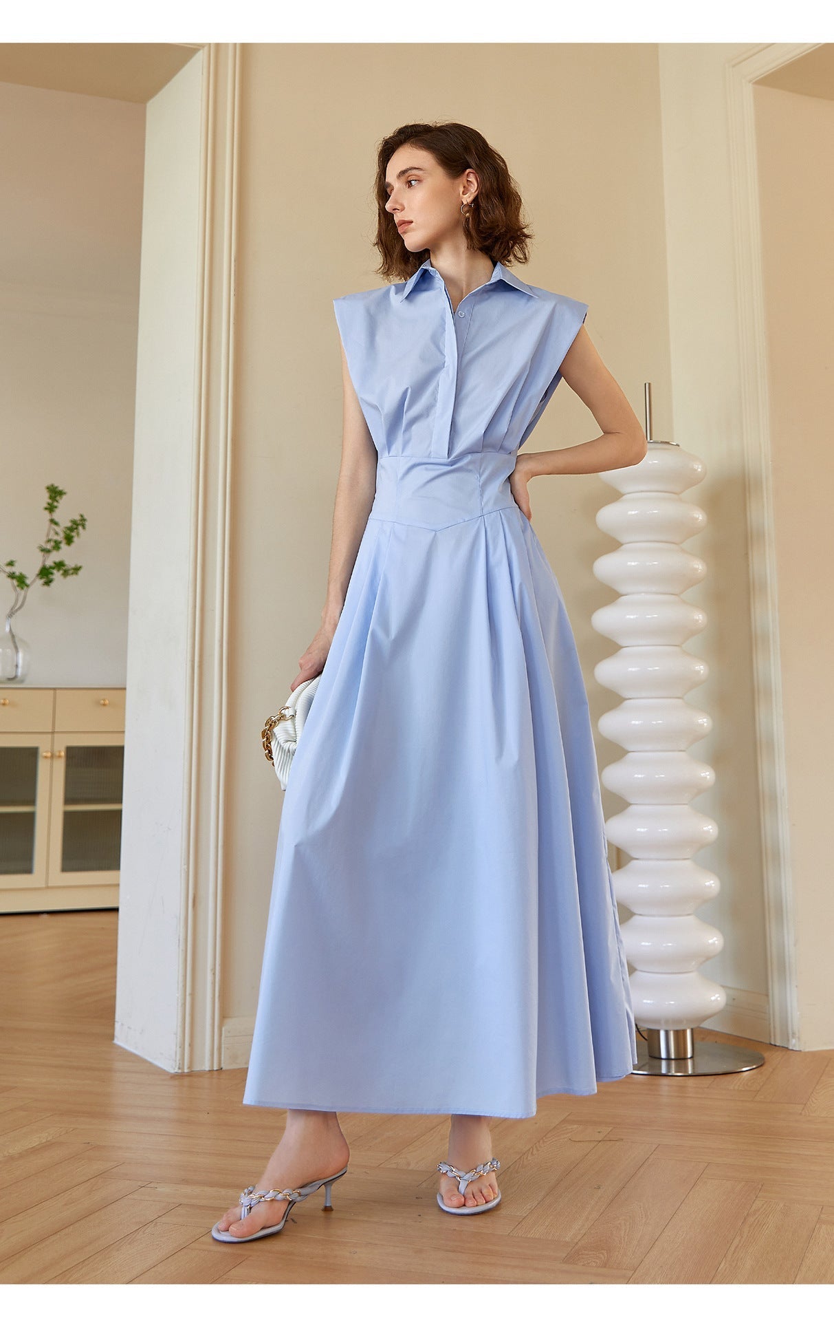Aurora Kolsuz Polo Yaka Pamuklu Maxi Elbise