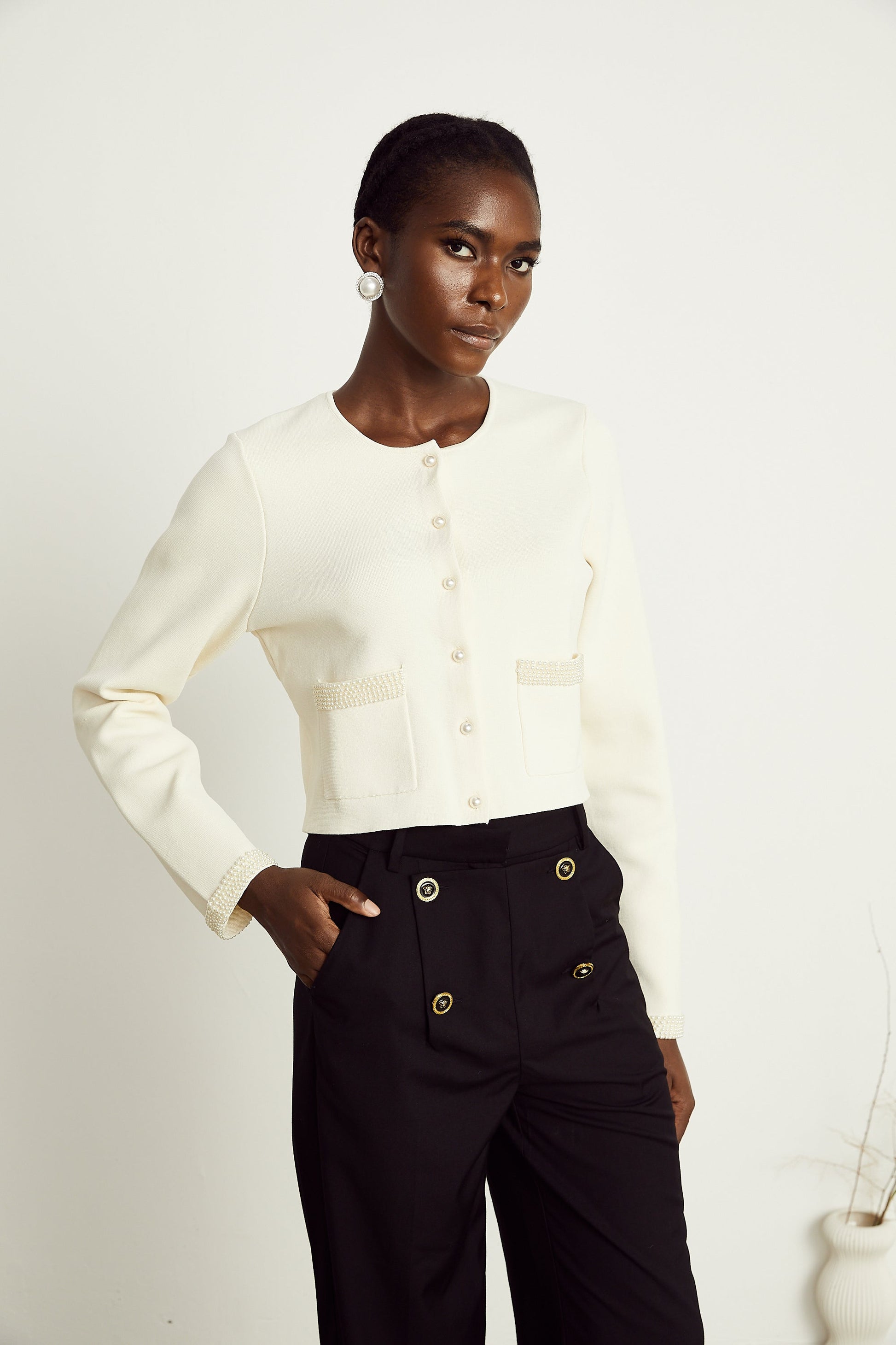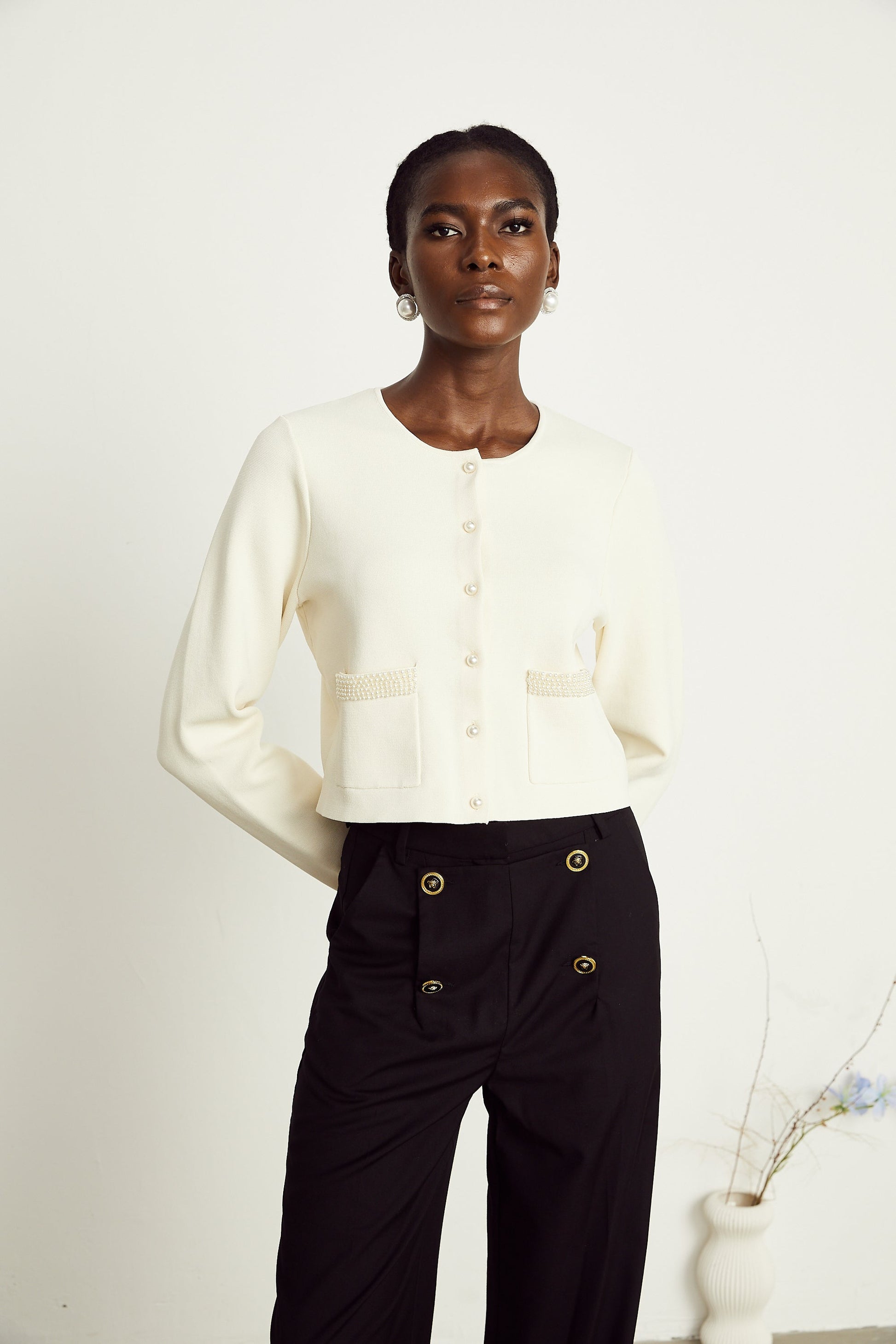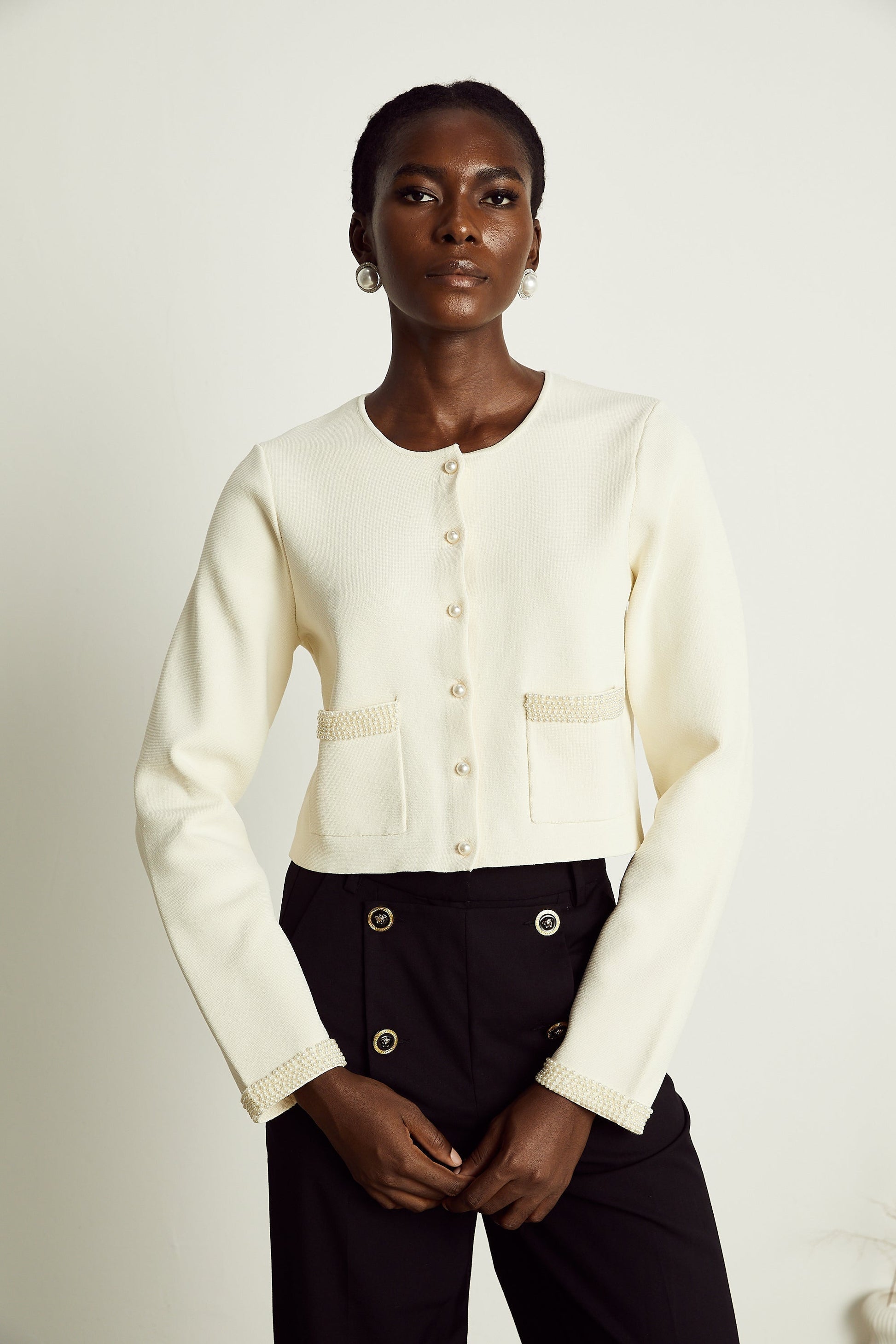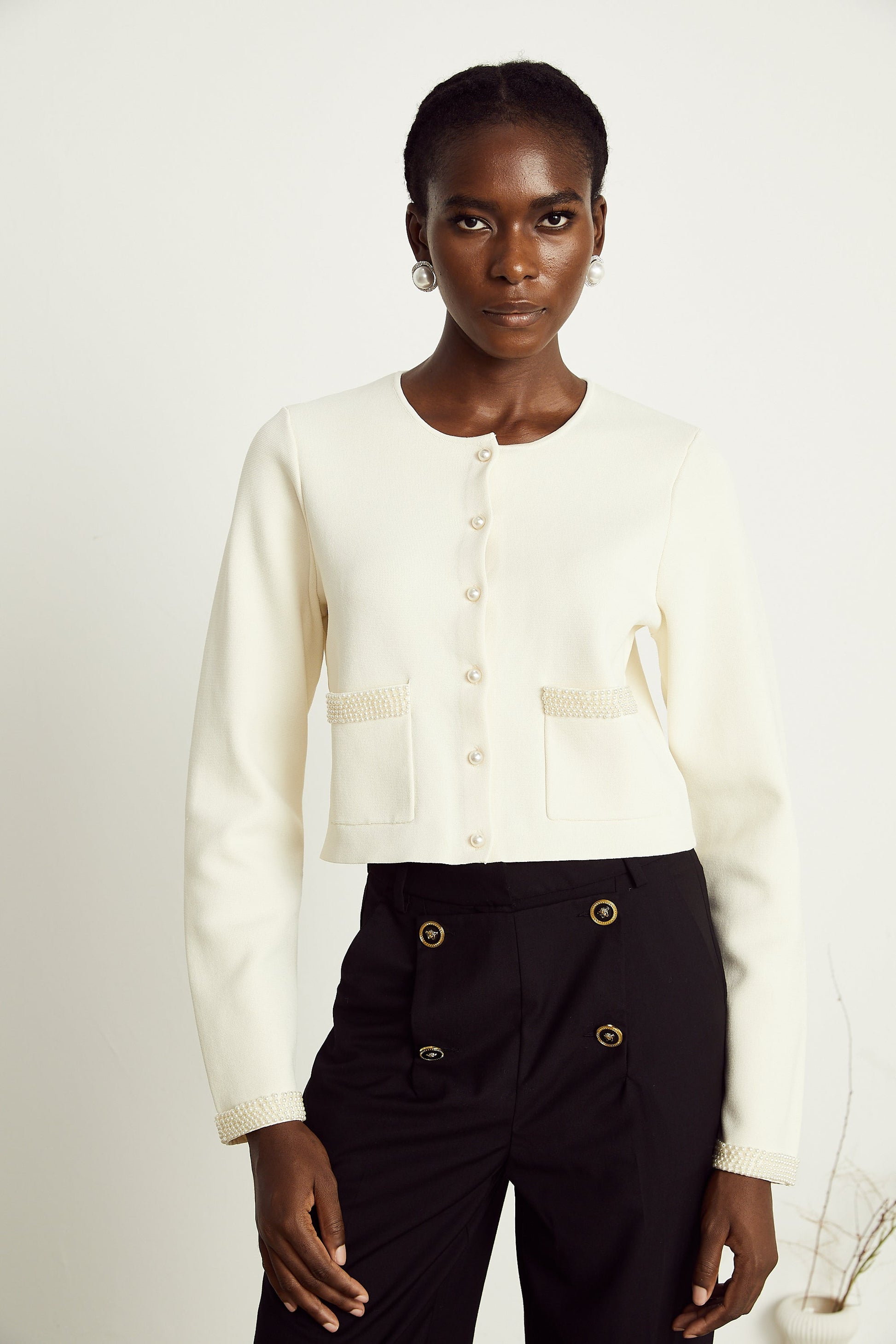 Aurora Bej Suni İnci Hırka Üst