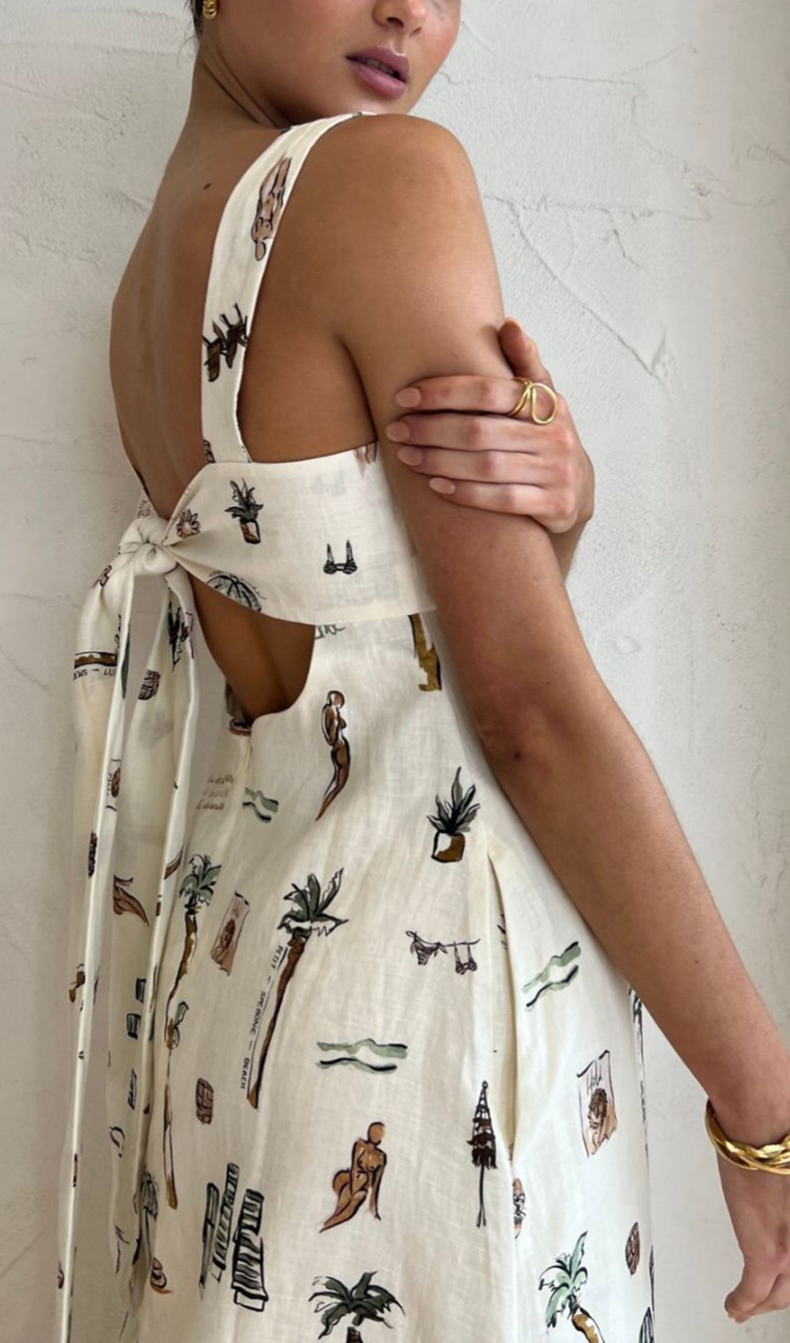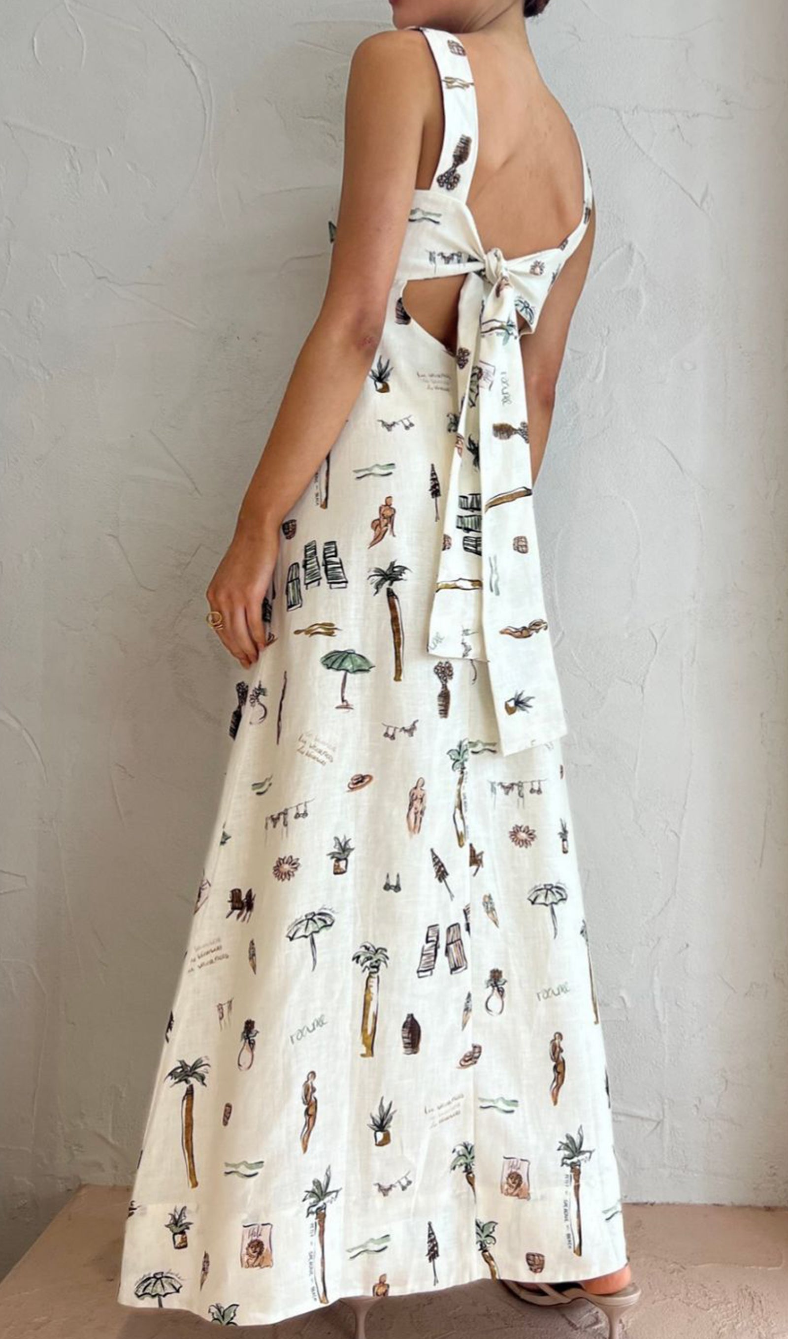 Sırtı Dantelli Karikatür Maksi Slip Elbise