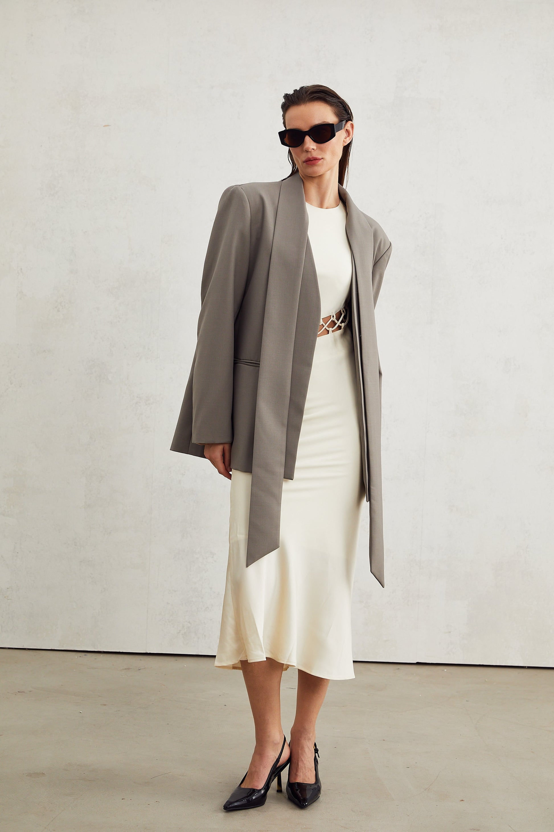 Béatrice Gri Yakasız V Yaka Blazer Ceket