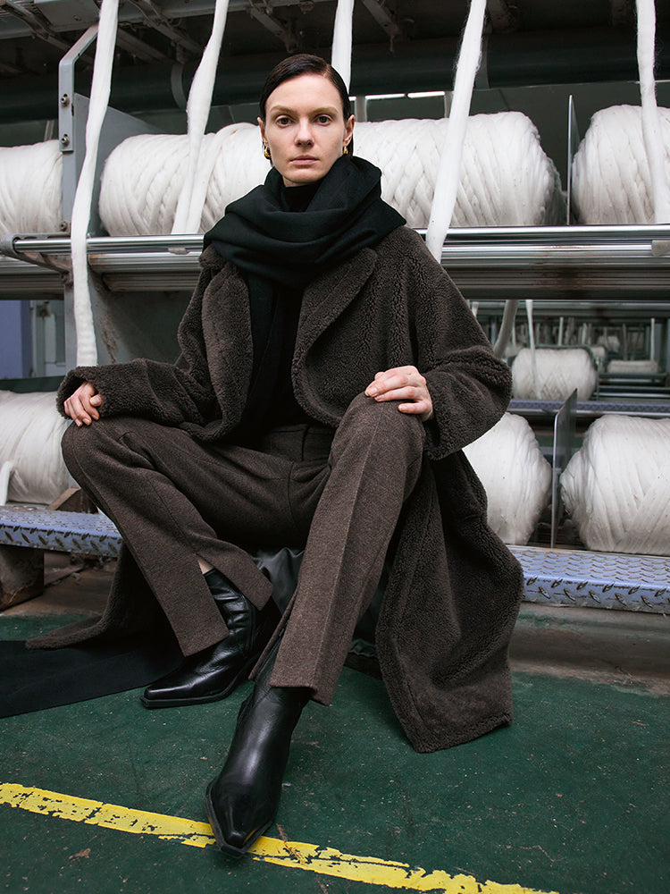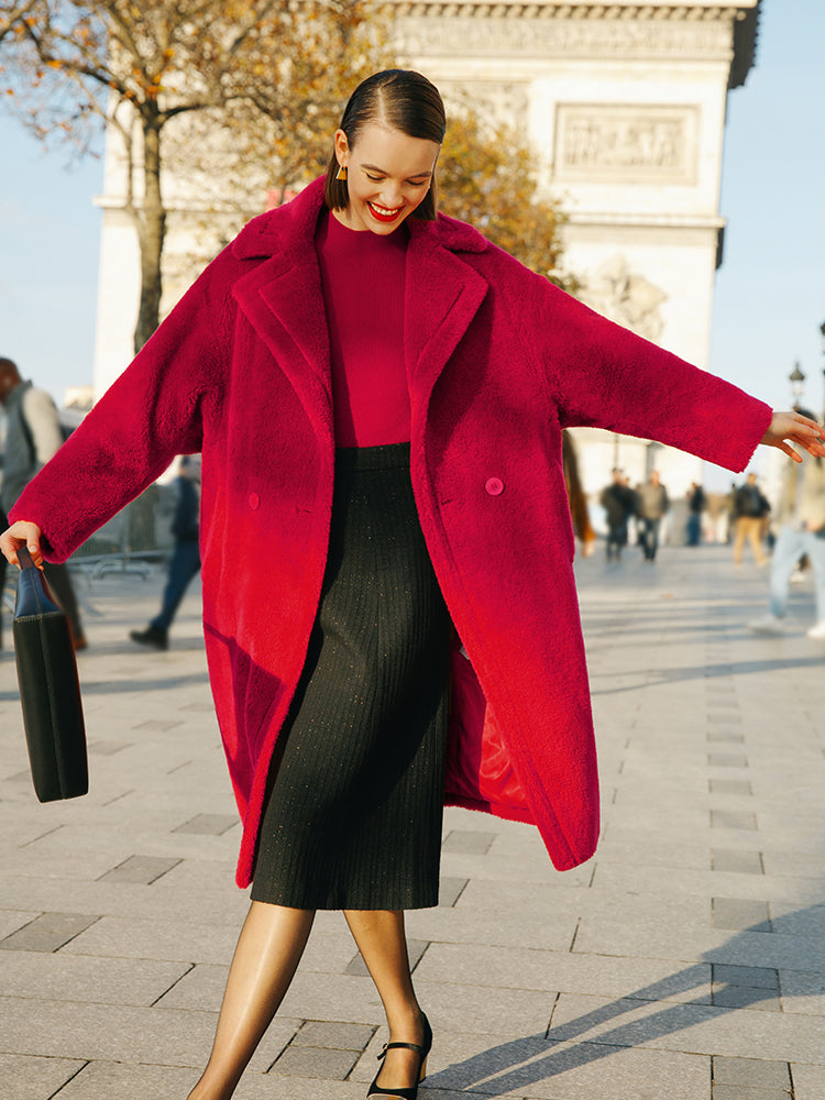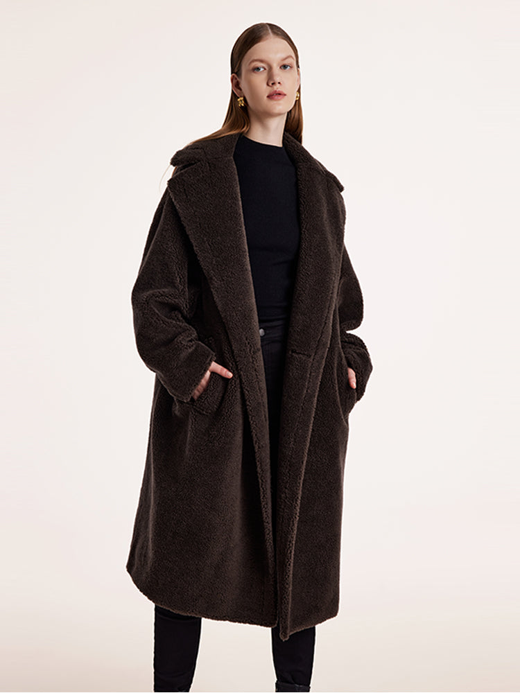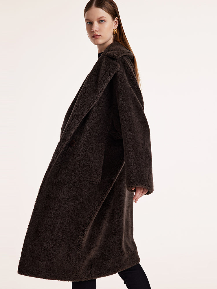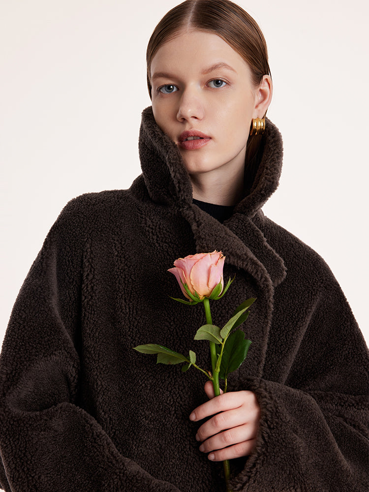 Teddy Kuzu Yünü Yaka Oversized Kaban