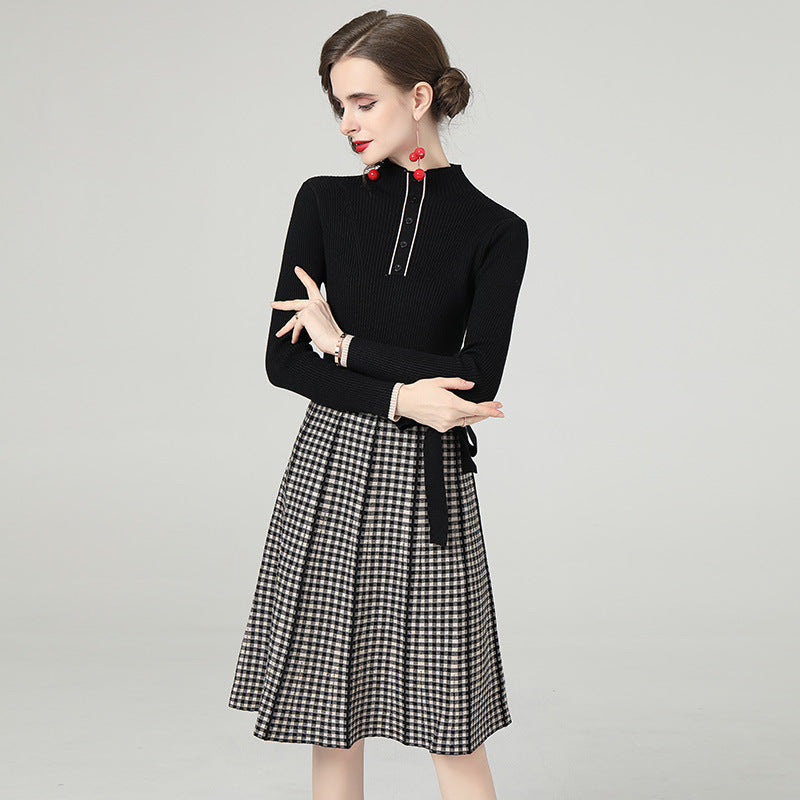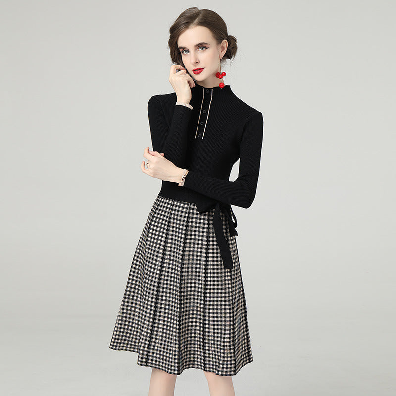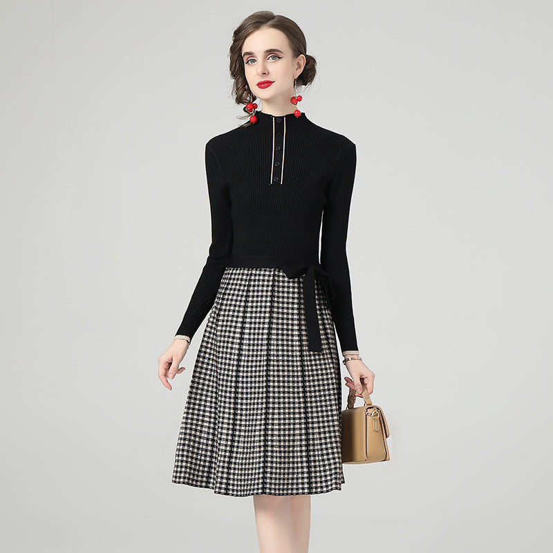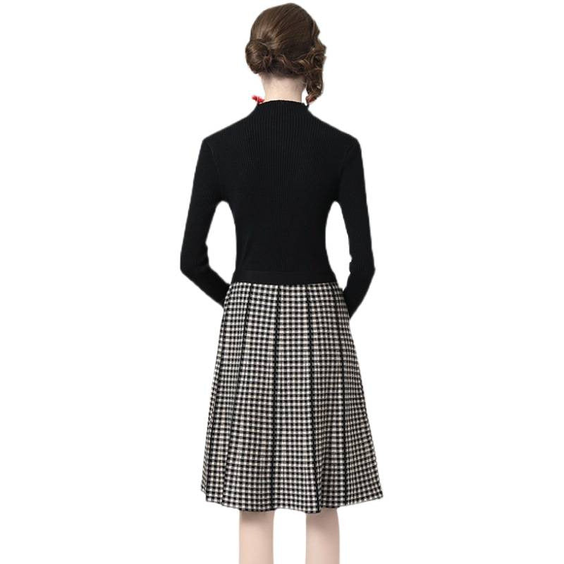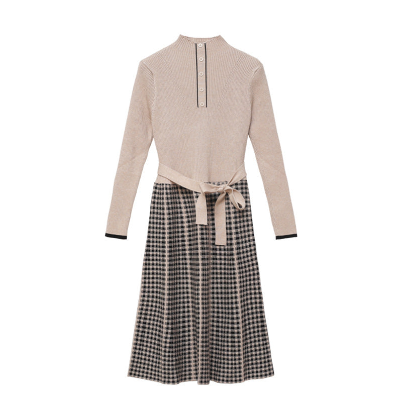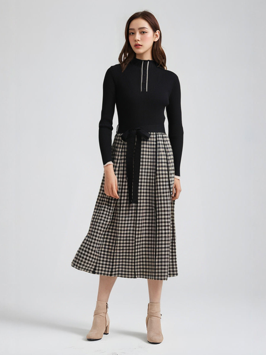 Kemerli Triko Kazak Ekose Etek Midi Elbise