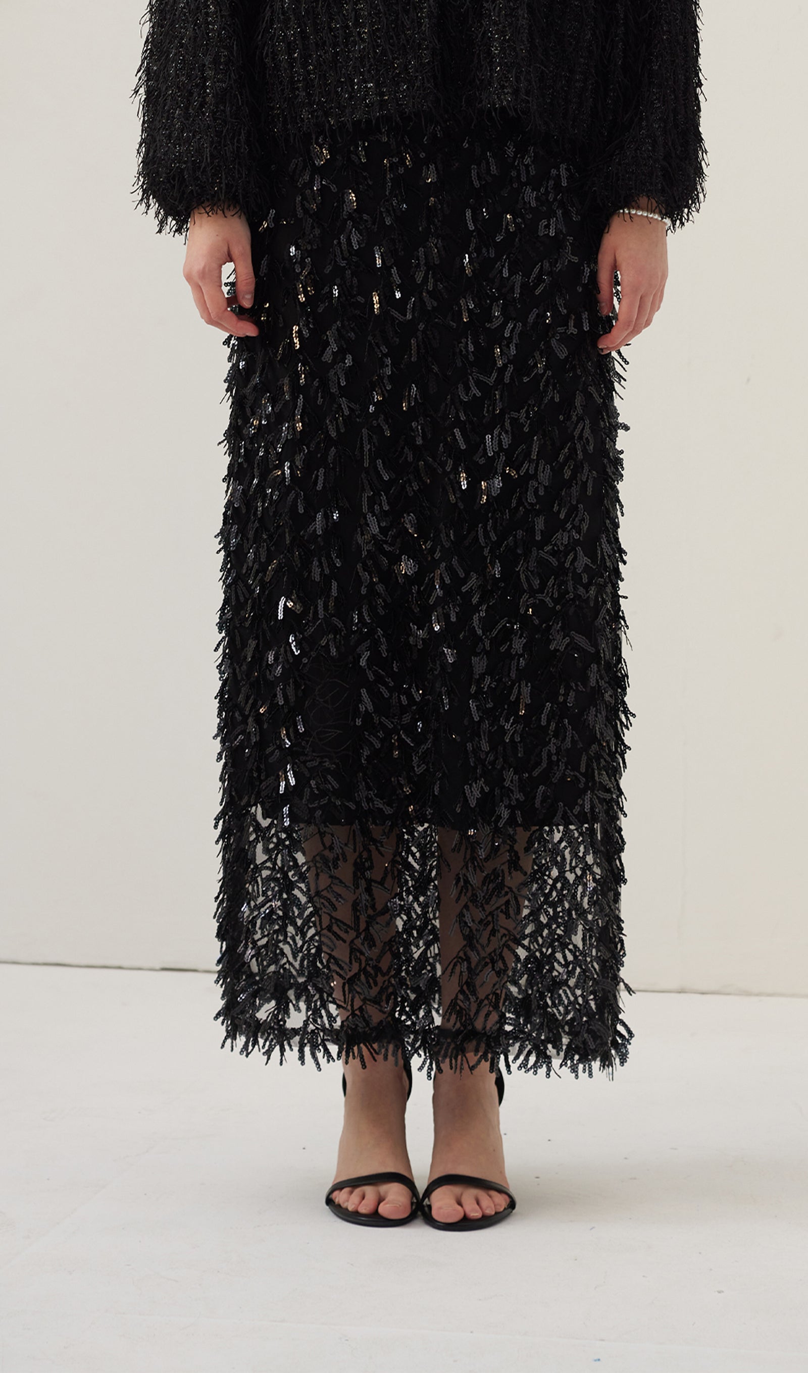 Siyah Tüylü Midi Etek
