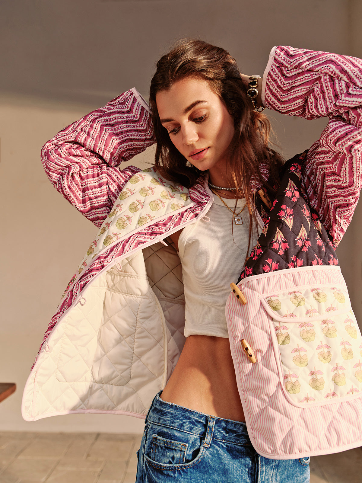 Bety Çiçek Desenli Kapitone Ceket