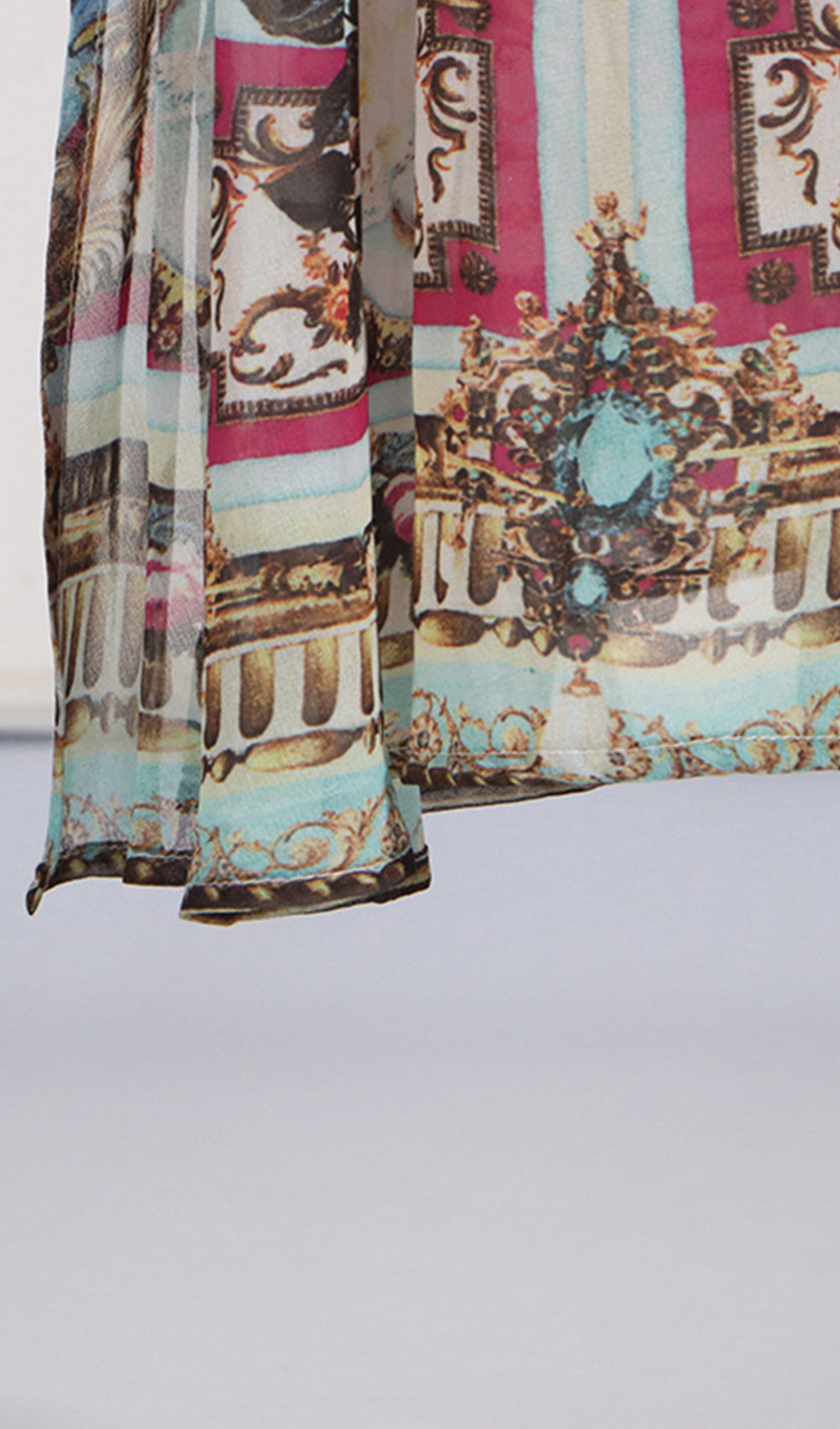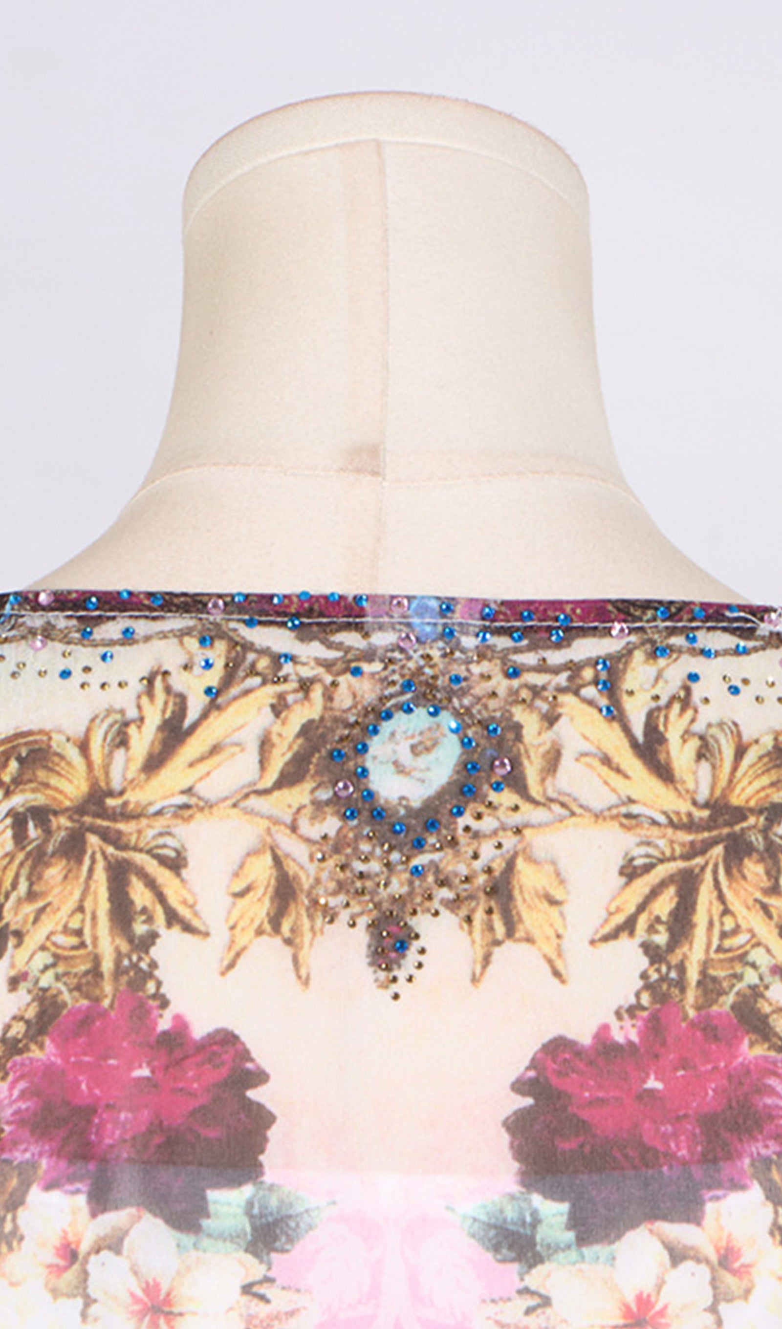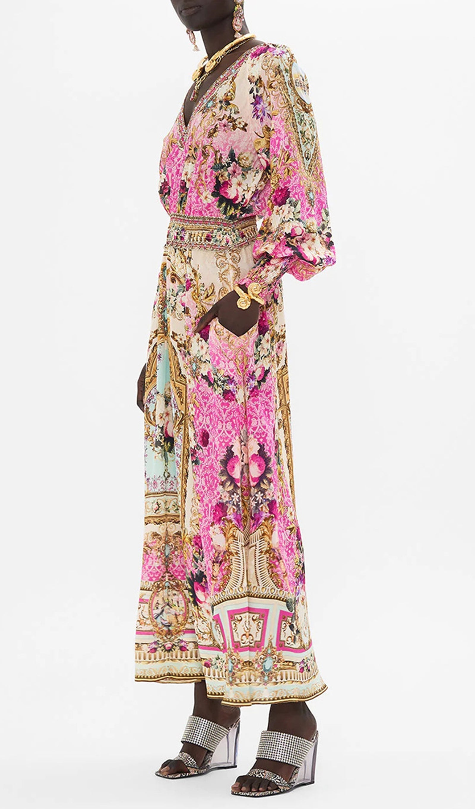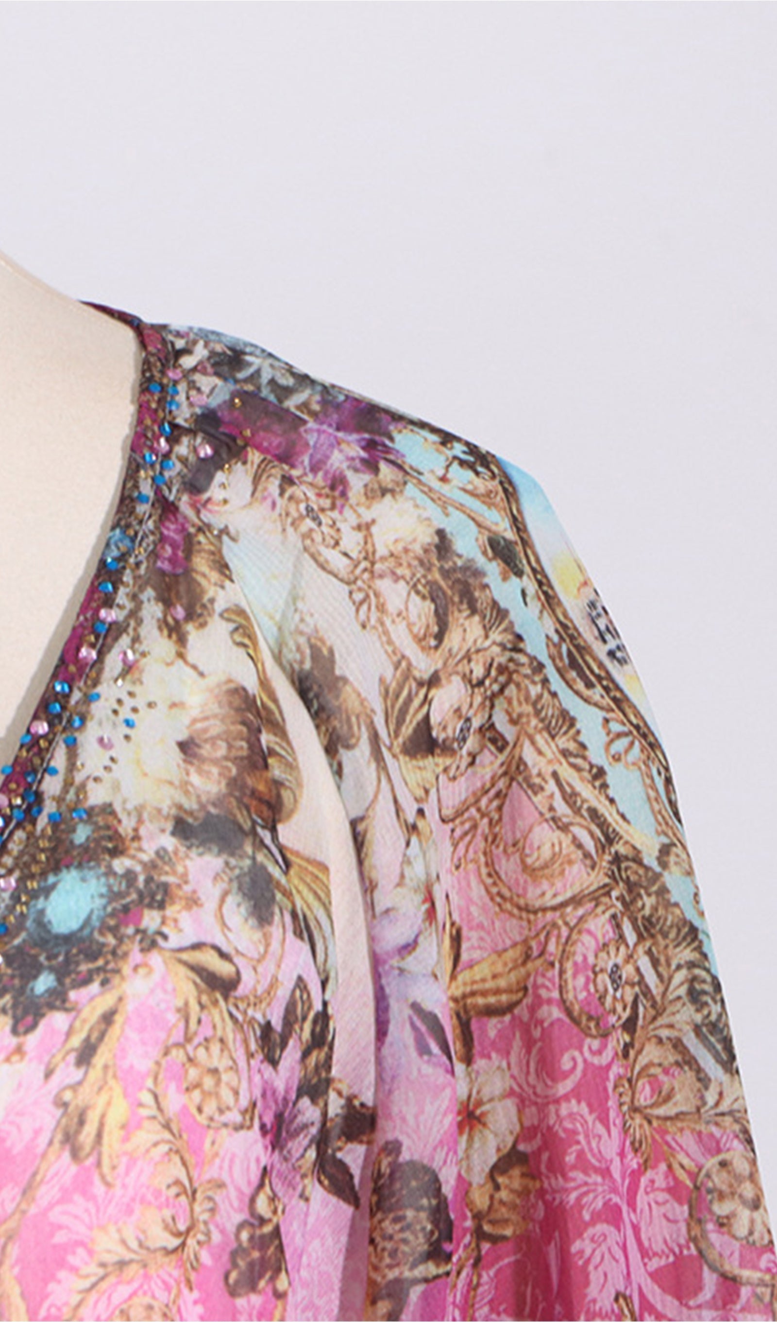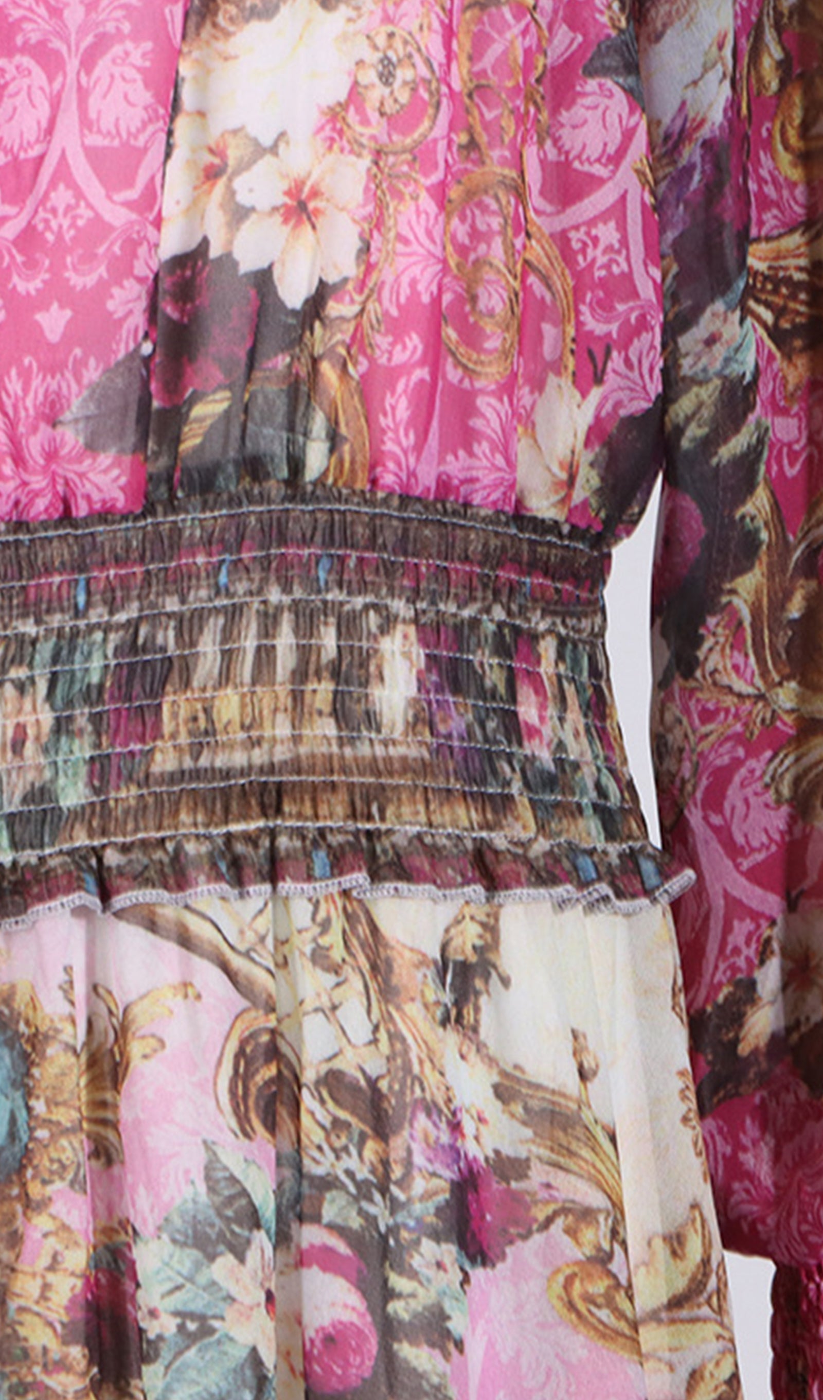 Boho Çiçekli Uzun Kollu V Yaka Maxi Elbise