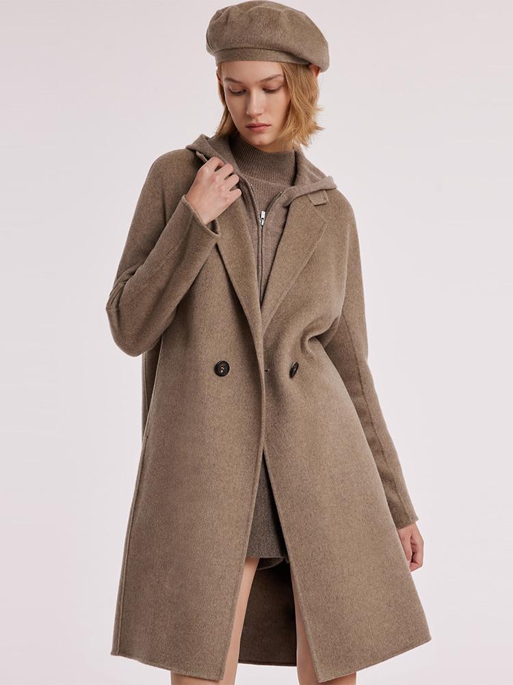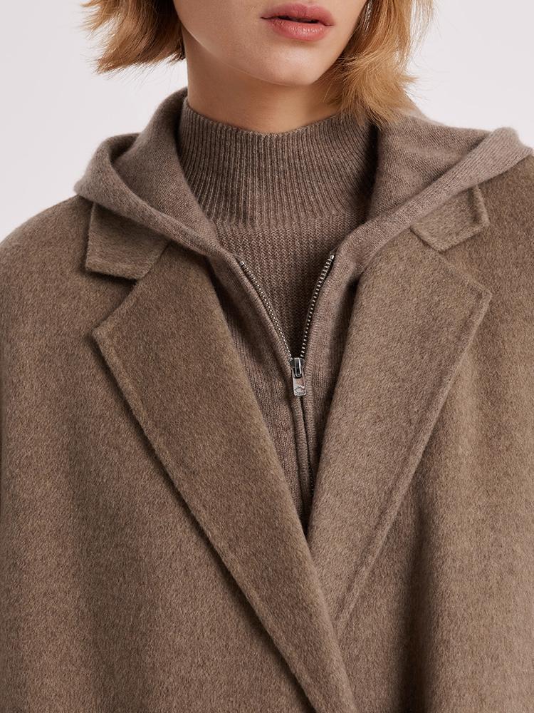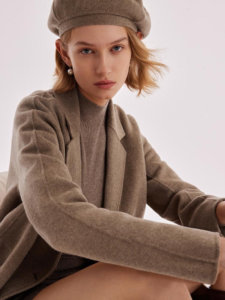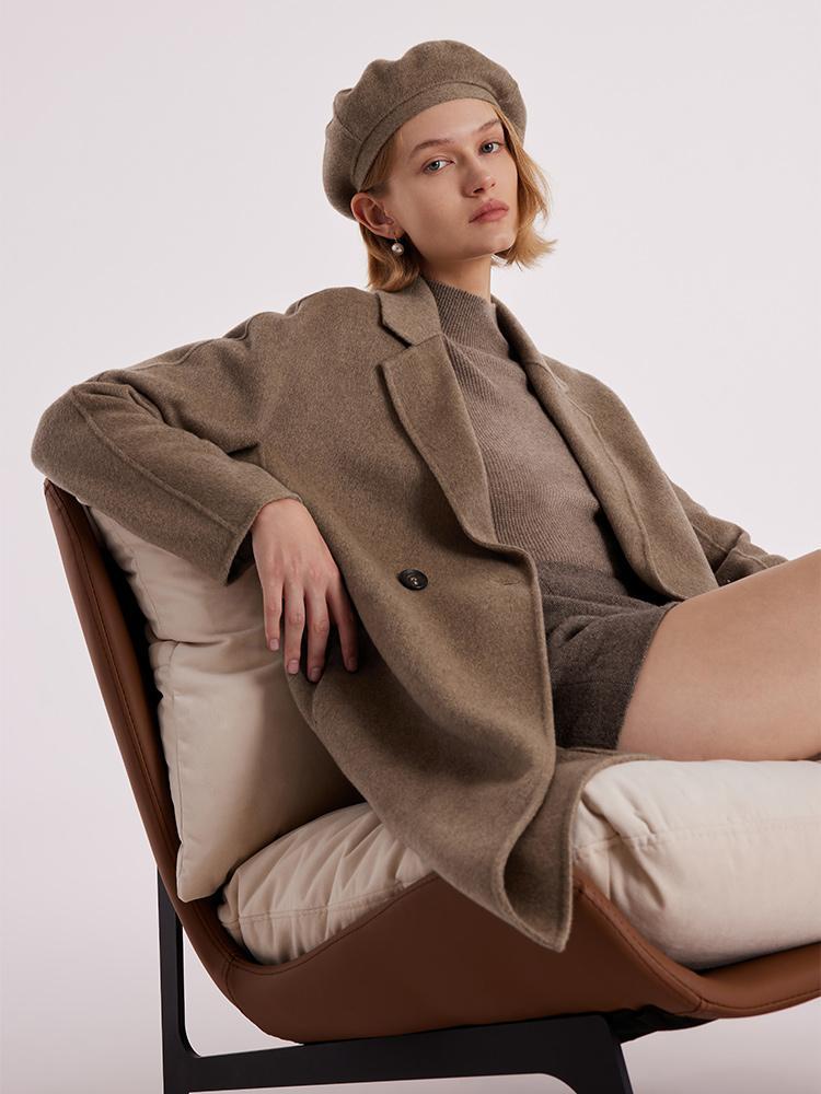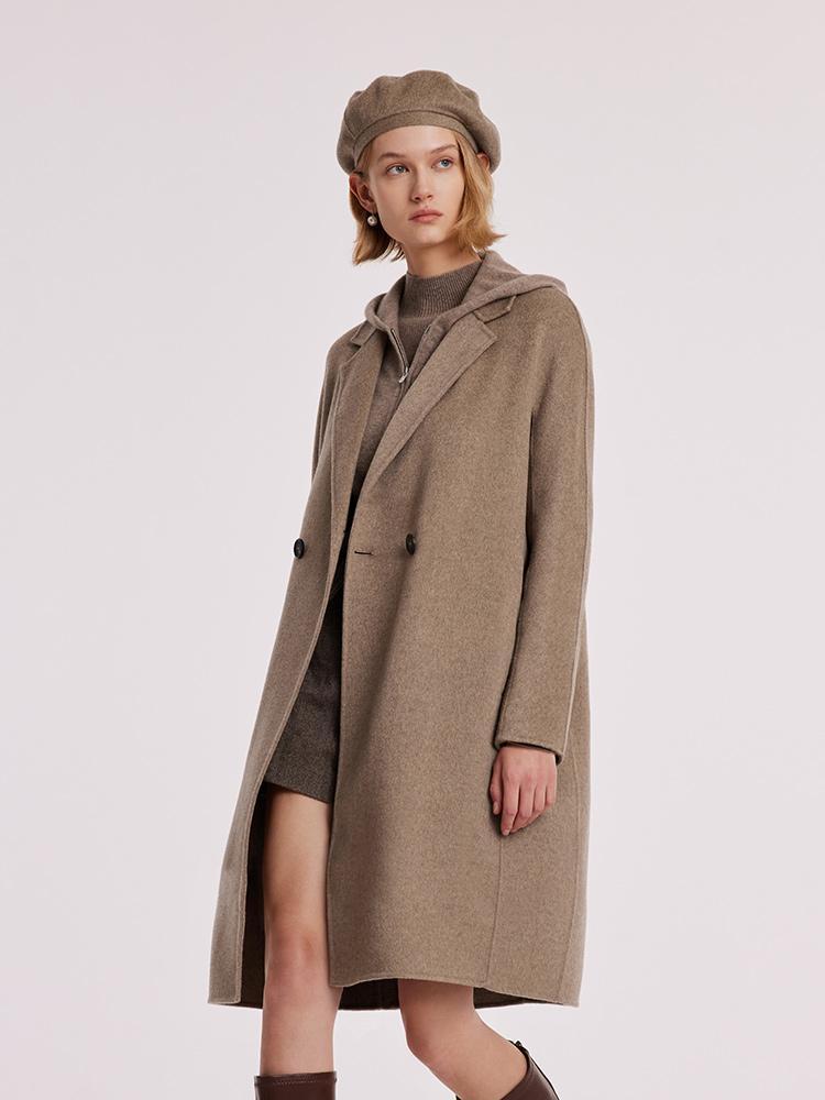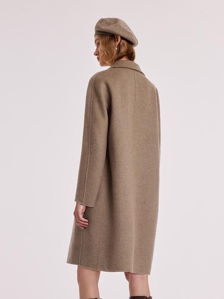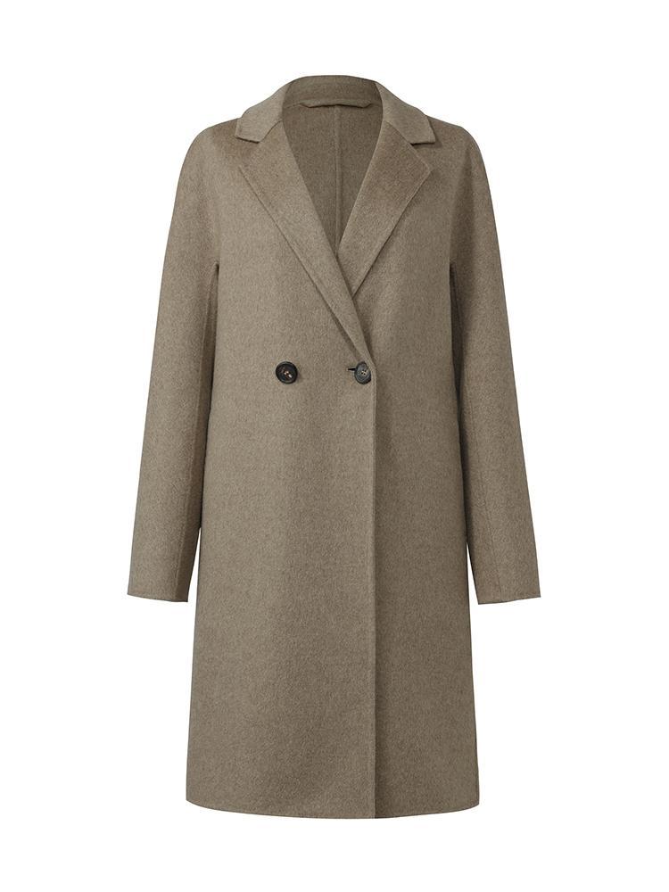 Kahverengi Saf Kaşmir Yaka Kadın Kaban