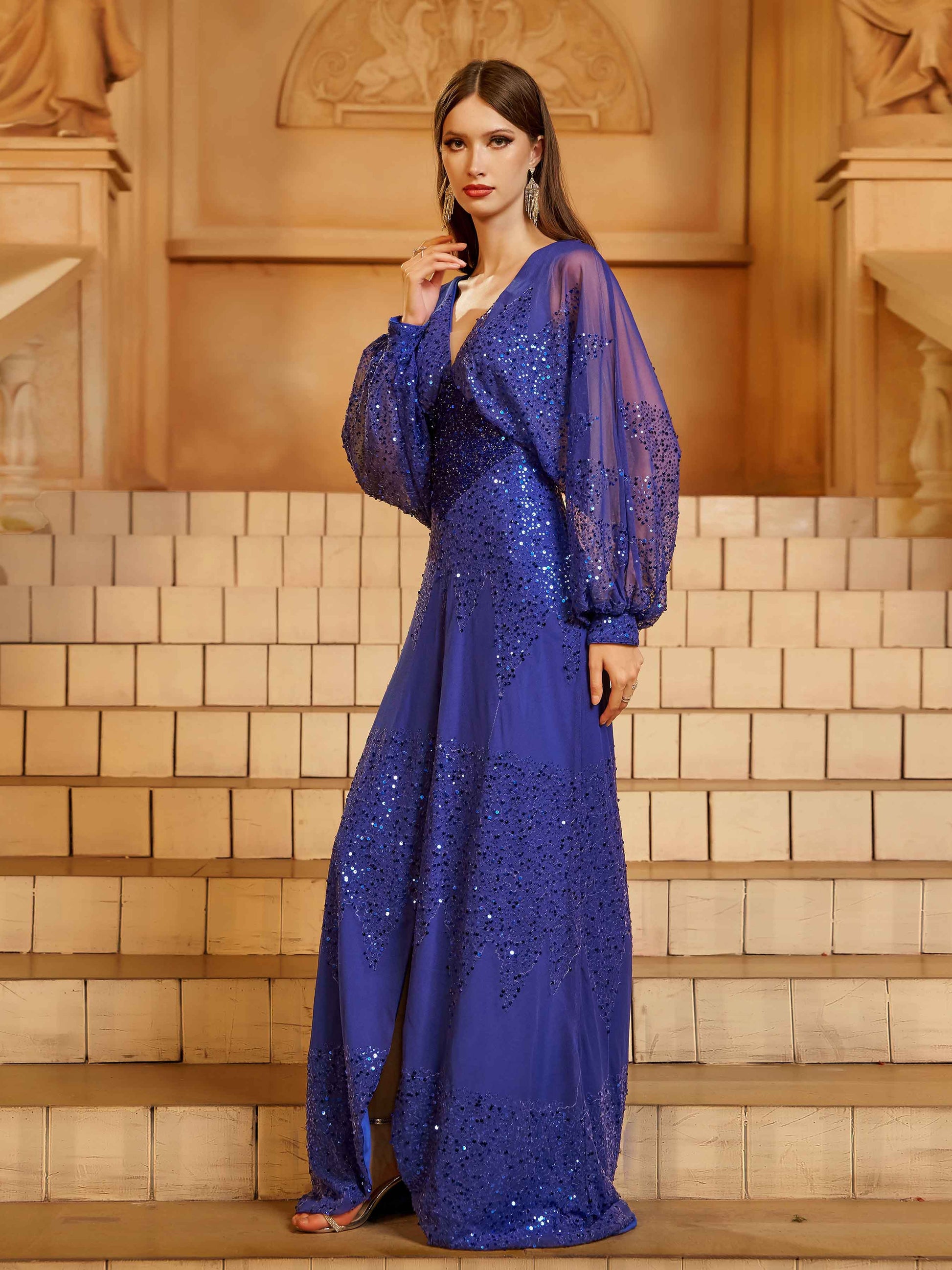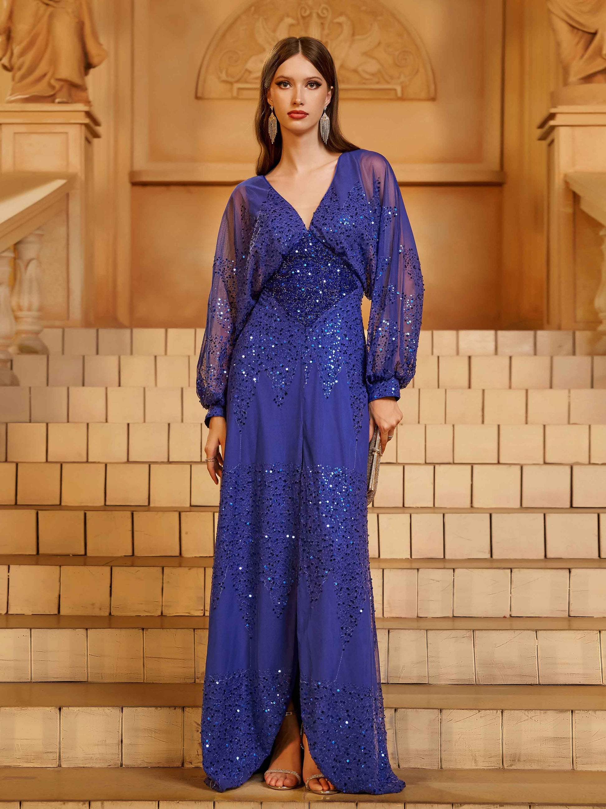 Fener kollu, V yakalı ve yüksek yırtmaçlı bu siyah balo elbisesiyle göz kamaştırın! Zarif fener kolları ve baştan çıkarıcı yüksek yırtmaçıyla tüm gece boyunca dikkatleri üzerinize çekeceksiniz. V yakası sofistike bir hava katarken, zarif siyah rengi hem zamansız hem de çok yönlüdür. Bu muhteşem elbiseyle balonuzu mükemmelleştirin.